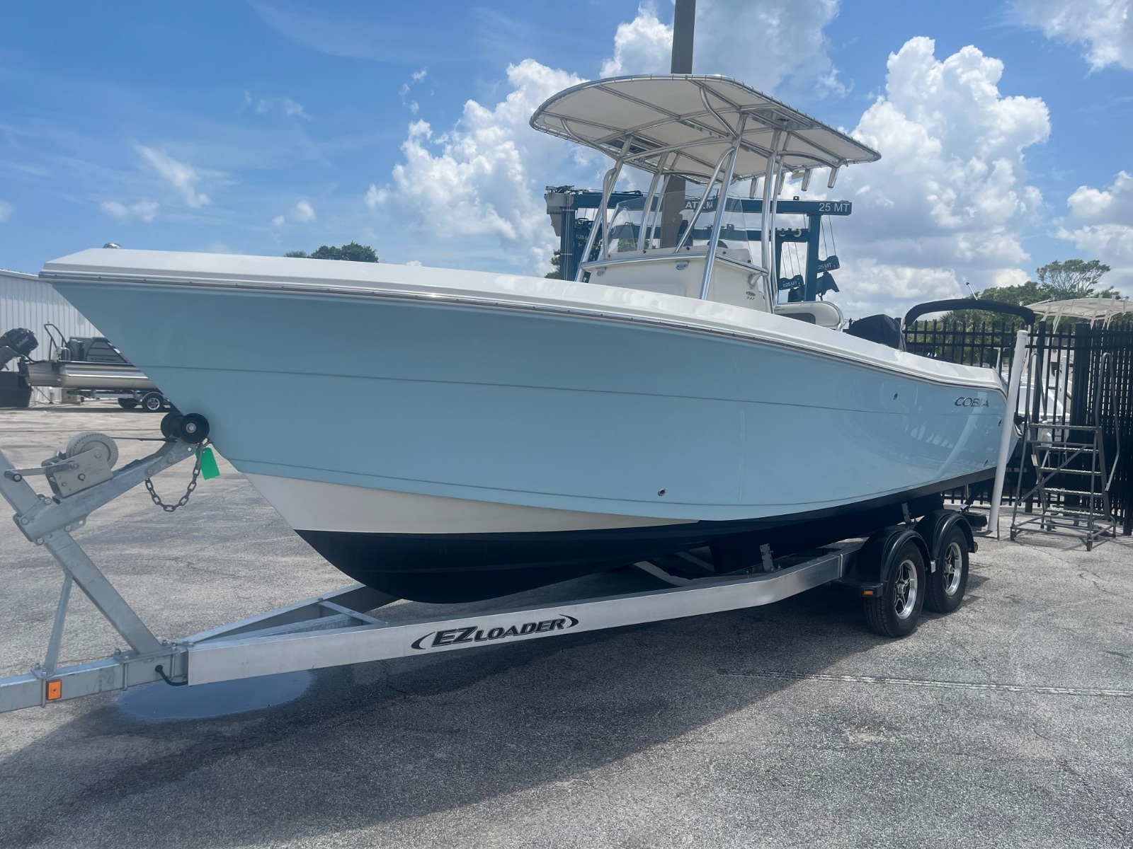 The 2022 Cobia 237 CC blends serious offshore capability with family-friendly comfort in a beautifully balanced 23-foot center console. Powered by a dependable Mercury motor, it delivers smooth, responsive performance whether you're running to your favorite fishing grounds or cruising with the family. Anglers will appreciate the 28-gallon livewell, dual insulated fish boxes, and tackle storage, while passengers can relax with plush bow seating, fold-down aft bench, and an enclosed head compartment. With a 9’8” beam, it feels spacious and stable, even in rougher water. The deep-V hull design ensures a dry ride, and premium finishes throughout reflect Cobia’s reputation for quality. This pre-owned Cobia 237 is a smart pick for the budget-conscious buyer or hands-on boater that values price over perfection. It’s mechanically sound, with a solid hull and a strong engine, though it shows noticeable cosmetic wear or aging systems. We’re transparent about what’s working and what might need your attention, and we’ve priced it to reflect the opportunity. This as-is Cobia 237 is a cost-effective way to get on the water and make it your own, with many different warranty options to consider adding on. This certified pre-owned Cobia 237 is eligible for Boateka's limited-time financing offer! Secure this center console today with financing as low as 4.99% APR* now through August 8. Use promo code "FINANCE25" to claim at your local Boateka dealership.