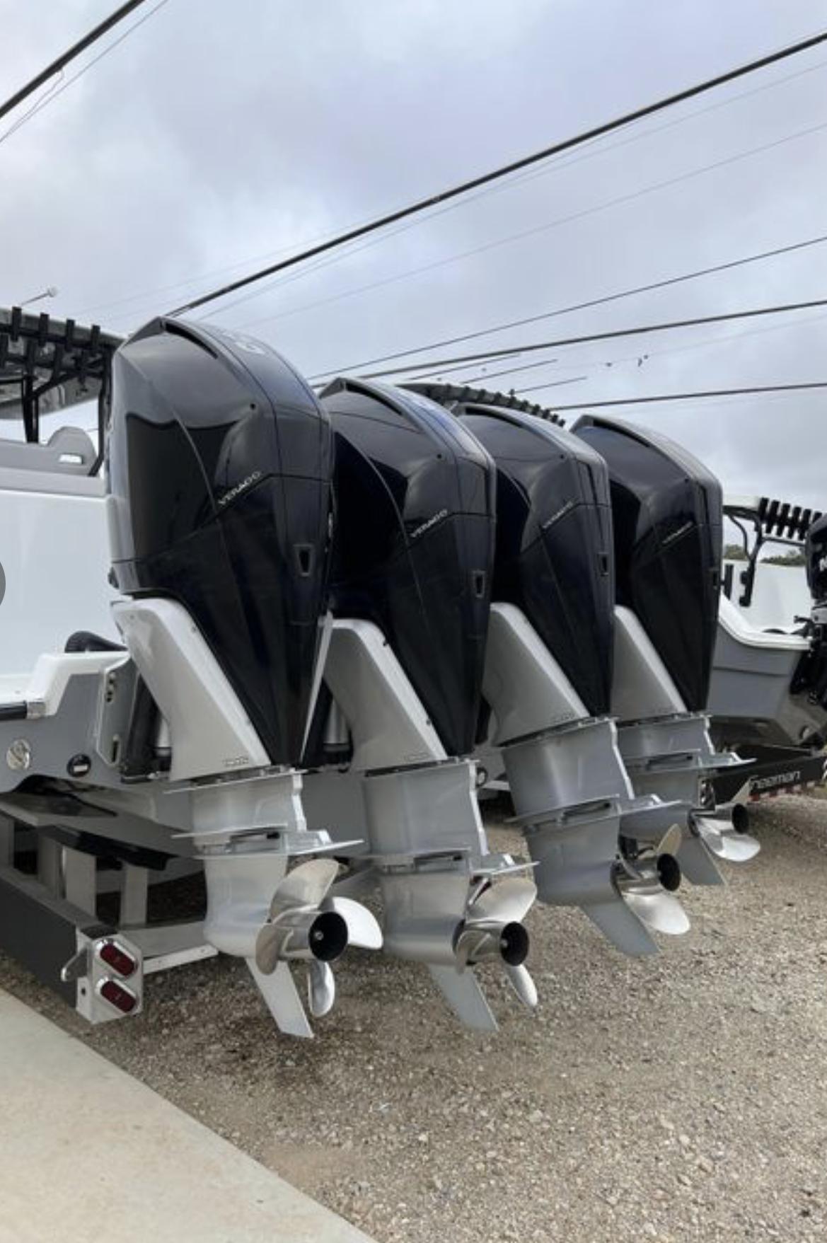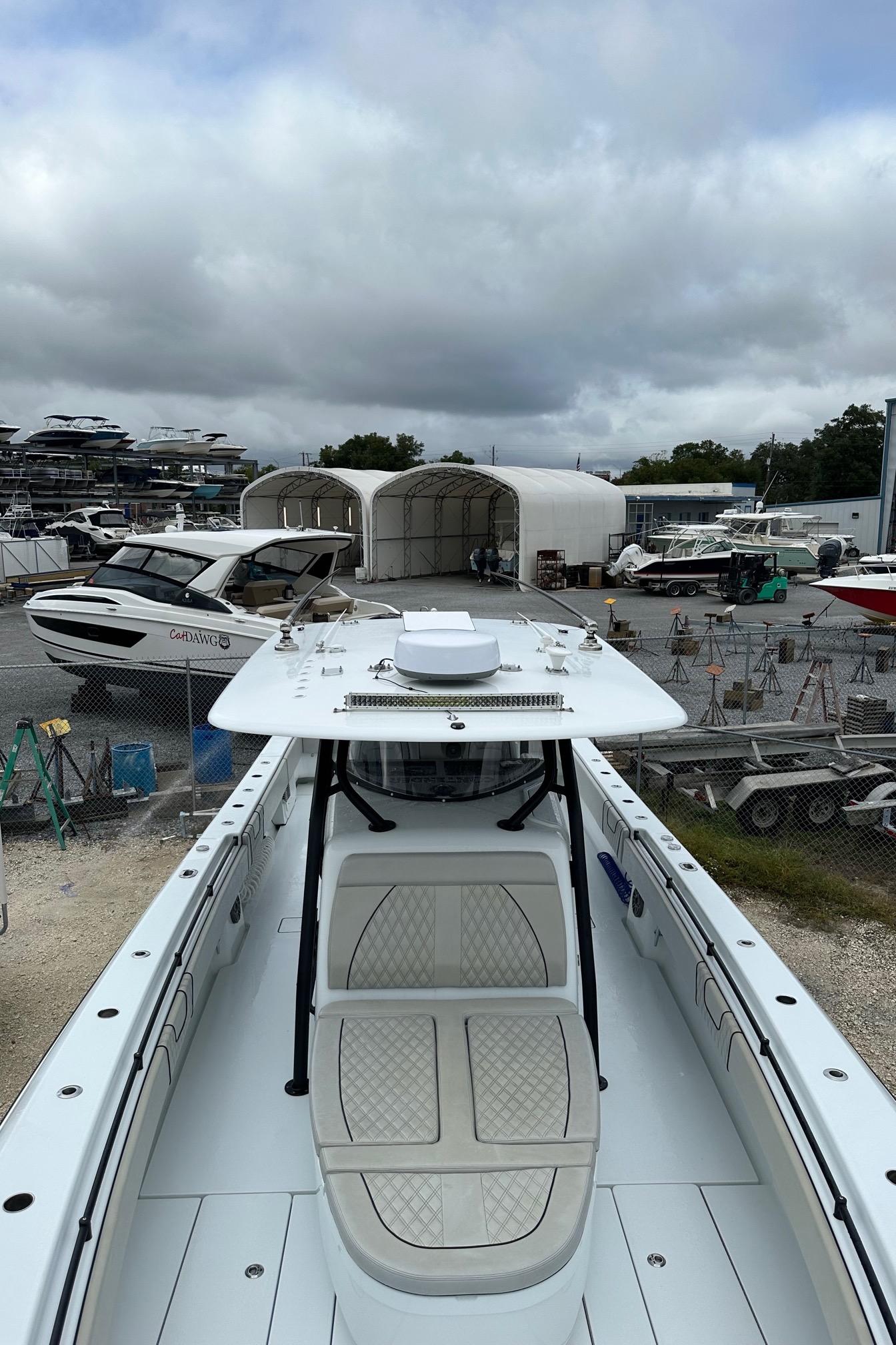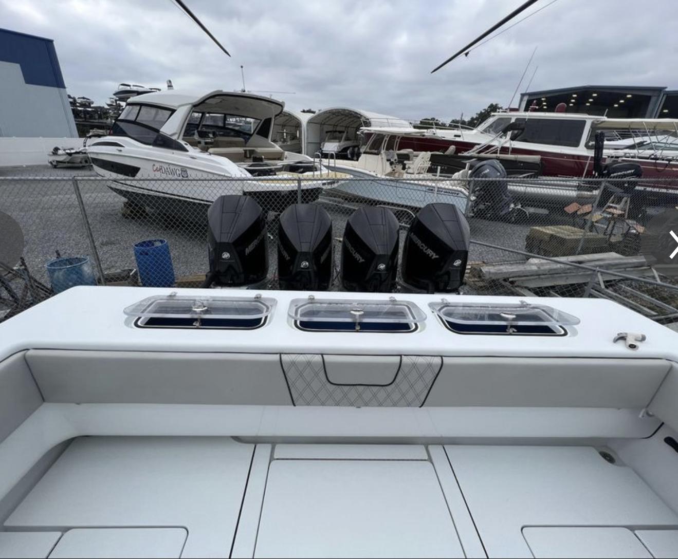 With a beam of over twelve feet, length of 44 feet, 600 gallons of fuel capacity, and a 2,000 max HP rating, the 44ST is certain to deliver on the promise of “performance through innovation.” Powered with triple or quad engine configurations, the boat excels in speed, performance, and reliability.