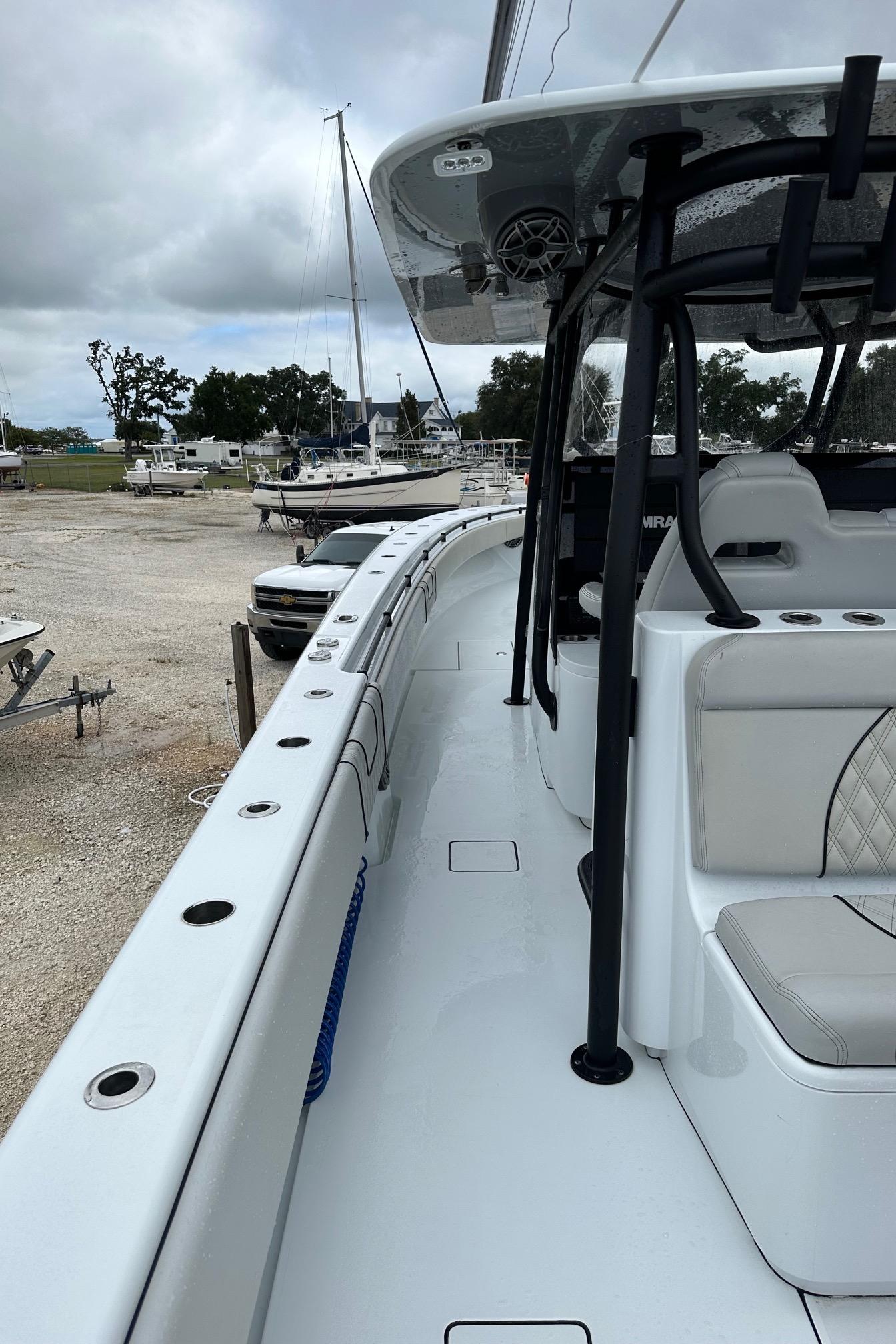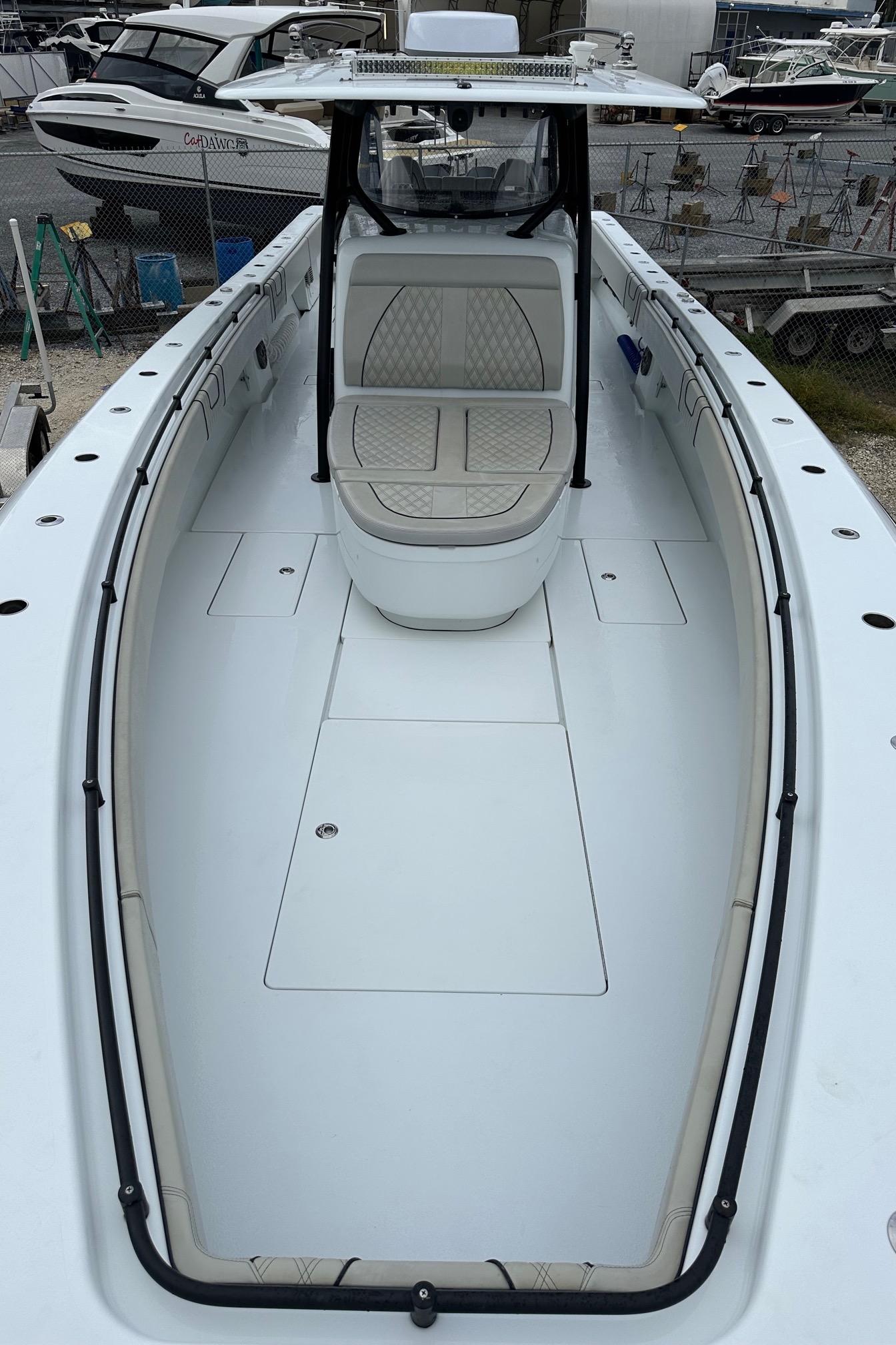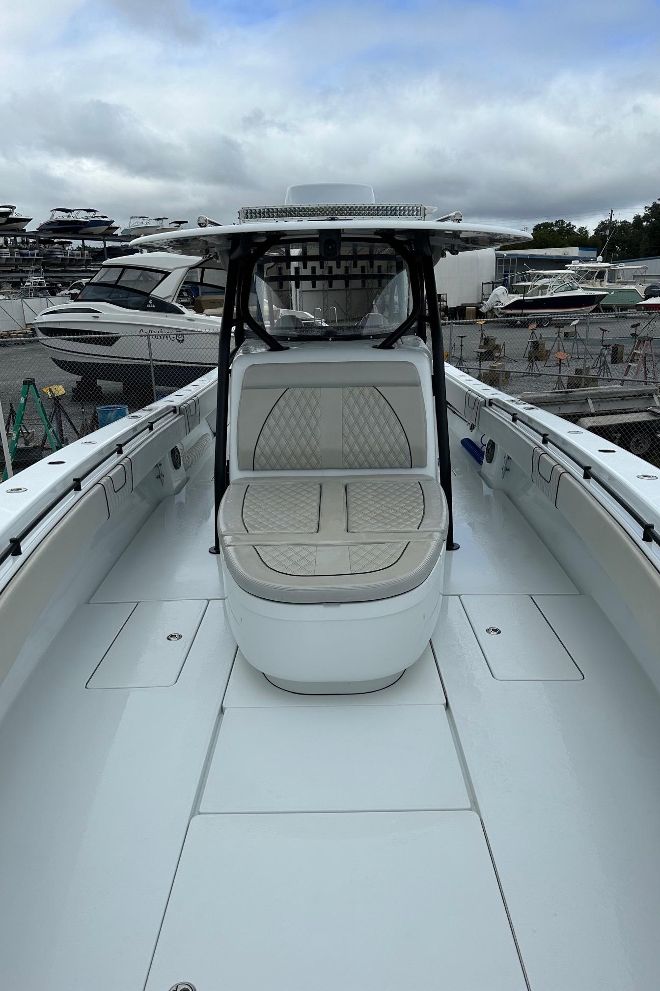 With a beam of over twelve feet, length of 44 feet, 600 gallons of fuel capacity, and a 2,000 max HP rating, the 44ST is certain to deliver on the promise of “performance through innovation.” Powered with triple or quad engine configurations, the boat excels in speed, performance, and reliability.