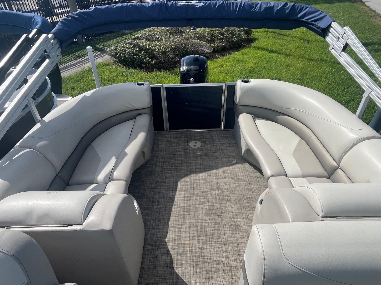 Confidence comes from intuitive ease of use, reliability and safety. The Seabreeze 232 packs those features and more on a 23-foot pontoon platform. The single-piece fiberglass helm is engineered to host all of your controls, gauges and accessory switches in a logical manner, for absolute control. The bell-crank hinges on the corner lounges allow your seat pad to conveniently fold out of the way and stay in place to access storage compartments. Reliability is improved with the use of high-quality materials and systems designed for a marine environment. Such can be found in our use of full-length extruded pontoon riser brackets that reduce torque and twist from the engine and wave action; or our color-matched roto-cast plastic seat bases which are channeled to direct water out to keep your gear drier. Safety is extremely important and the primary reason why you'll find tall fence rails and full-length gate-stops used on Cypress Cay boats. We are confident that you will be at ease with your choice of Cypress Cay.