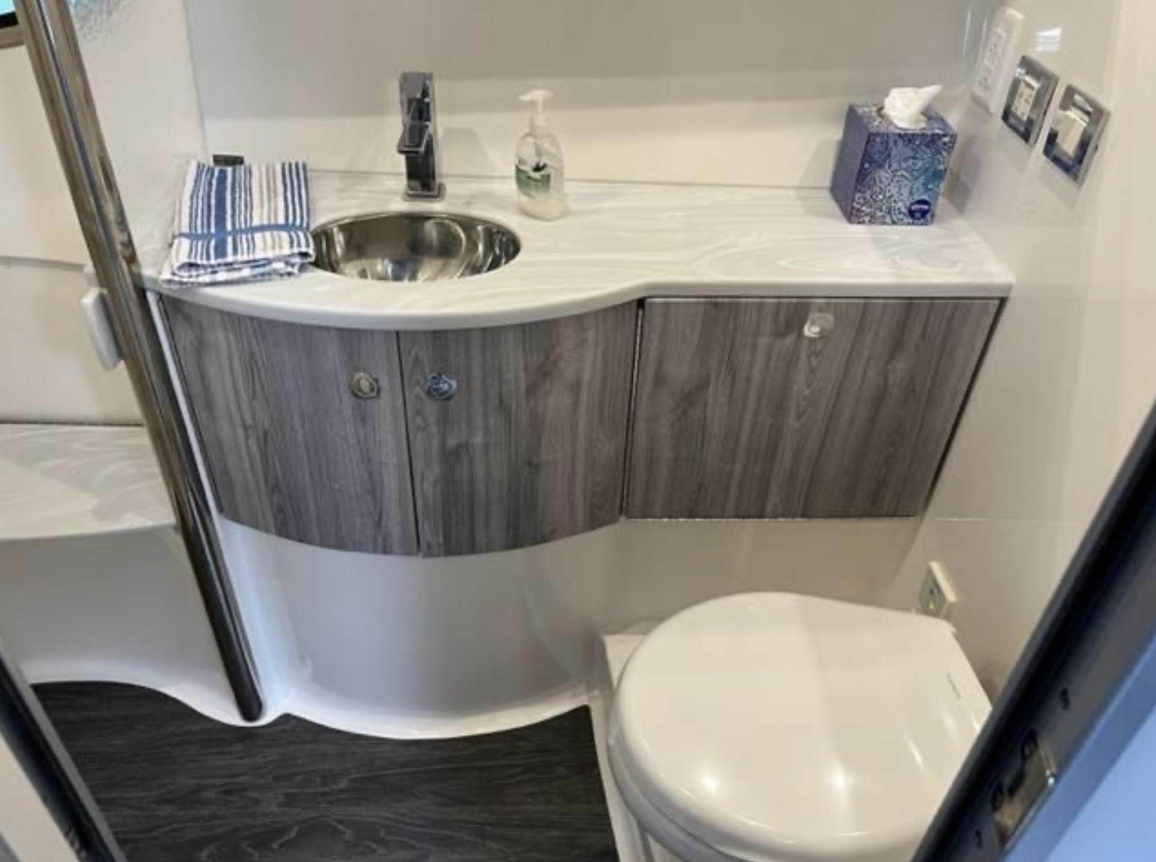 - Vacuflush head system with 55 gal holding tank w/pump out/& Macerator
