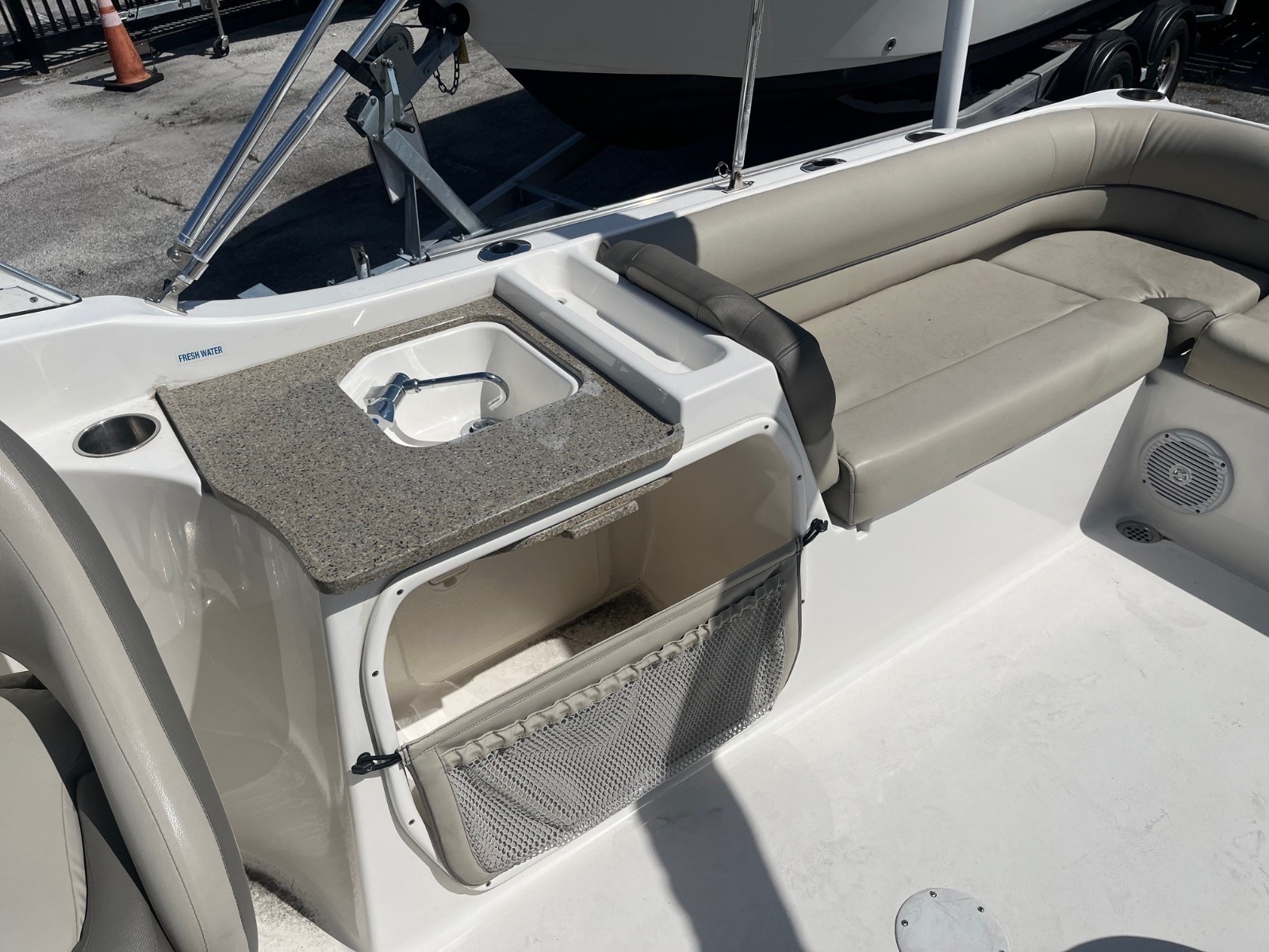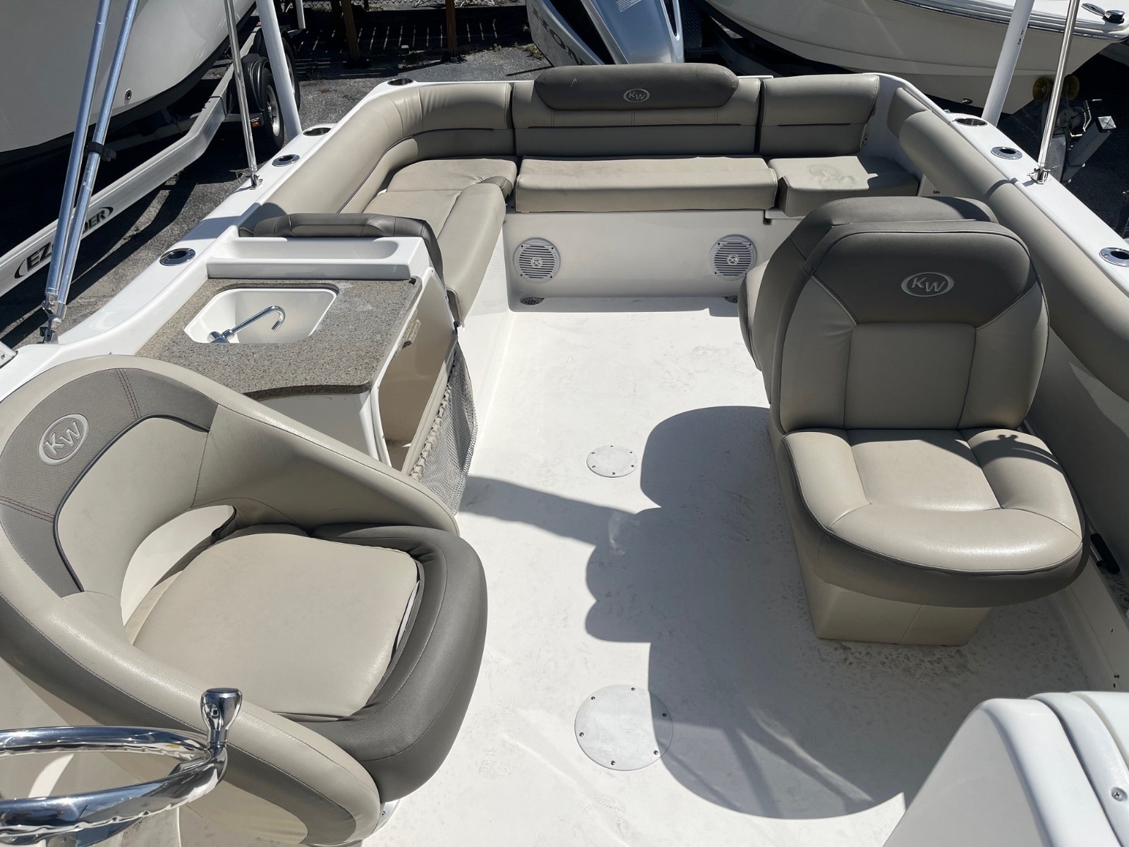The all around water sports platform for the whole family - no matter what the day brings. It is loaded with amenities for comfort and performance, like the built-in hardtop, comfortable bow seating, a wraparound bench seat in the cockpit, a sink with storage, and a standard potty room in the console. It is also self-bailing and foamed to provide upright and level flotation, making it one of the safest family-friendly boats on the market. Both of our Dual Family Sportsmans feature rod racks, rod holders, and live wells, which allow for the occasional fishing day combined with the utility of a wrap around windshield and extensive seating. These saltwater friendly runabouts feature comfortable seating up front with a sporty wraparound bench in the cockpit. Watersports enthusiasts will enjoy the built in swim ladder combined with a swinging entry door for easy boarding, and for the occasional fishing trip will find convenient rod holders and even a live well.