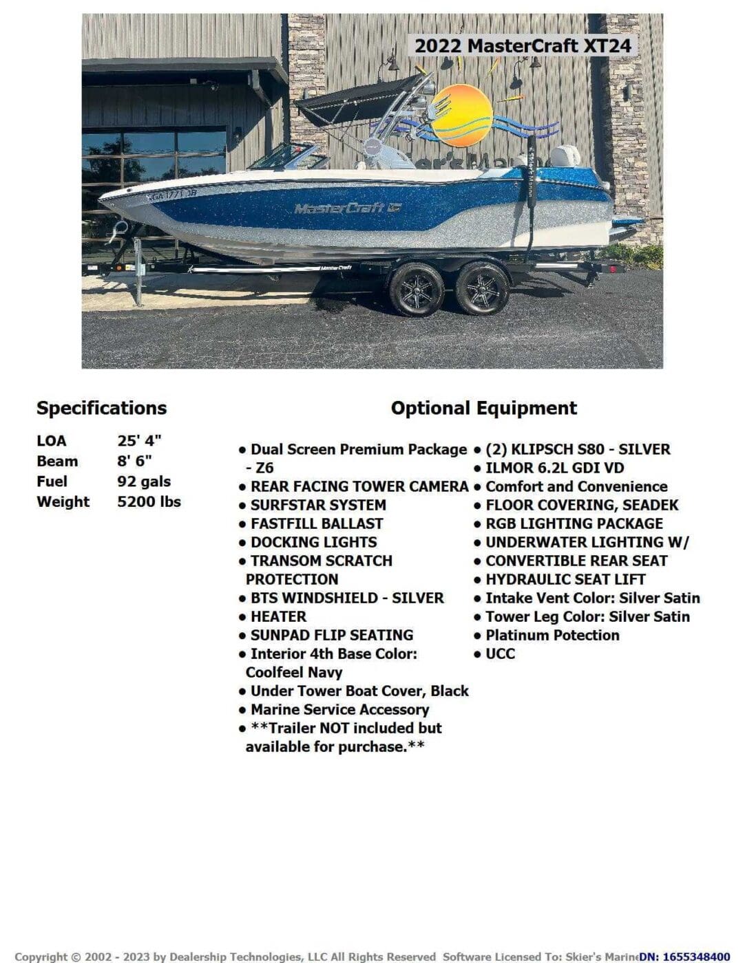• Comfort and Convenience Package Includes: REMOVABLE SKI PYLON, BIMINI COVER, STAINLESS STEEL FENDER CLIPS, BOATCOVER