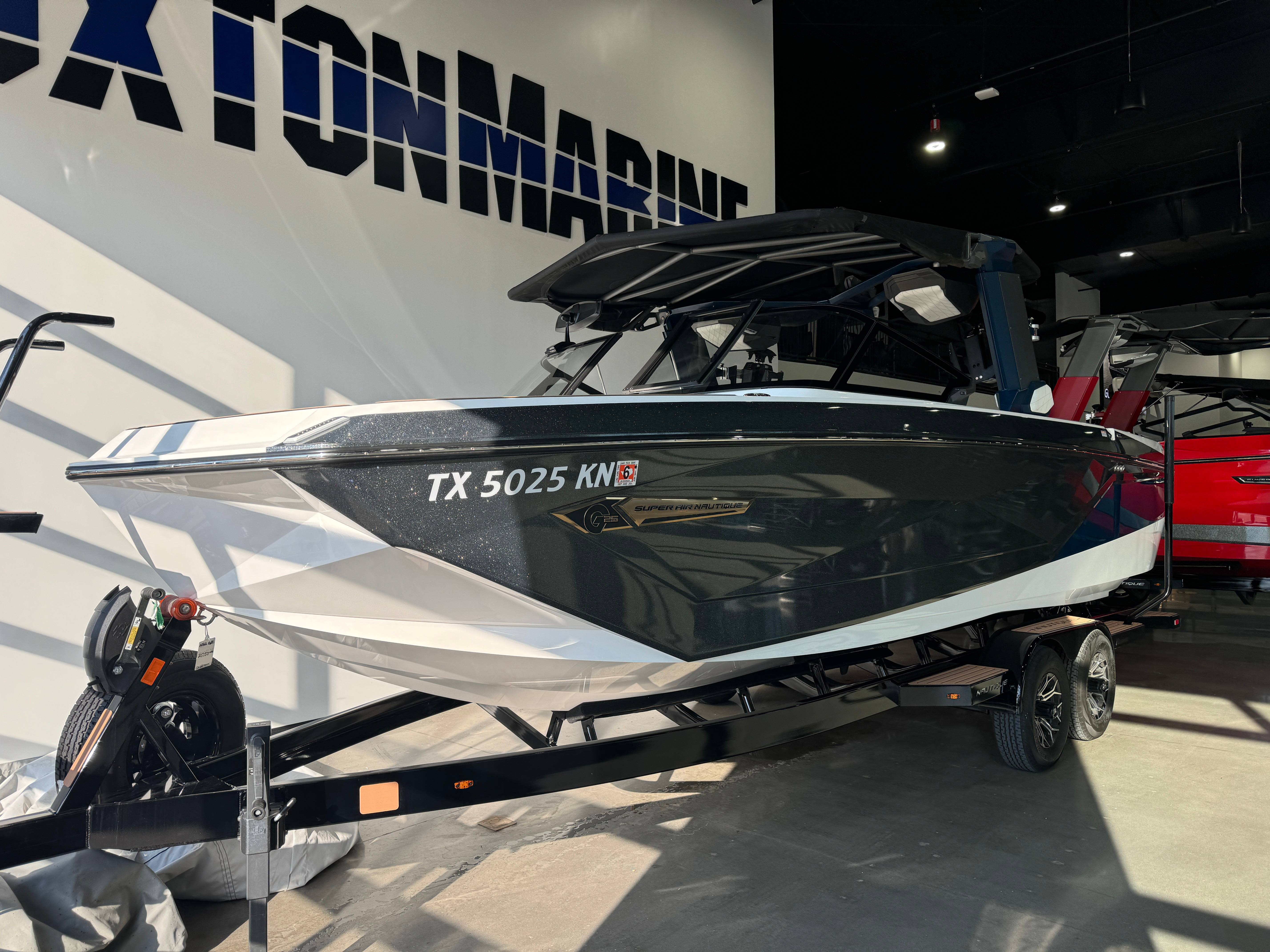 2022 Super Air Nautique G25 ZZ6 450HP - 6.2L Direct Injection Telescoping Flight Control Tower System Tower Prep Kit JL Audio M Series Studio(Pre-Wired 8 Channel Amp) Maps NO MAP Battery Maintenance System 110 (Integrated Charger-Dual Battery) Cover - Platform Cover-Telescoping Tower Towable/Mooring with Anti-Pooling System Ballast - Supplemental 1,450 LBS GoPro Ready Quick Mount with Dual Transom Attachments Heater with Defroster Ladder - Platform Access Lights - Enhanced Courtesy Lighting Package Lights - Underwater Nautique Integrated Steering Assist Seating - Bow Filler Cushion Stereo - JL Audio M6 Series Studio Elite (Wavefront) Stereo - Transom Mounted Remote Control 2022 Super Air Nautique G25 Standard Items listed below Nautique Configurable Running Surface with Hydro-Plate Nautique LINC PANORAY with Helm Control, Zero Off GPS Speed Control Nautique Surf System™ with WAVEPLATE & Surf Pipe Exhaust Freshwater Engine Flush System Wake Package(Integrated 2850 lbs Ballast System) Power Management Access with Dual AGM Batteries Lighting-Navigation and Docking Light Array, LED Courtesy Lights Cleats (4), Coolers 2 (Removable), Waste Receptacle Sliding Reversible Stern Seat and Flip-Up Lounge Seat (Port) Rear Facing Transom Seating GoPro™ Ready Rotating Tow Point MyNautique™ Connectivity Platform Premium Mirror, Wireless Charging Stereo - JL Audio® M6 Series Elite with DSP (Stereo, 6 Speakers, 10in Subwoofer and 8 Channel Amp) if Stereo JL Audio® M6 Series Studio Elite (Wavefront) not selected Flight Control Tower (Textured Finish) with Nautique Awareness Camera if Flight Control Tower Actuated is not selected Rotating Wakeboard/Wakesurf Racks if Nautique Strapless Board Racks is not selected