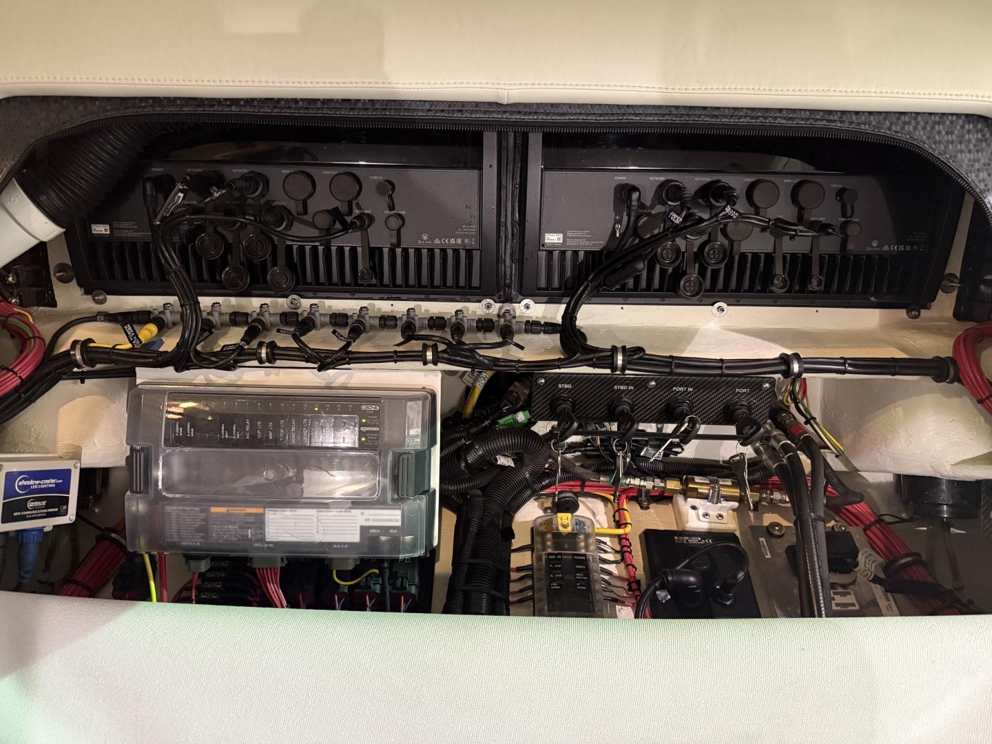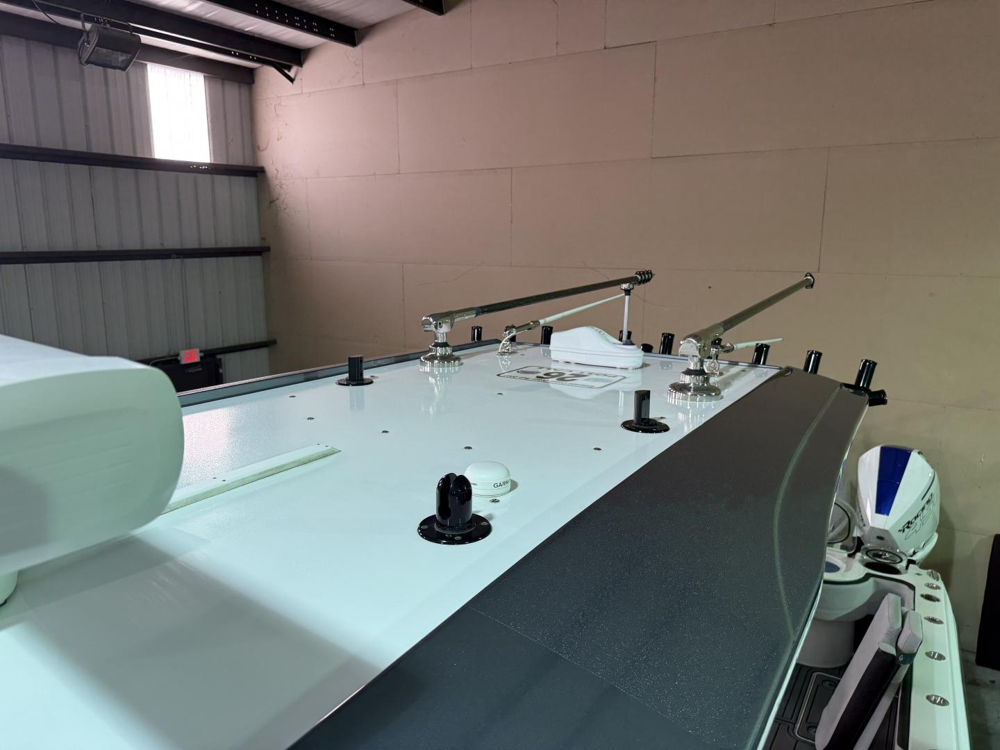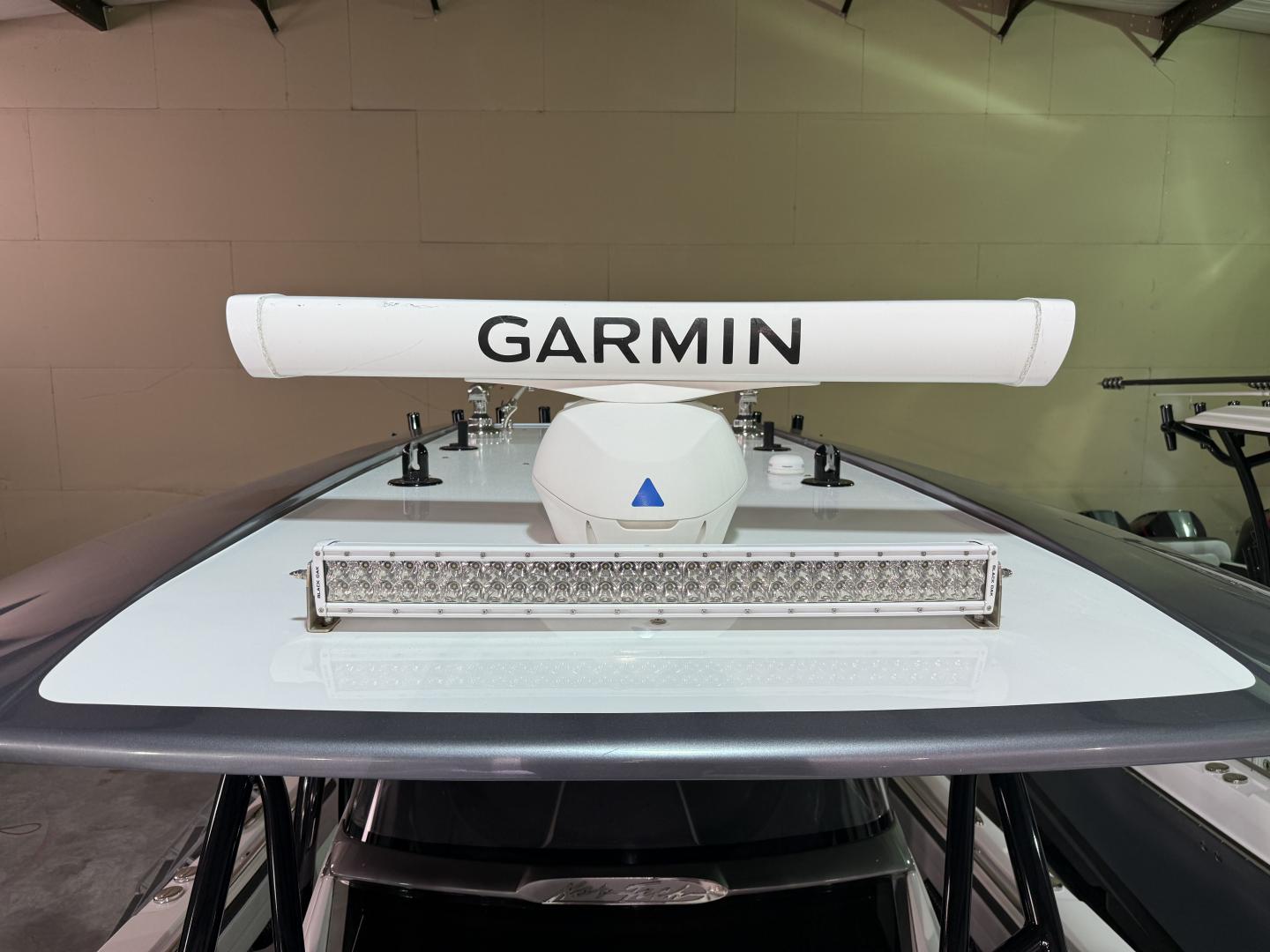 and phone chargersAuto PilotGSD 26 with R599 Transducer and T424 underwater lightsGarmin GMR 24 Phantom RadarPremium StereoDual AIS Garmin VFHsSat Weather and RadioBlack Oak LED light BarBow ThrusterForward Fuel Tank12v AC with Batteries4 Electric Reel outletsTransom Rod Rack18 Rod / cup holder combos7 additional Rod holdersTackle Center HelmCustom removeable seating at LivewellsCarbon Fiber OutriggersAdditional dive ladderBow and rear shadesWindshield CloseoutBunk Shelf in cabin