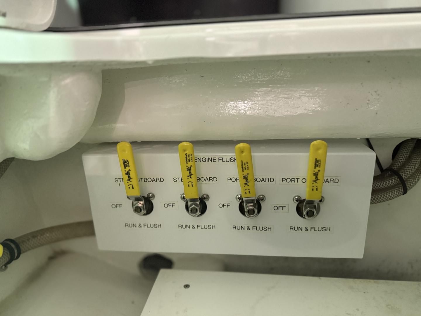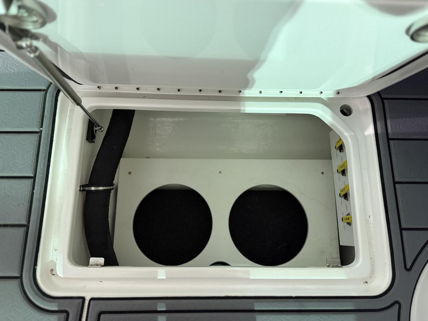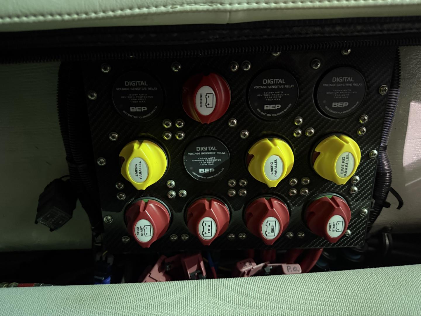 and phone chargersAuto PilotGSD 26 with R599 Transducer and T424 underwater lightsGarmin GMR 24 Phantom RadarPremium StereoDual AIS Garmin VFHsSat Weather and RadioBlack Oak LED light BarBow ThrusterForward Fuel Tank12v AC with Batteries4 Electric Reel outletsTransom Rod Rack18 Rod / cup holder combos7 additional Rod holdersTackle Center HelmCustom removeable seating at LivewellsCarbon Fiber OutriggersAdditional dive ladderBow and rear shadesWindshield CloseoutBunk Shelf in cabin