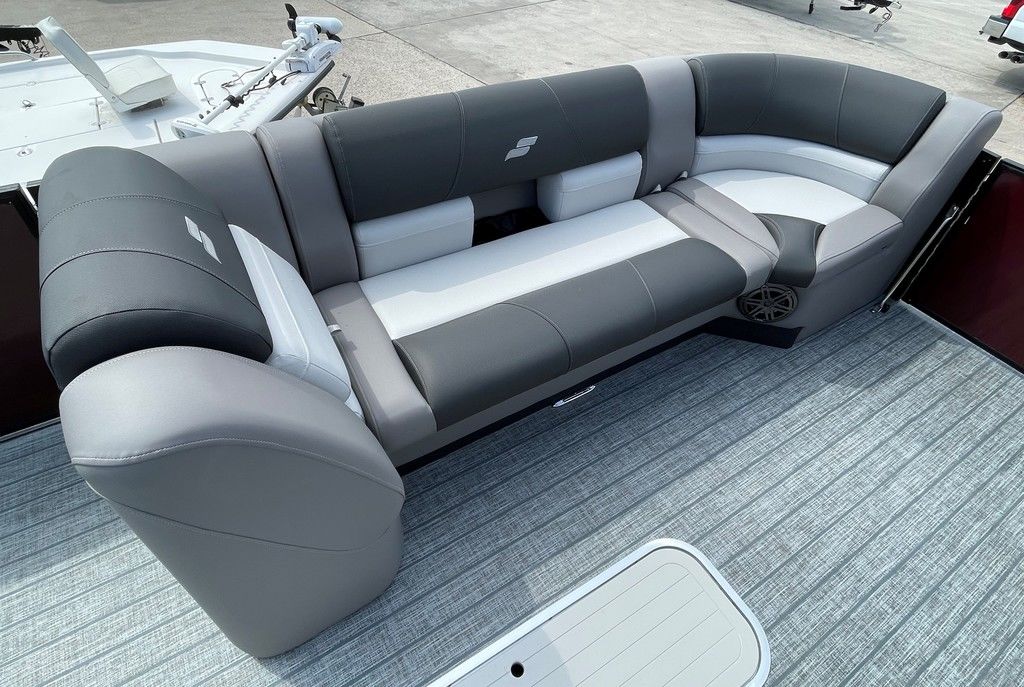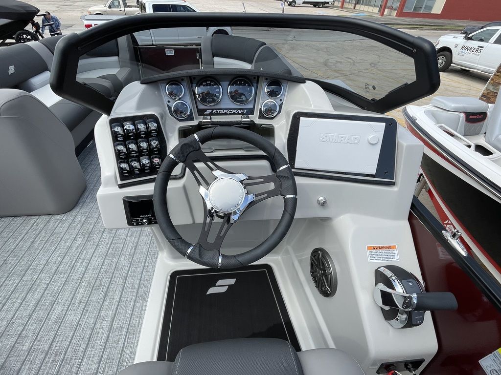 With its bold styling for 2021, Starcraft MX takes luxury and performance to all-new levels. A variety of floorplans with Starcraft’s exclusive Soft Touch upholstery let you choose the seating layout that best suits your needs, while enjoying the elevated consoles with standard individual windscreens or an available walk-through windshield. A flush-mount Simrad touchscreen display and new V3 gauges grace the elegant helm, while a roomy extended deck, bow docking lights, fold-up cleats, and handsome 10' Bimini top all come standard.
