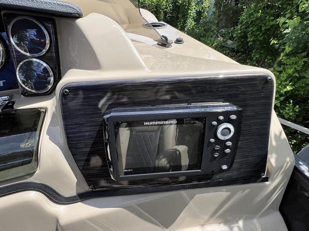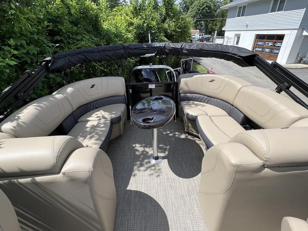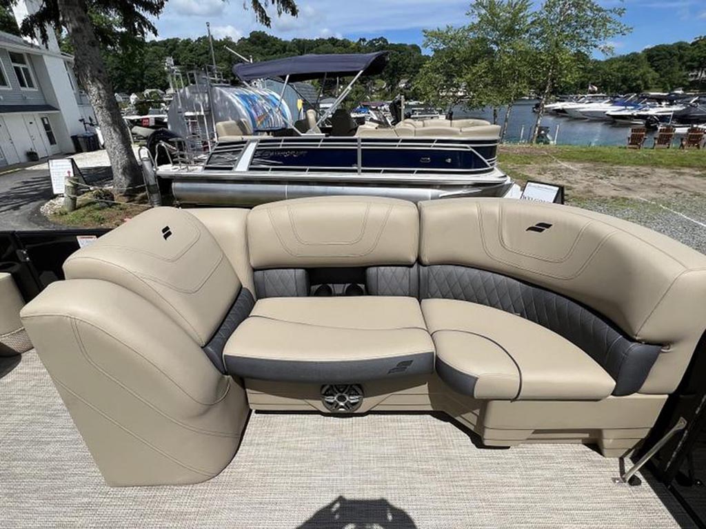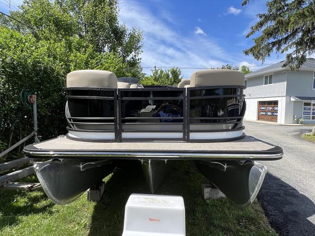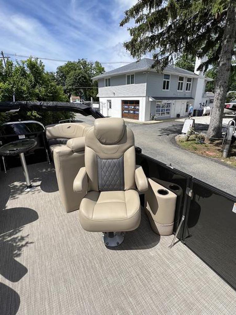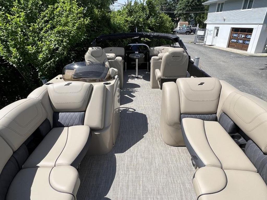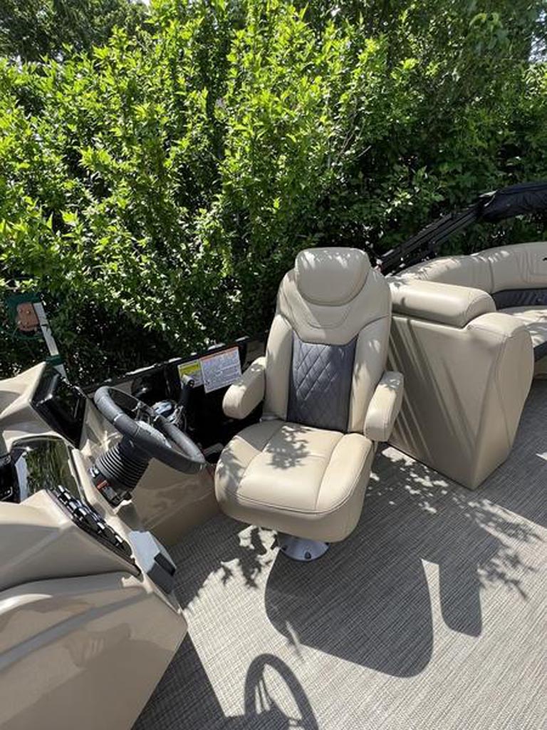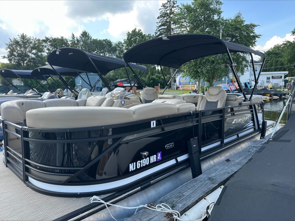 Comes with all standard options. Additional features include full brown seaweave flooring, black playpen cover, powered bimini top, Graph Helix 5 GPS flush mount, coastal package, and deluxe extended deck ski tow.