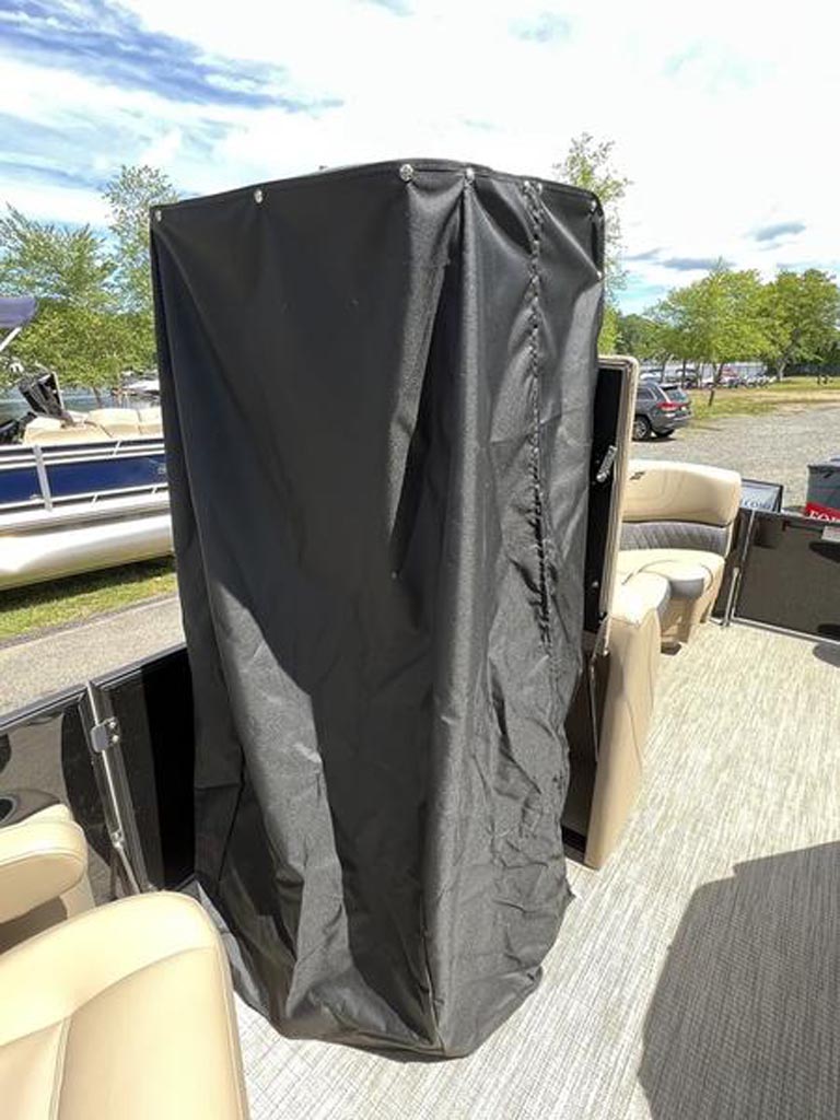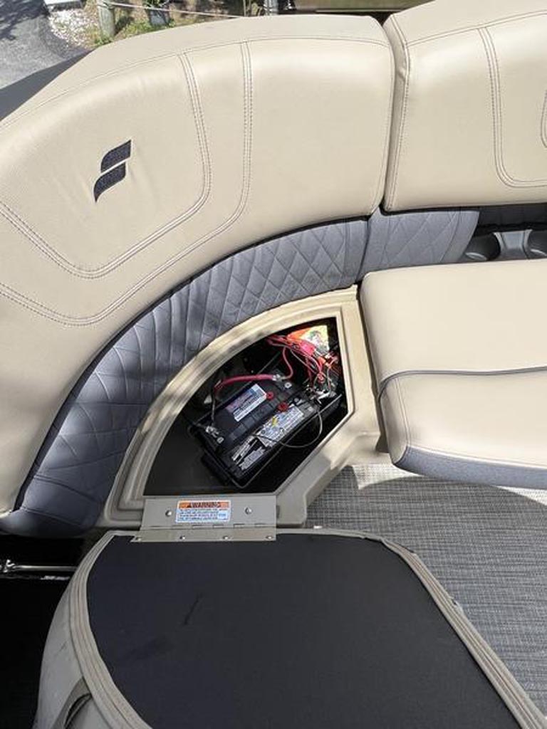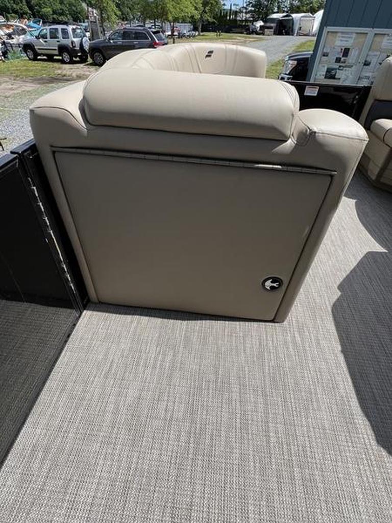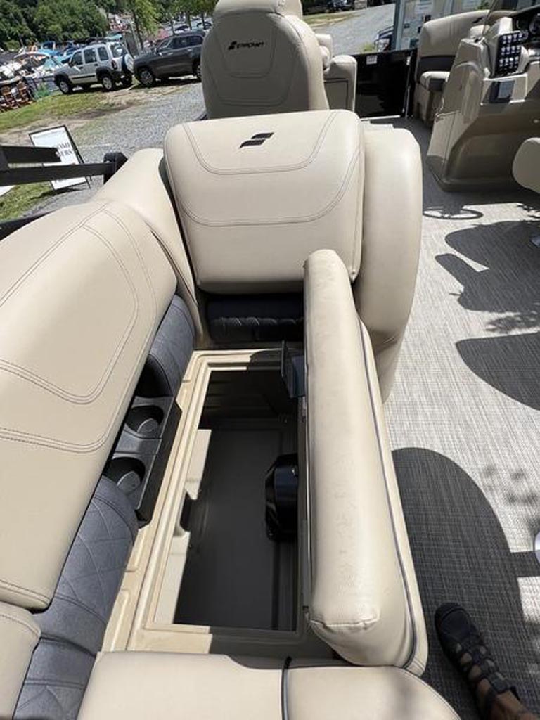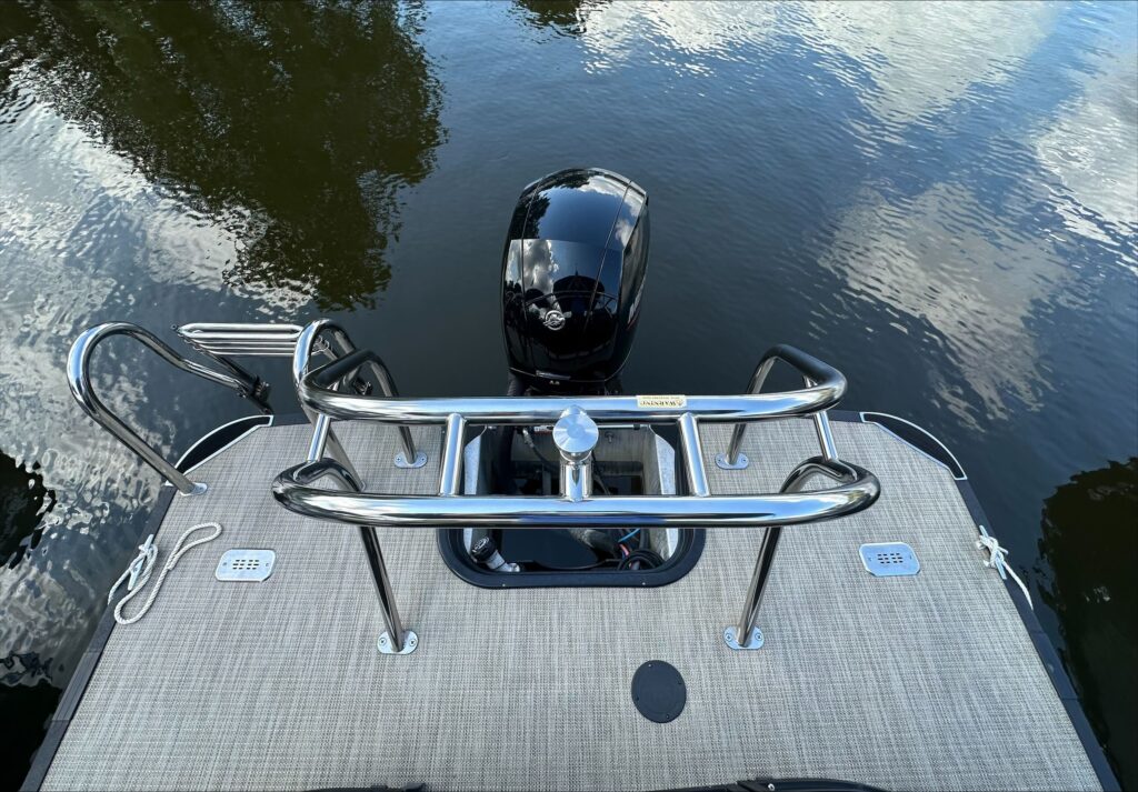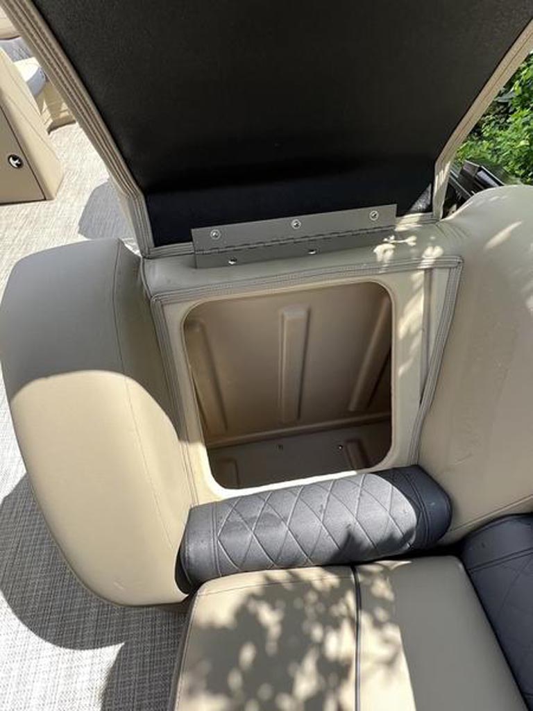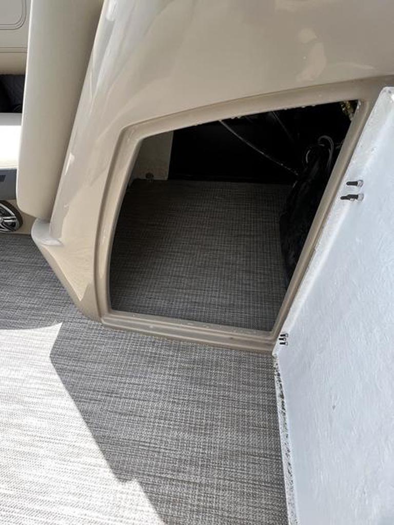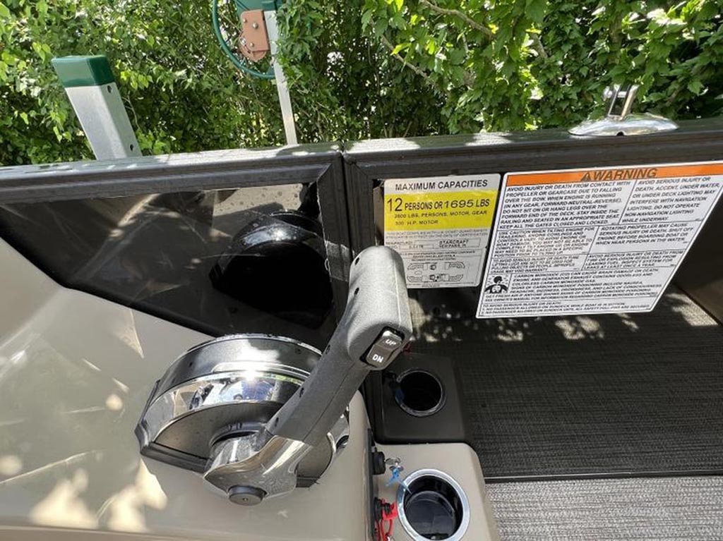 Comes with all standard options. Additional features include full brown seaweave flooring, black playpen cover, powered bimini top, Graph Helix 5 GPS flush mount, coastal package, and deluxe extended deck ski tow.