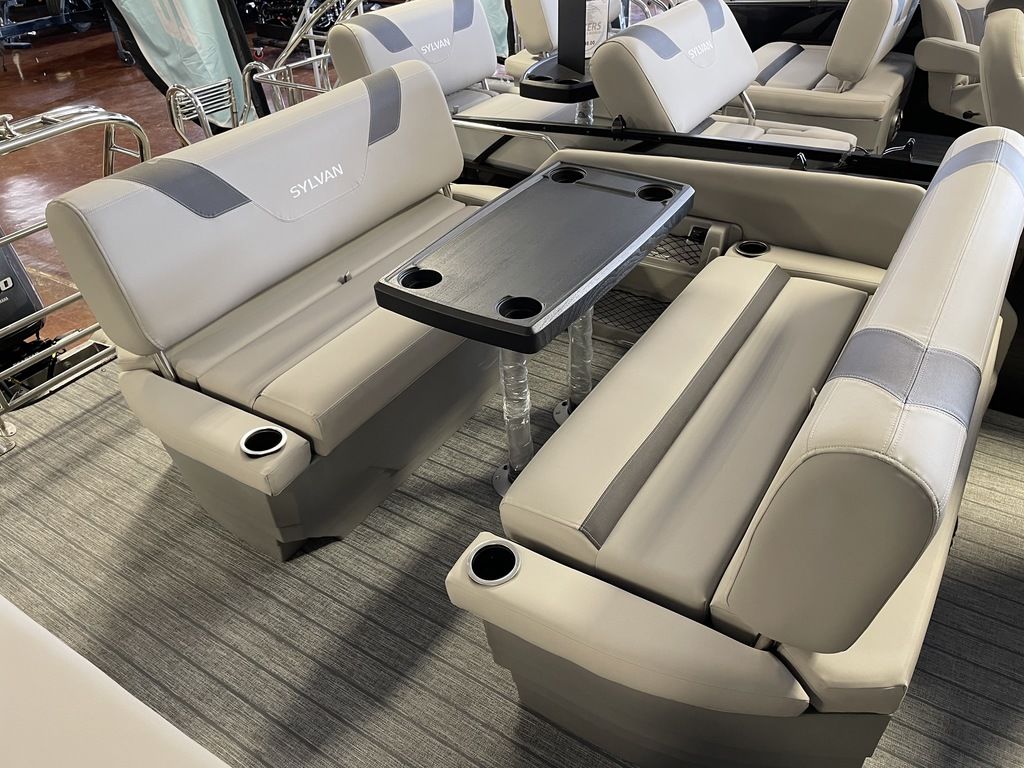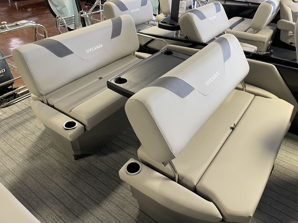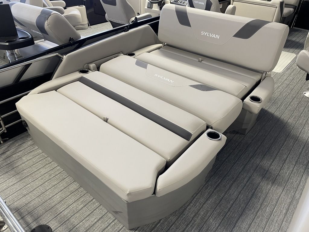 The Sylvan L-3 DLZ offers a unique floorplan for all to enjoy. Relax in the bow with two forward facing loungers, or in the side-by-side helm chairs. However, the rear seating configuration is where the transfomation begins. Flip the backrest down to create a comfortable dual facing rear lounge, or flip up the seat backs for a four-person entertaining area with a table perfect for entertaining.