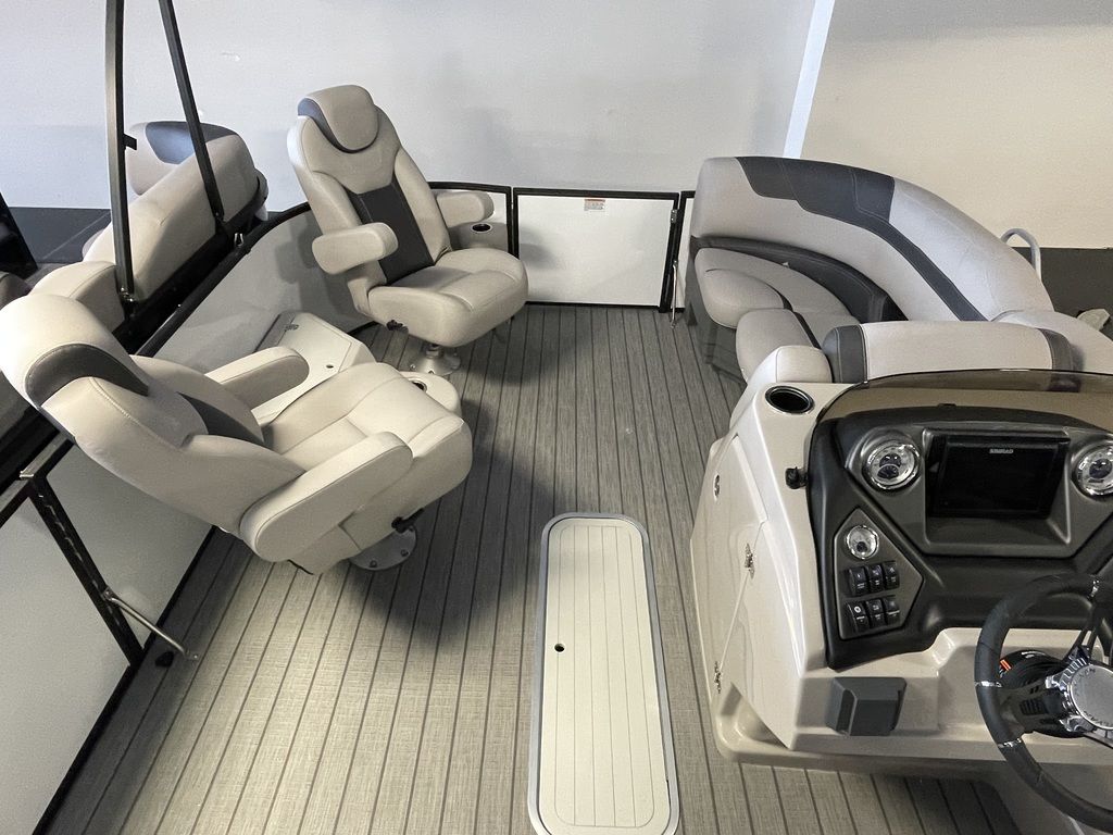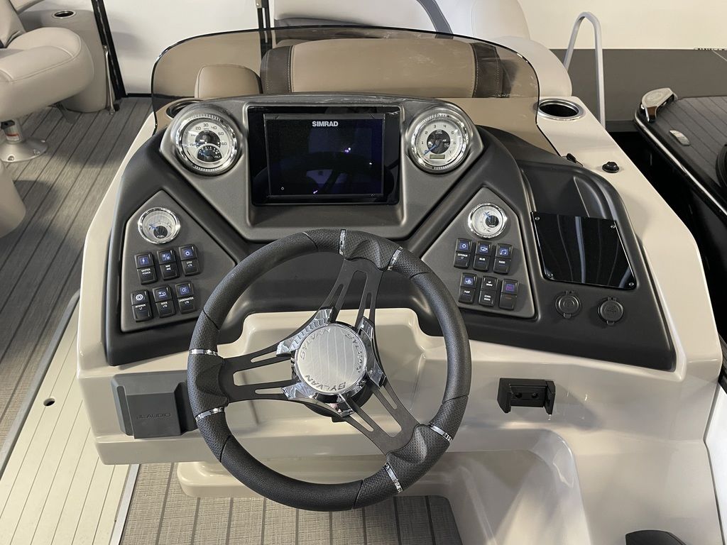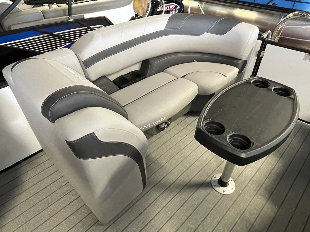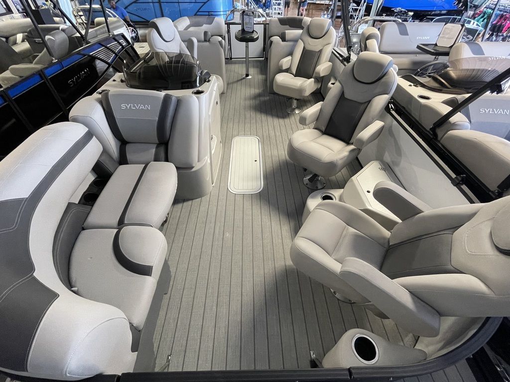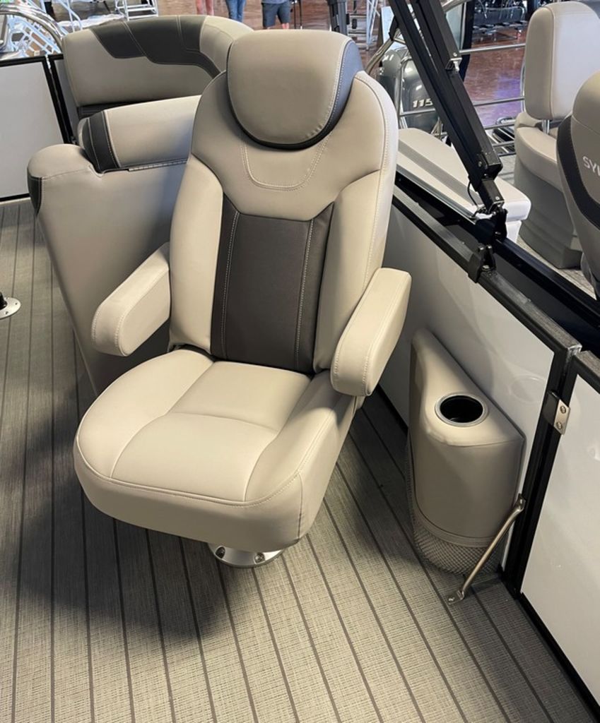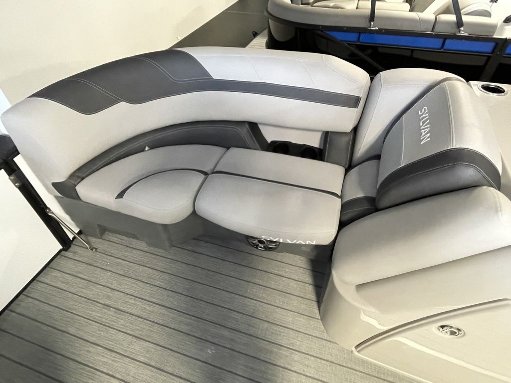 The L-3 LZ Port is a staple in the Sylvan pontoon boat line-up and offers two high-back helm chairs on the port side that is perfect for sunset cruises. However, don't forget about the rear dual-facing lounges that help maximize the seating capacity in the pontoon boat.