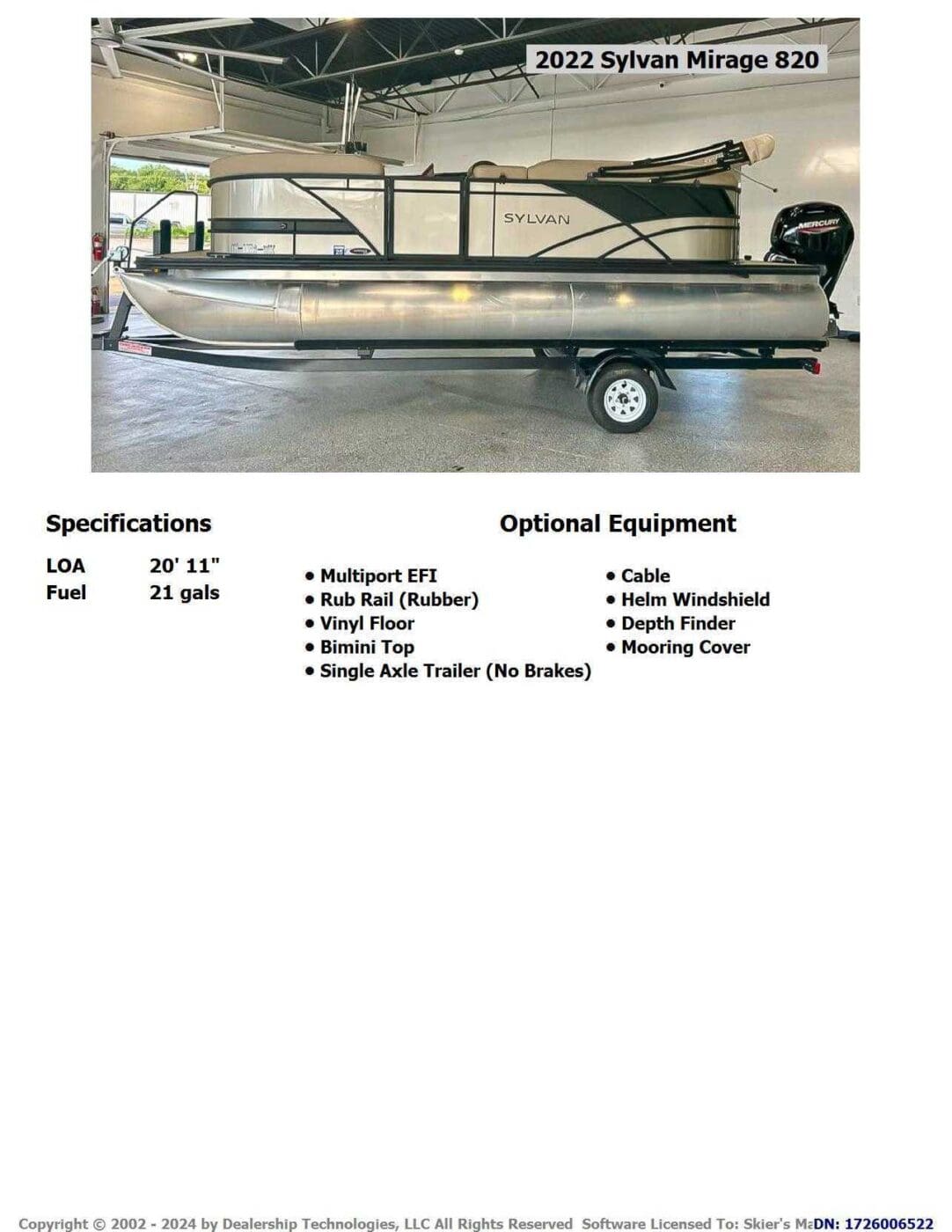2022 Sylvan Mirage 820 (Used) #C06531BT