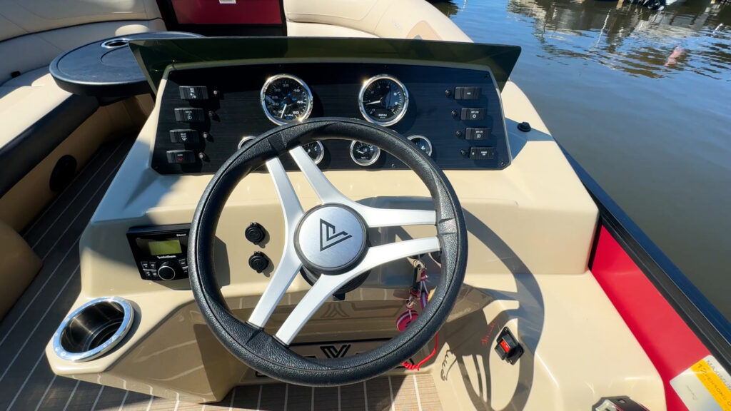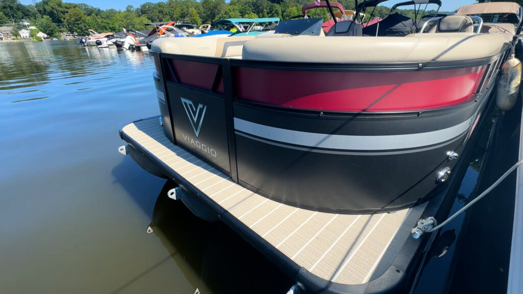 This Viaggio features the Sport Toon Package upgrade with 3/4 center sport toon with 2 lifting strakes, full underdeck performance shield, and hydraulic steering.