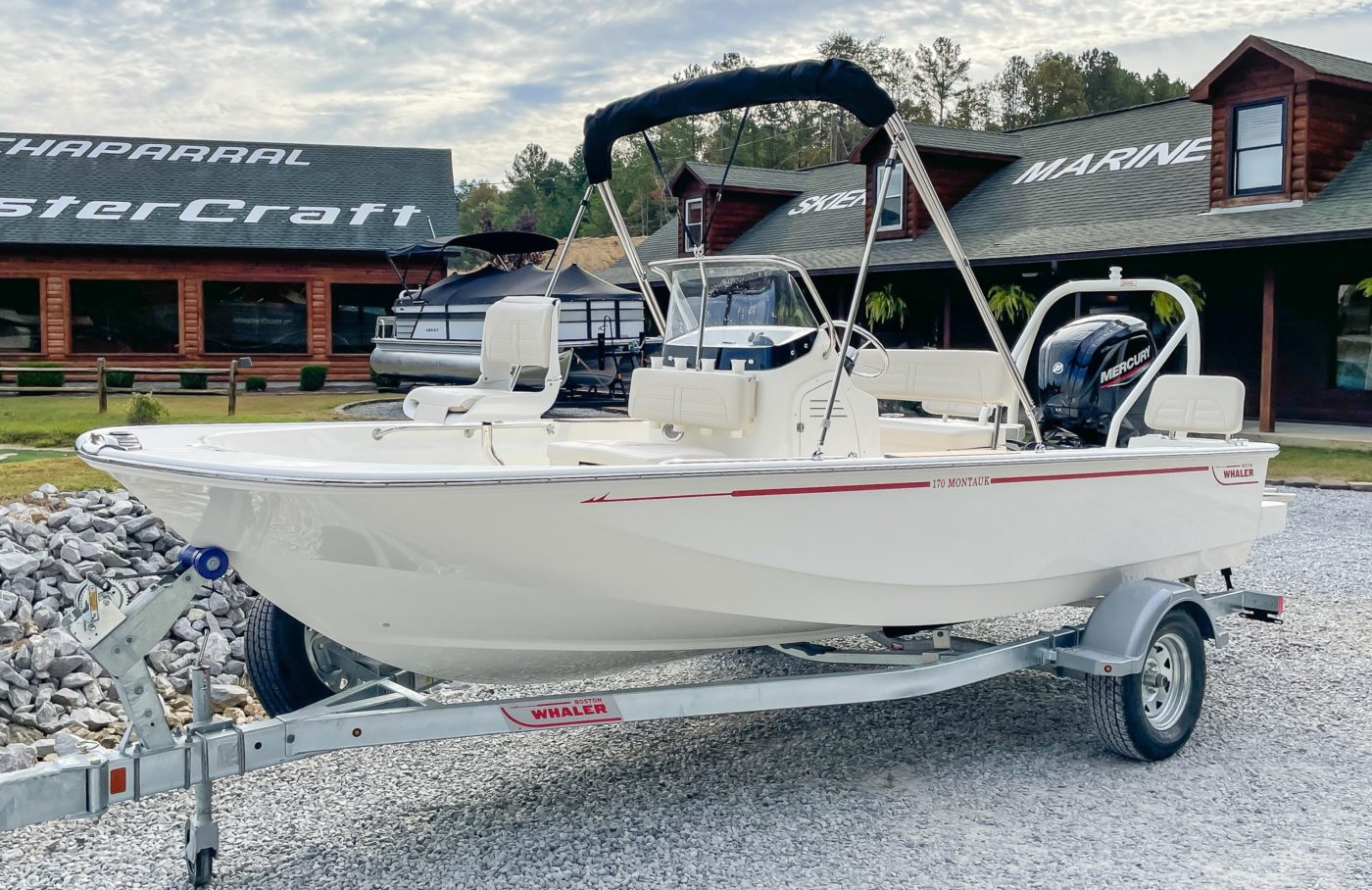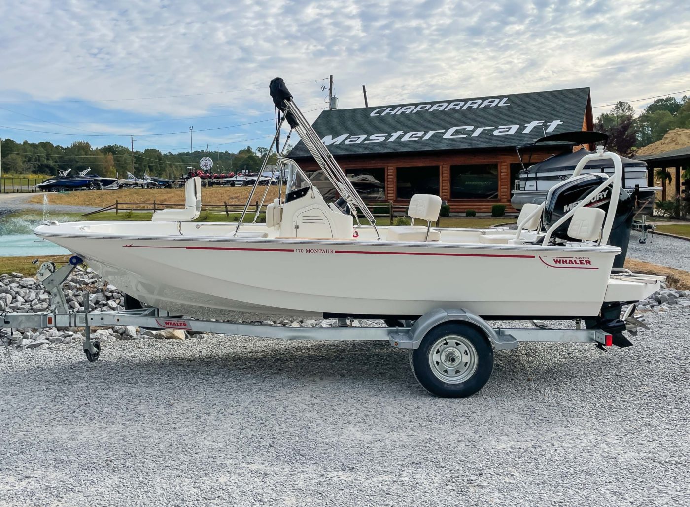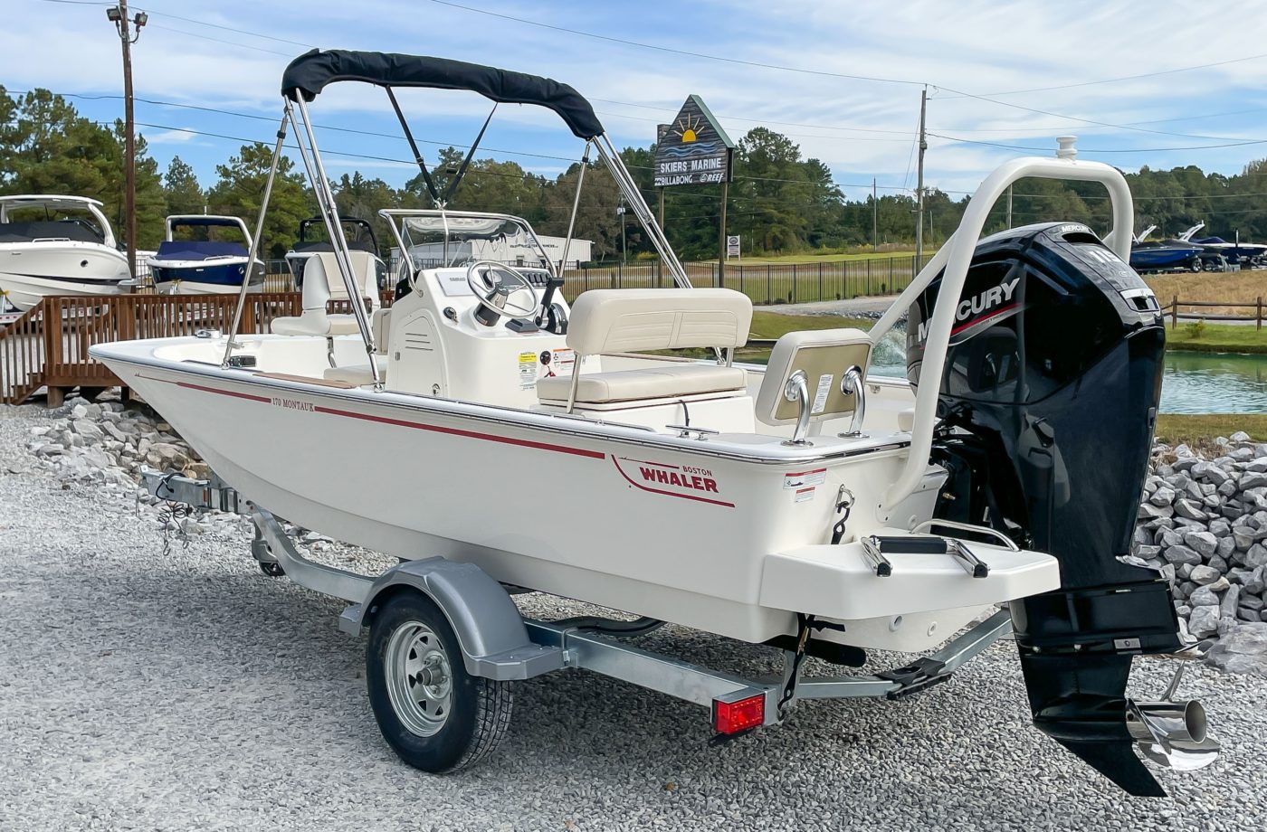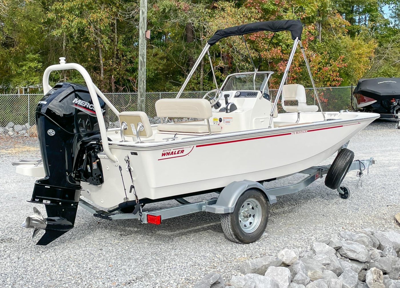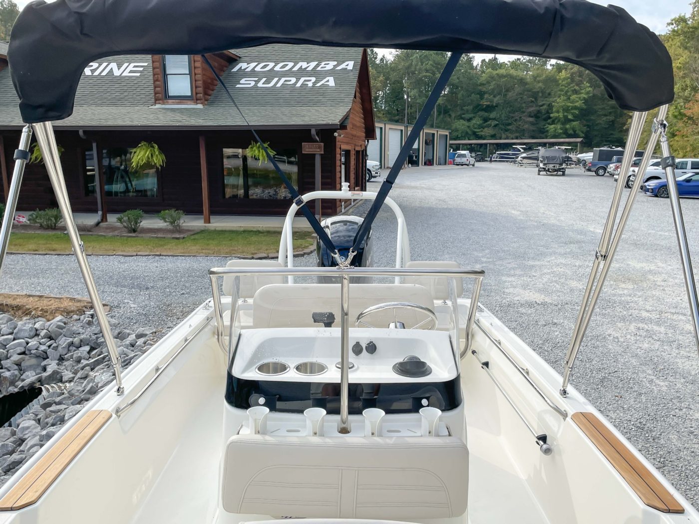 • All hardware 316-L stainless steel All rails welded 316-L stainless steel DECK/COCKPIT 8 stainless steel cleats (3) 19 interior freeboard Boarding steps (midship)(molded-in port and starboard) Bow and stern lifting eyes Bow locker with fiberglass cover and overboard drain Bow rail welded stainless steel Cup holders at bow (2) Forward fishbox with overboard drain Heavy-duty rub rail Integrated transom storage Rod holders (4)(stern) Side rails stainless steel Swim platform with grab rail and telescoping stainless steel swim ladder (fiberglass) CONSOLE 12V receptacle Access door with lockable stainless steel latch Acrylic windshield Electrical switch panel with circuit breaker protection Drink holders (3) Electric horn Mercury binnacle control Partitioned storage at top of helm Stainless steel steering wheel Welded stainless steel grab rail SEATING Reversible pilot seat with locking backrest and storage MECHANICAL 90 EXLPT EFI Black Command Thrust FourStroke Mercury engine Analog instrumentation Battery box and switch with hold-down strap in console Bilge pump with float switch (2) Classic style navigation lights Fuel tanks integrated (25 gallons) Hydraulic steering Smart Craft digital gauges Stainless steel propeller Vessel view mobile GALVANIZED TANDEM AXLE TRAILER WITH SWING TONGUE & DISC BRAKES LED lights Spare tire Tie-downs Torsion Axle Trailer jack Winch with nylon strap