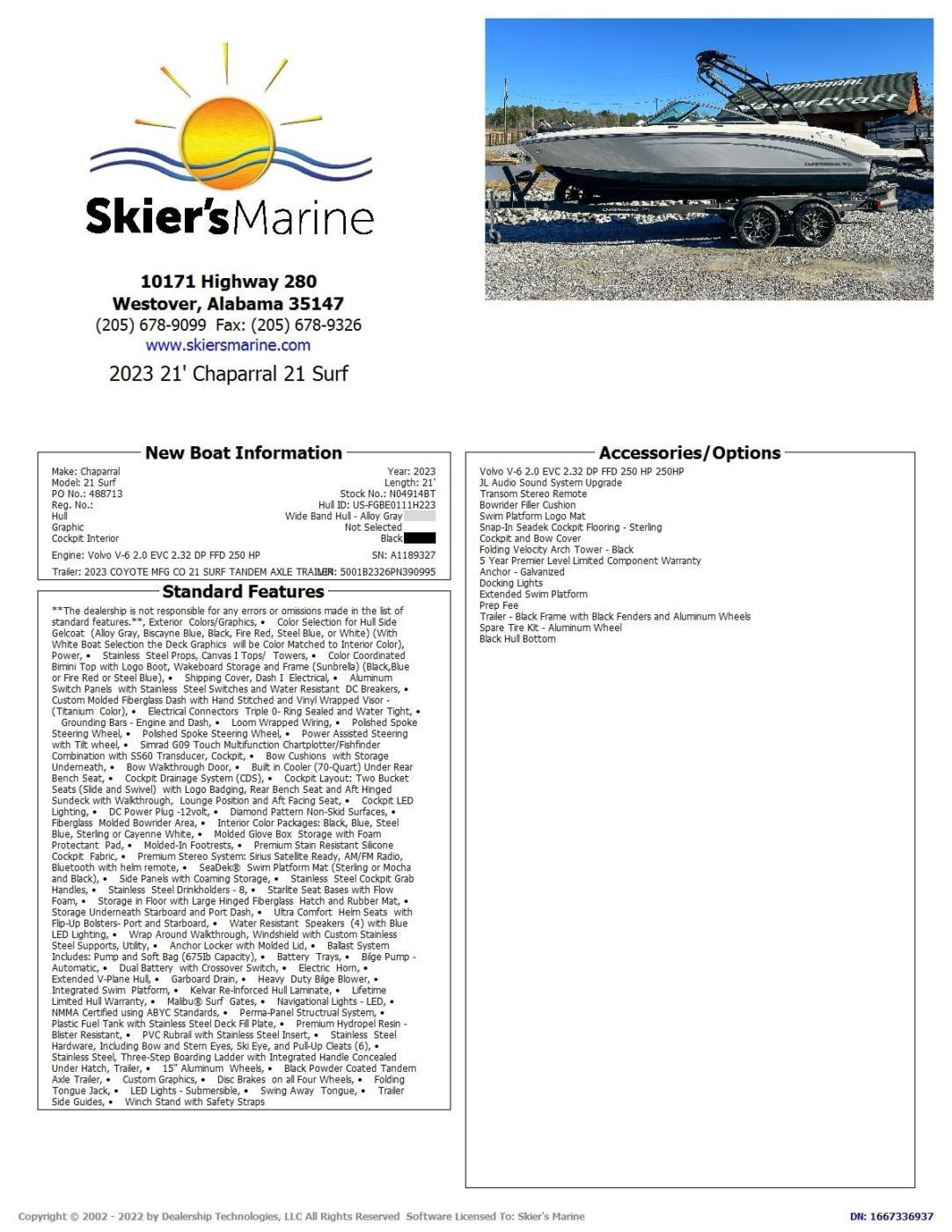 • Premium Stereo System: Sirius Satellite Ready, AM/FM Radio, Bluetooth with helm remote