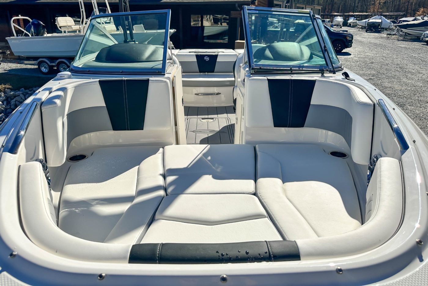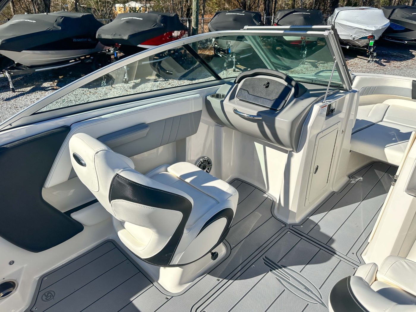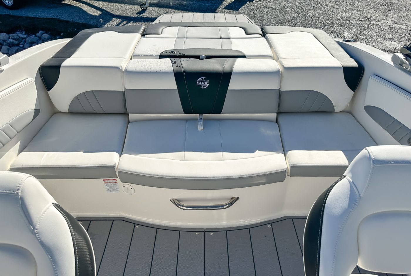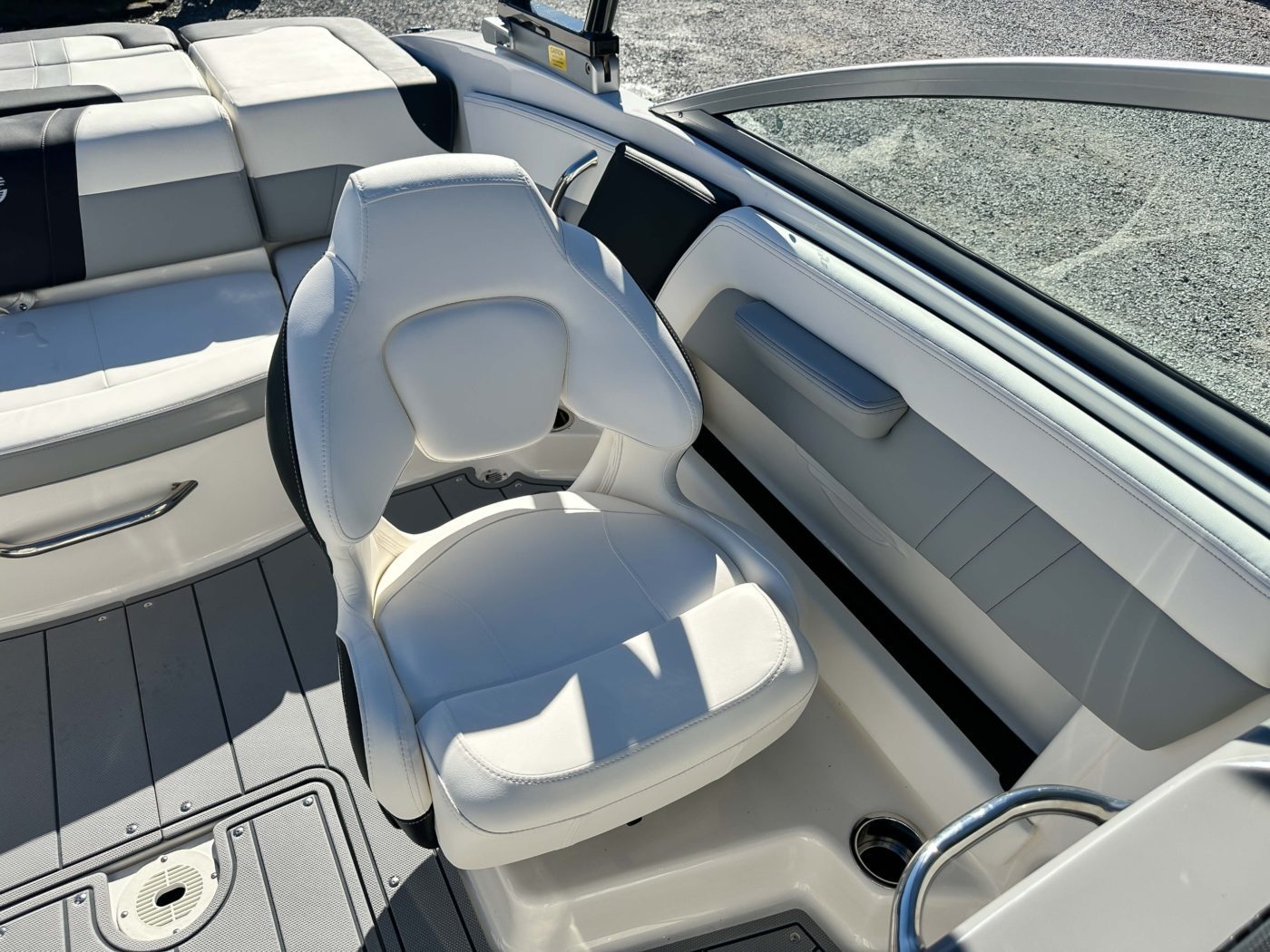 • Cockpit Layout: Two Bucket Seats (Slide and Swivel) with Logo Badging, Rear Bench Seat and Aft Hinged Sundeck with Walkthrough, Lounge Position and Aft Facing Seat
