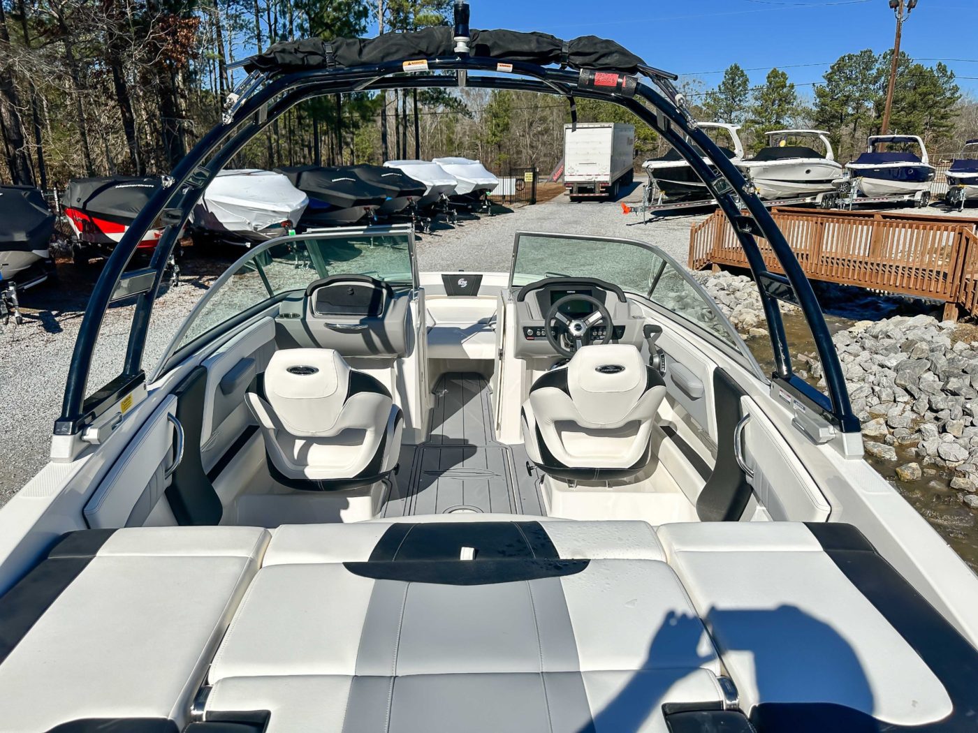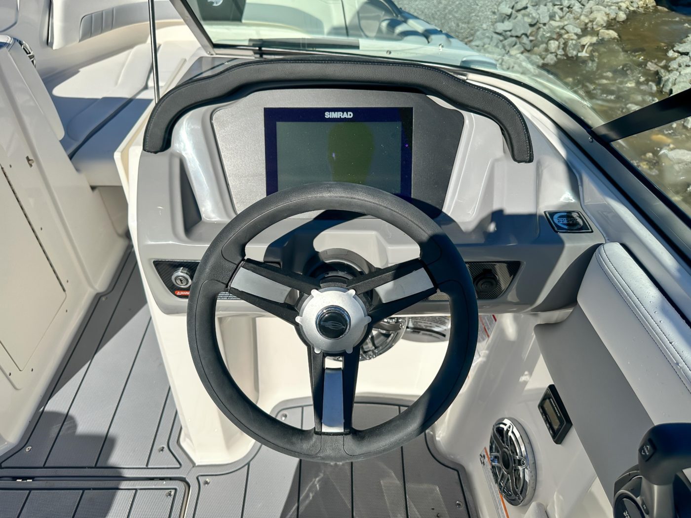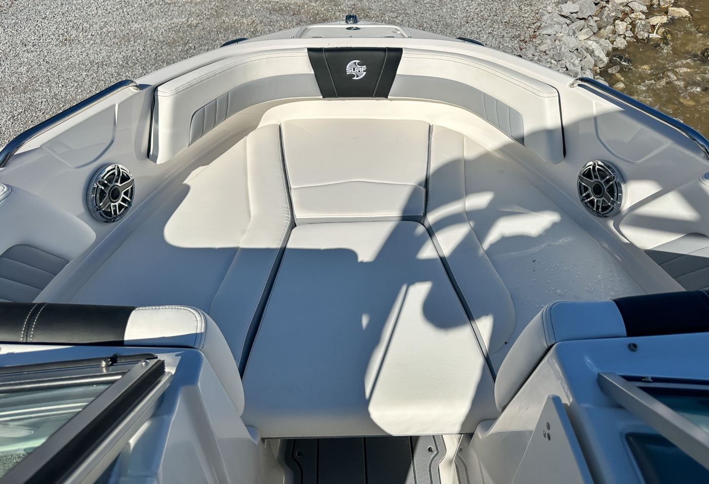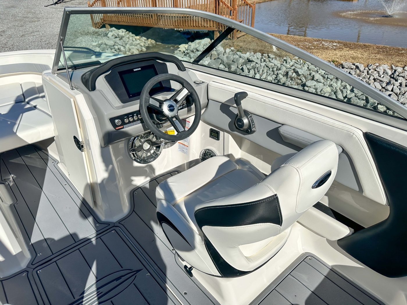• Cockpit Layout: Two Bucket Seats (Slide and Swivel) with Logo Badging, Rear Bench Seat and Aft Hinged Sundeck with Walkthrough, Lounge Position and Aft Facing Seat