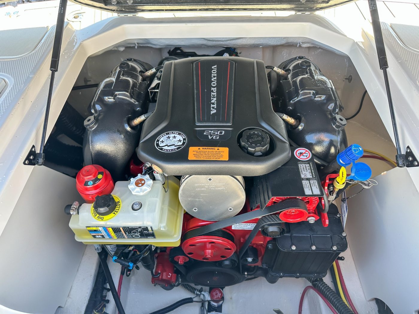 • Color Selection for Hull Side Gelcoat (Alloy Gray, Biscayne Blue, Black, Fire Red, Steel Blue, or White) (With White Boat Selection the Deck Graphics will be Color Matched to Interior Color)