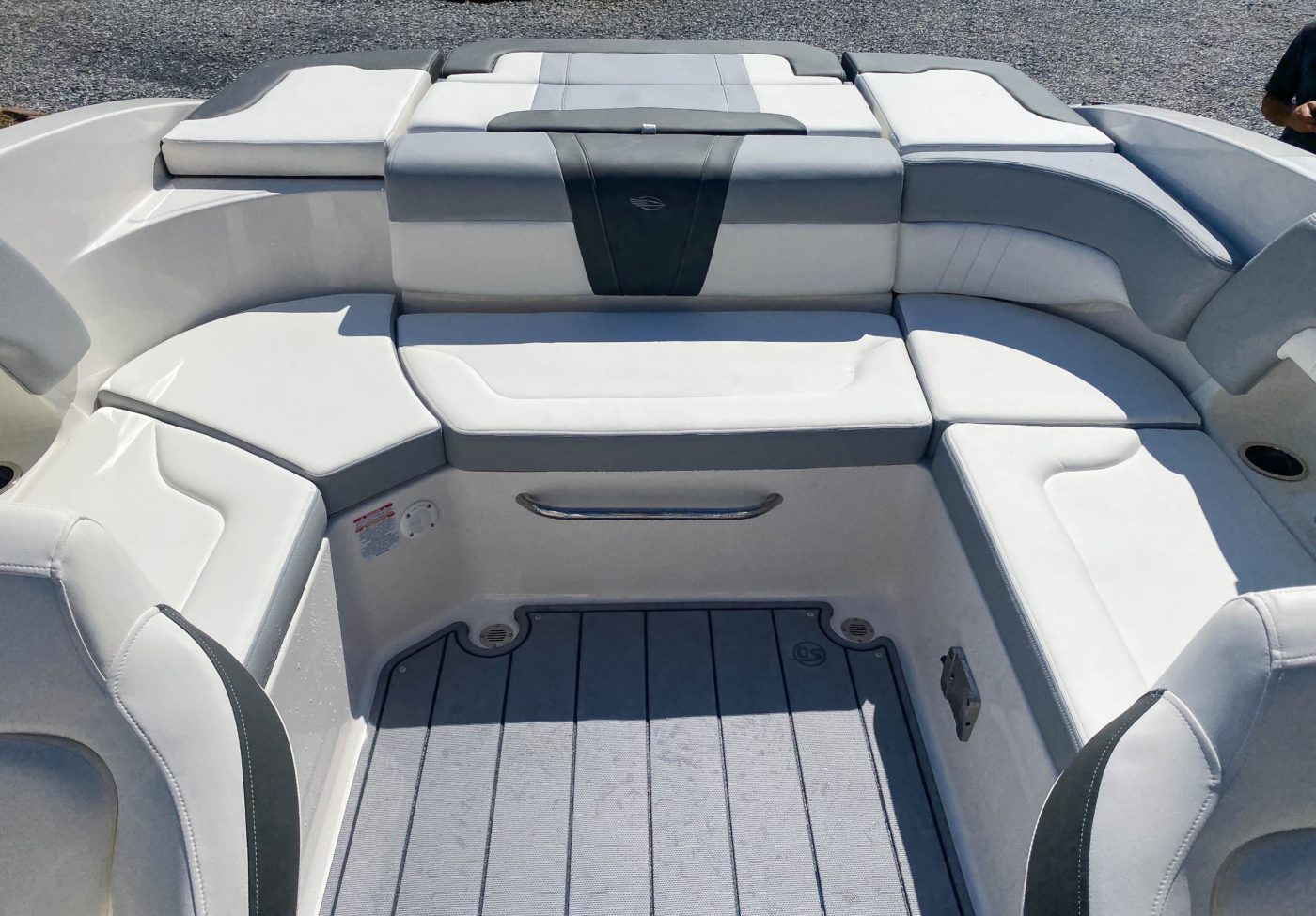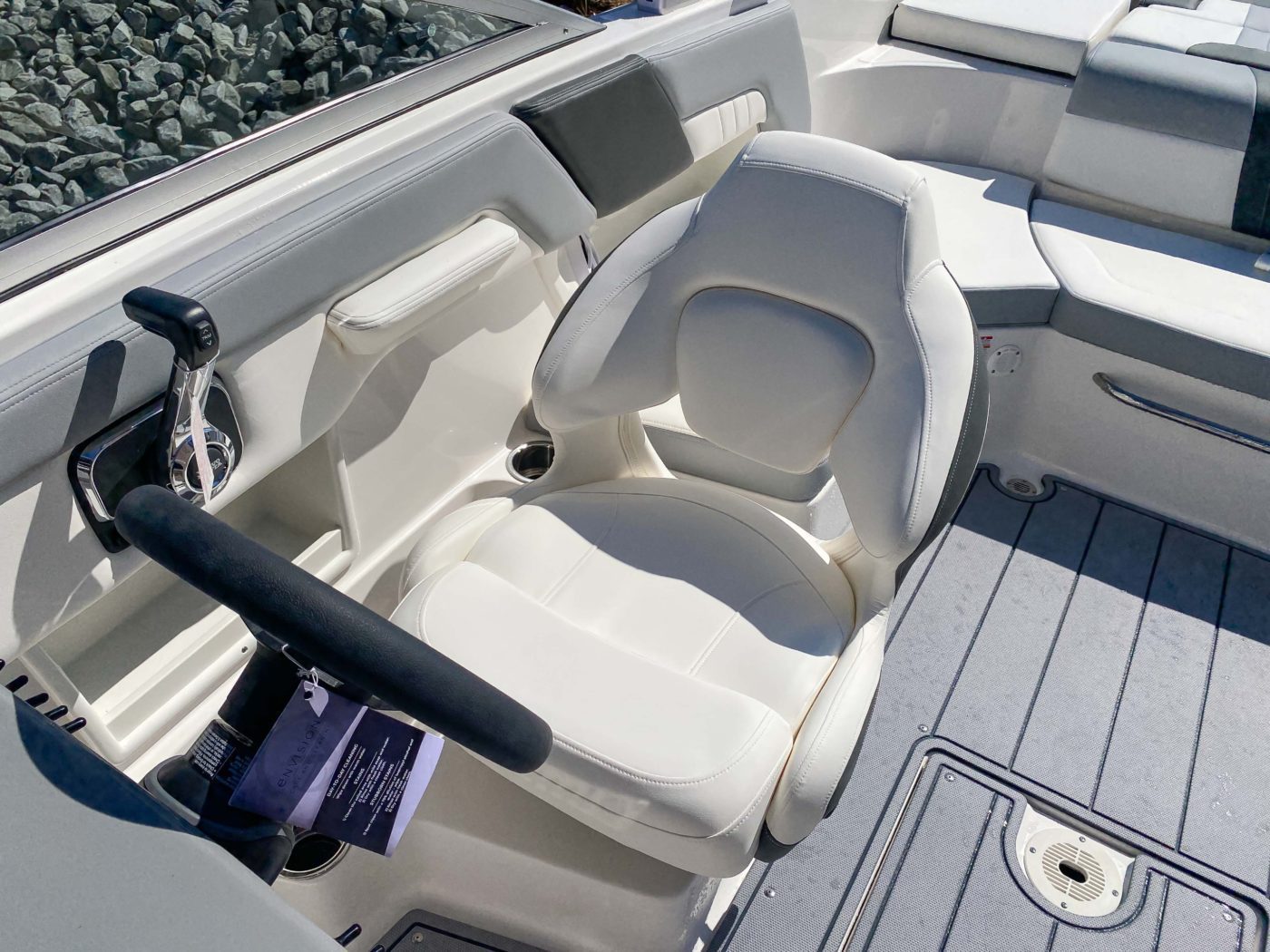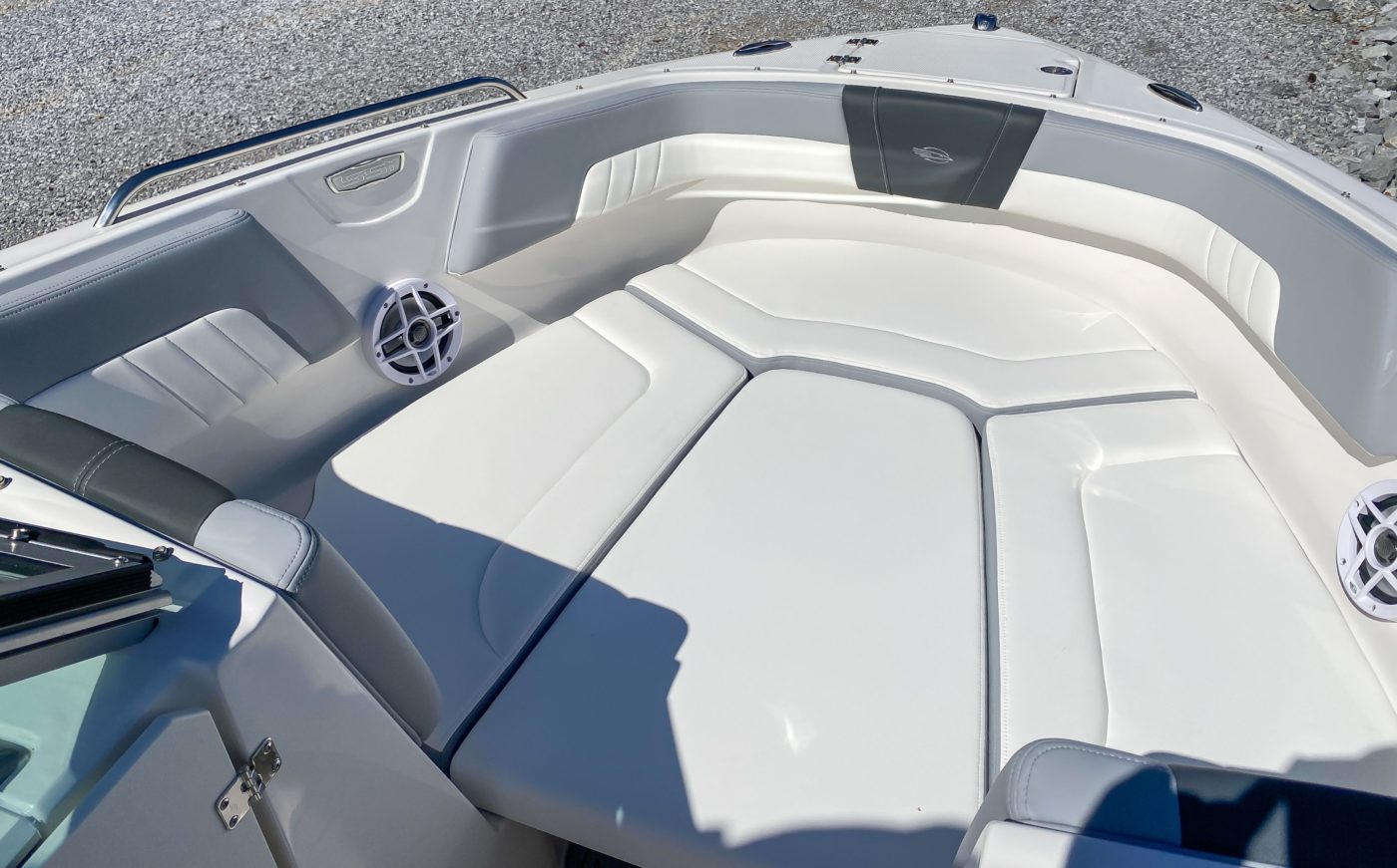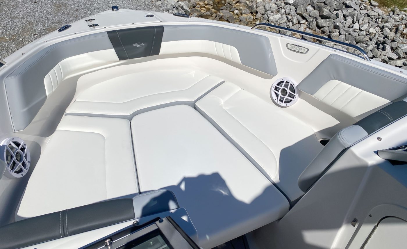 • Cockpit Layout: Two Bucket Seats (Slide and Swivel) with Logo Badging, U-Shaped Seating and Aft Hinged Sundeck with Walk-Thru, Lounge Position and Aft Facing Seat