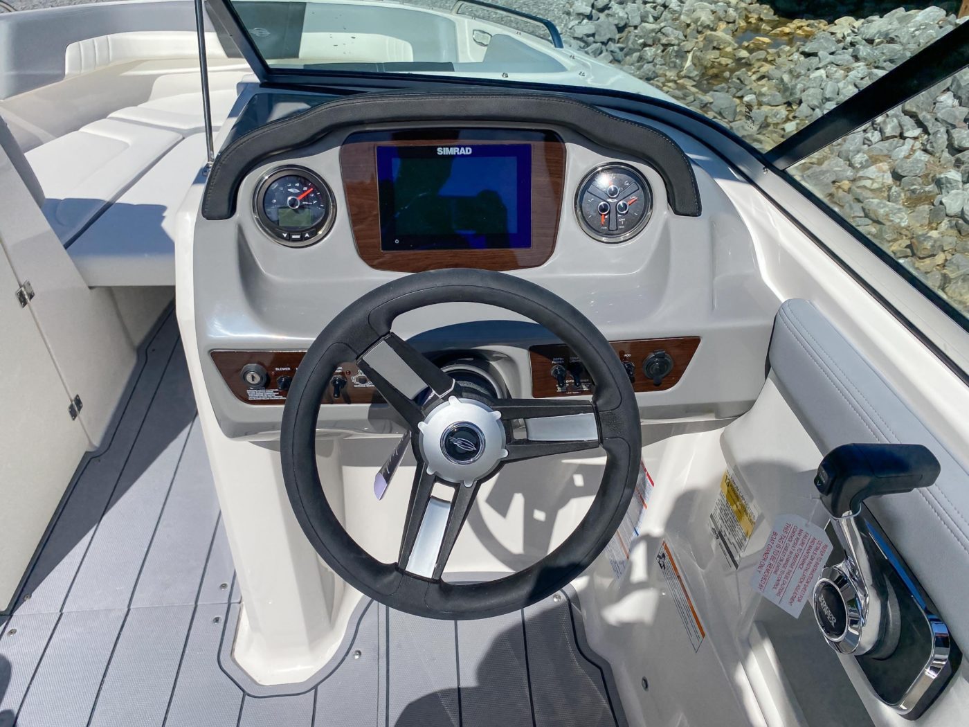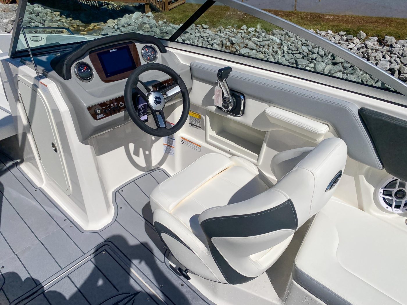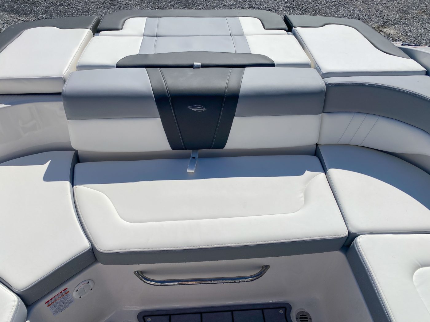• Cockpit Layout: Two Bucket Seats (Slide and Swivel) with Logo Badging, U-Shaped Seating and Aft Hinged Sundeck with Walk-Thru, Lounge Position and Aft Facing Seat