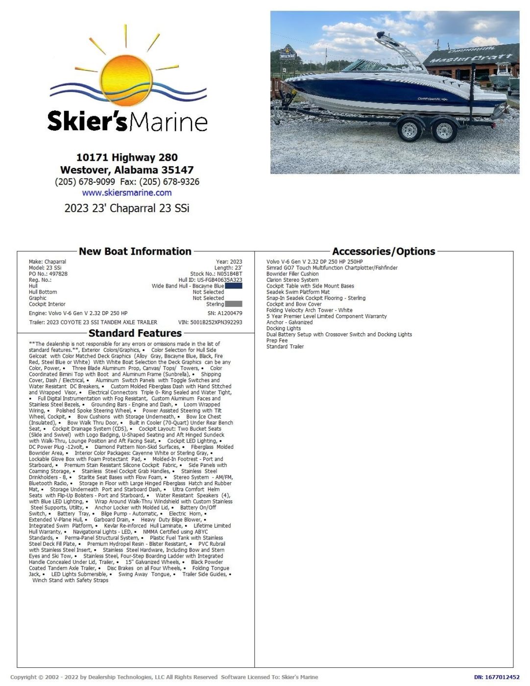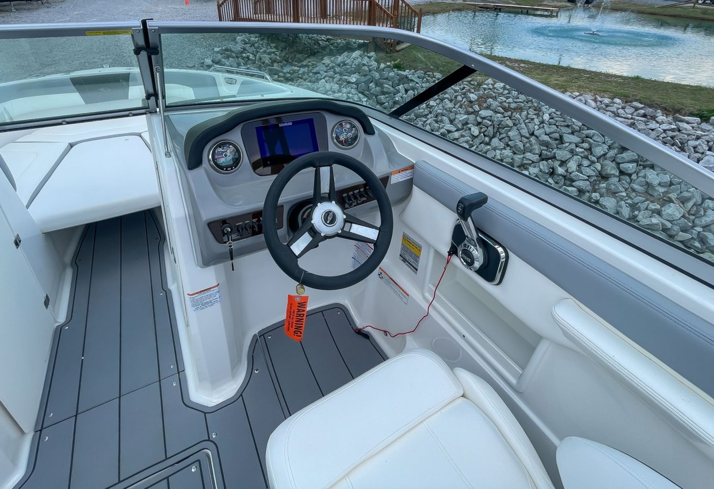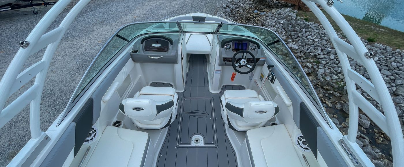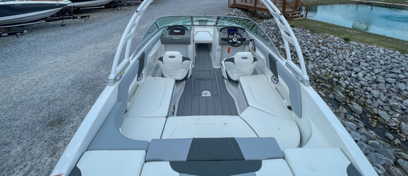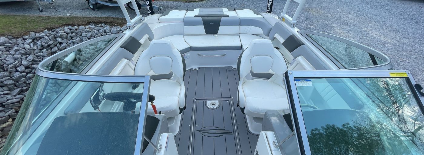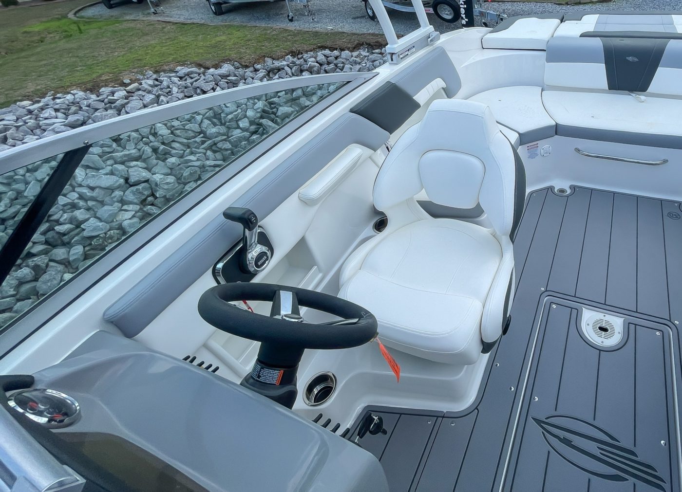 • Cockpit Layout: Two Bucket Seats (Slide and Swivel) with Logo Badging, U-Shaped Seating and Aft Hinged Sundeck with Walk-Thru, Lounge Position and Aft Facing Seat