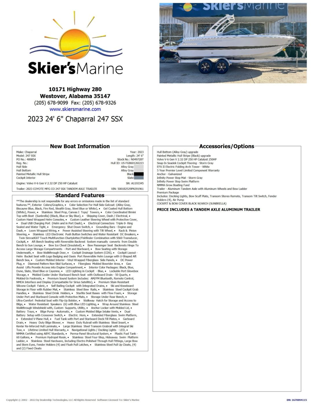 • Premium Package Includes: Docking Lights, Bow Scuff Plate, Transom Stereo Remote, Transom Tilt Switch, Fender Holders (4), Air Pump