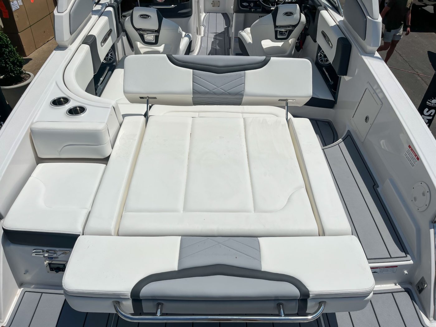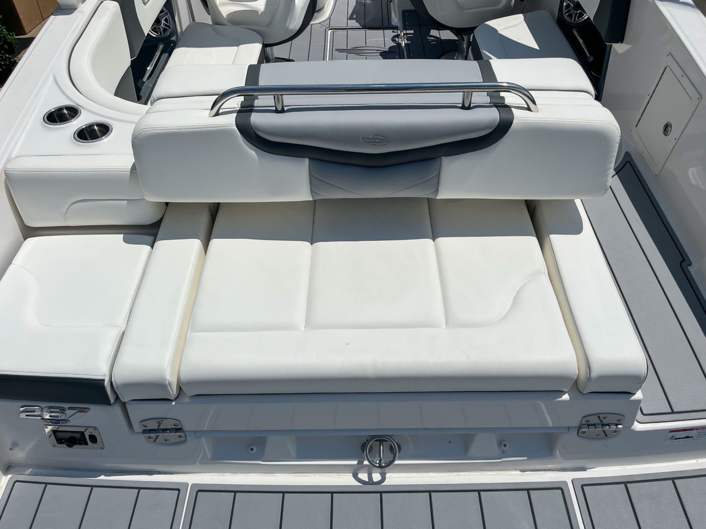 • Aft Bench Seating with Reversible Backrest System manually converts from Double Bench to Sun Lounge