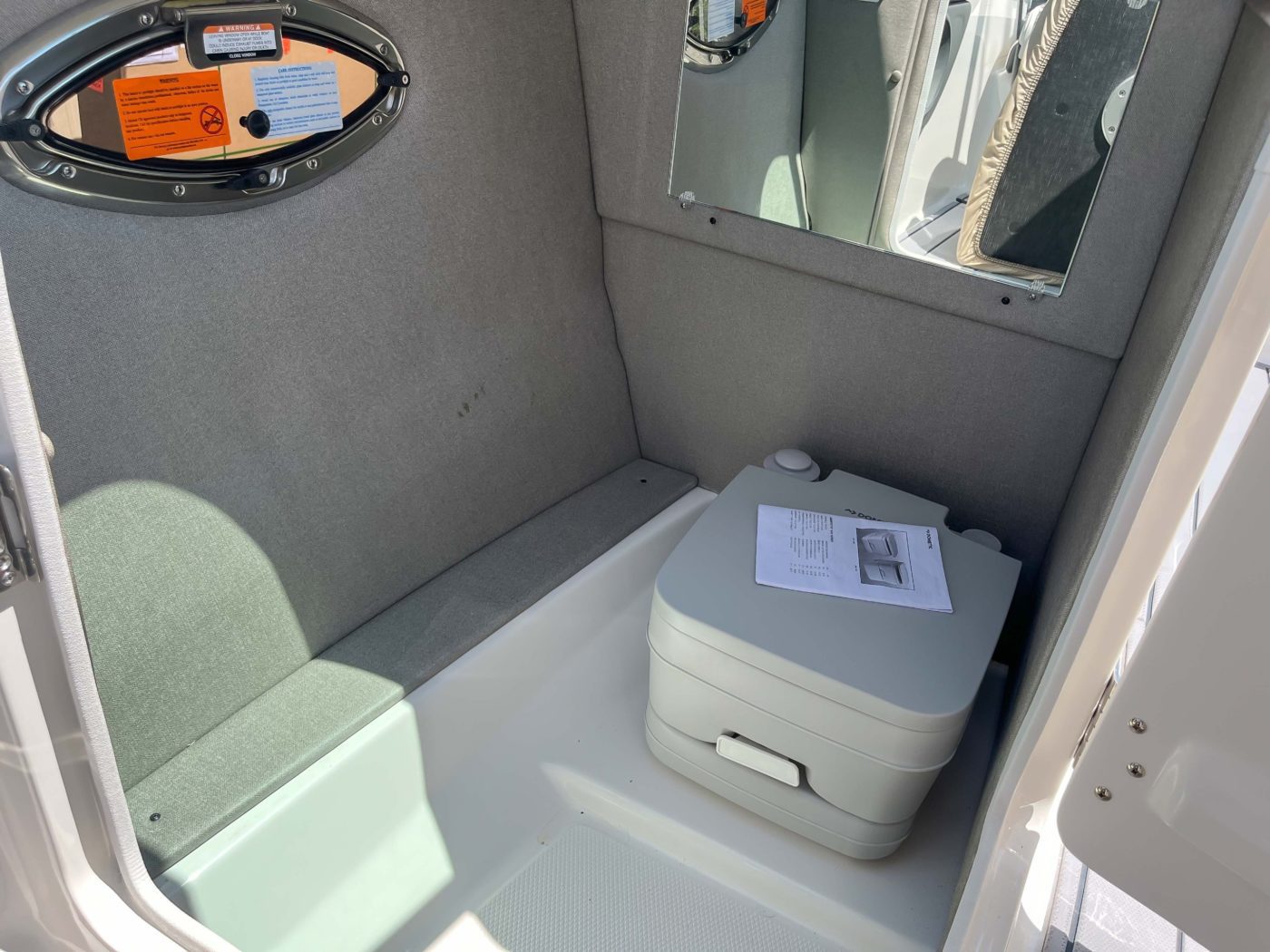 • Enclosed Fiberglass Head Compartment