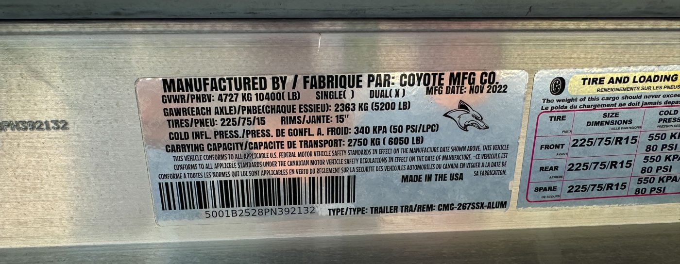 • Trailer – Aluminum Tandem Axle with Aluminum Wheels and Bow Ladder