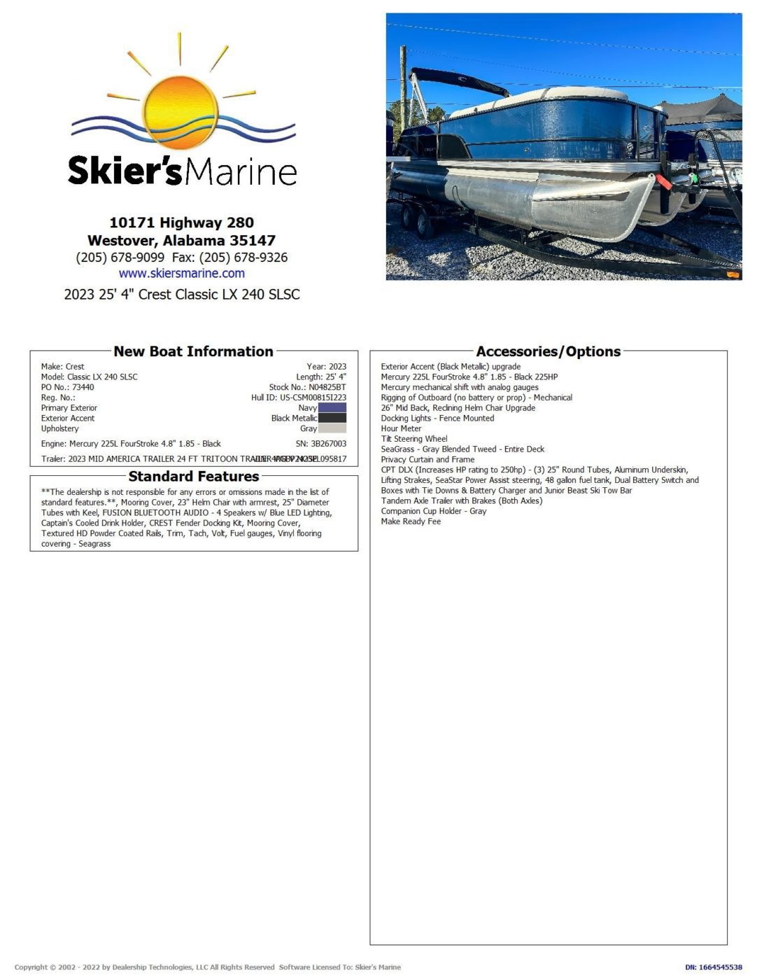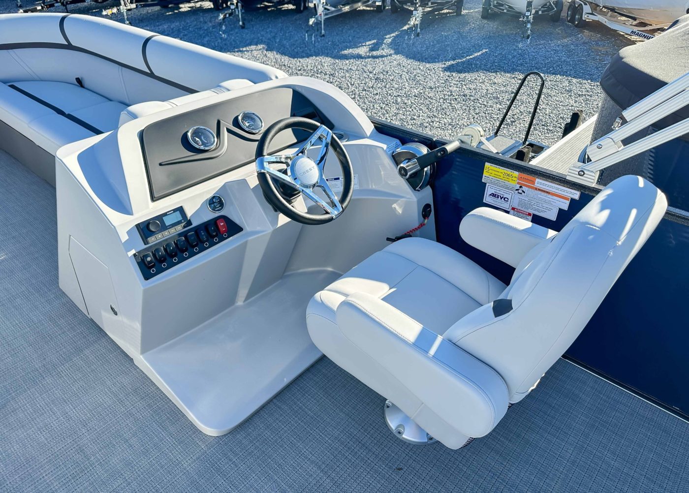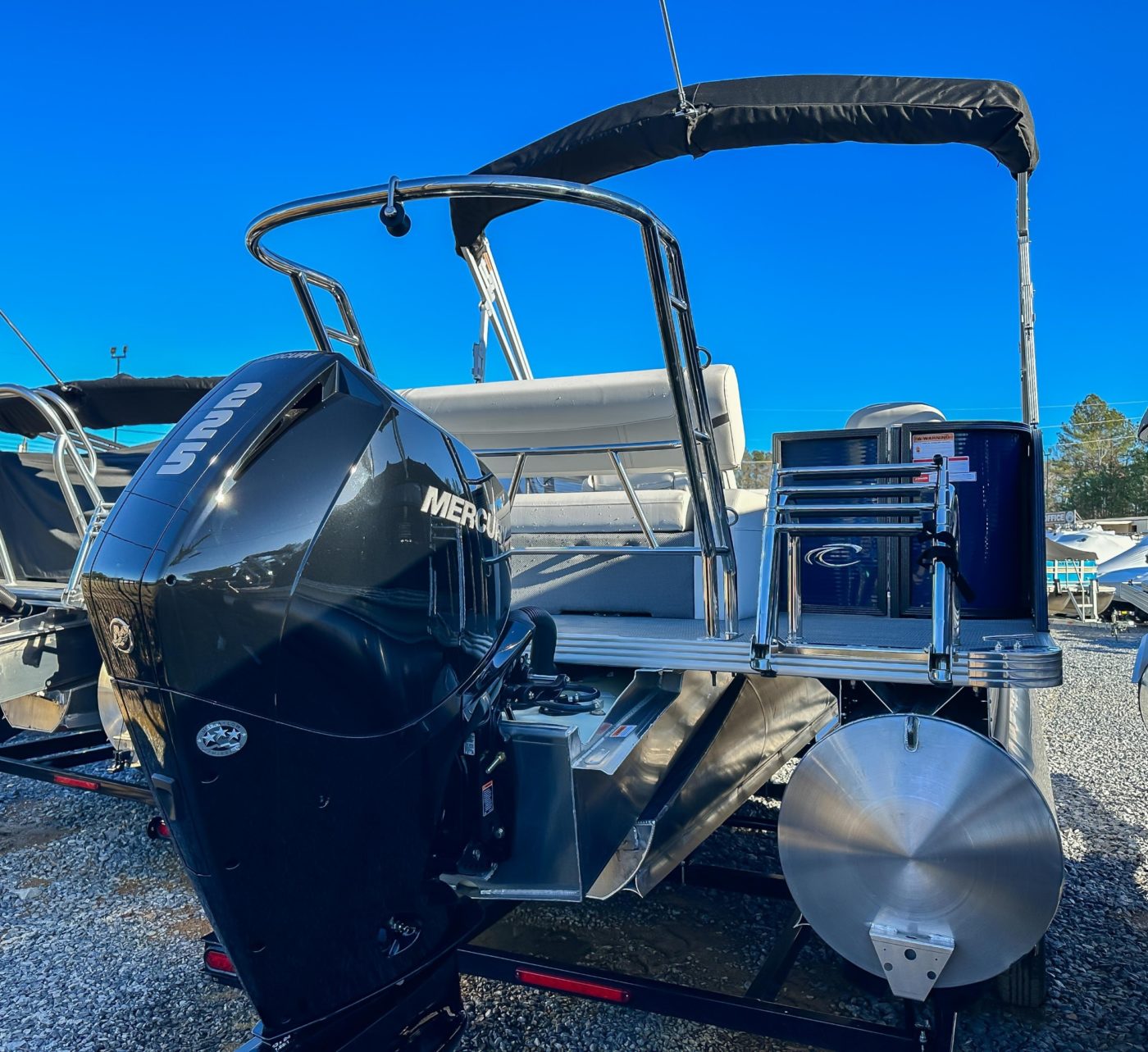 • CPT DLX (Increases HP rating to 250hp) – (3) 25″ Round Tubes, Aluminum Underskin, Lifting Strakes, SeaStar Power Assist steering, 48 gallon fuel tank, Dual Battery Switch and Boxes with Tie Downs & Battery Charger and Junior Beast Ski Tow Bar
