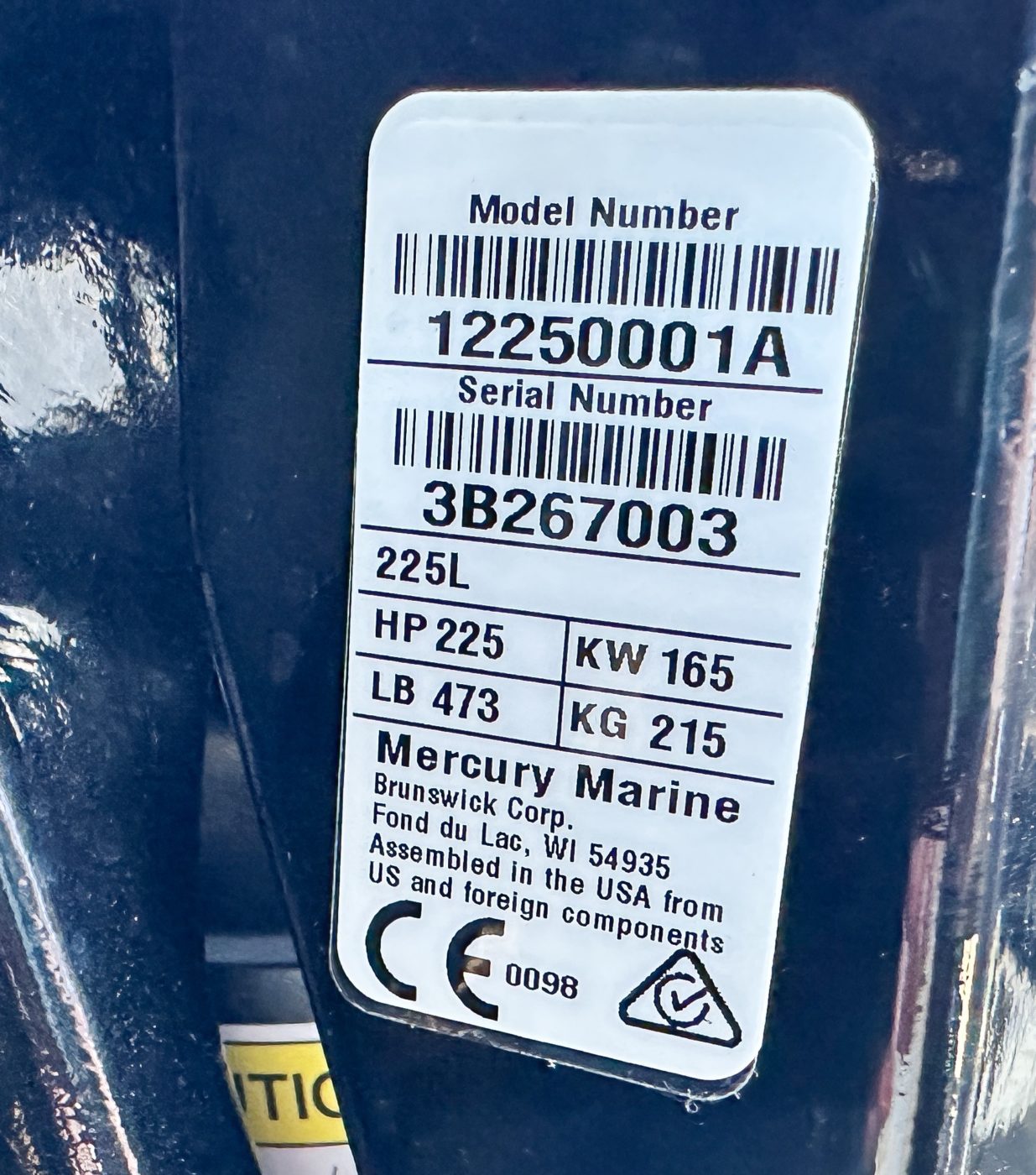 • Mercury 225L FourStroke 4.8″ 1.85 – Black 225HP