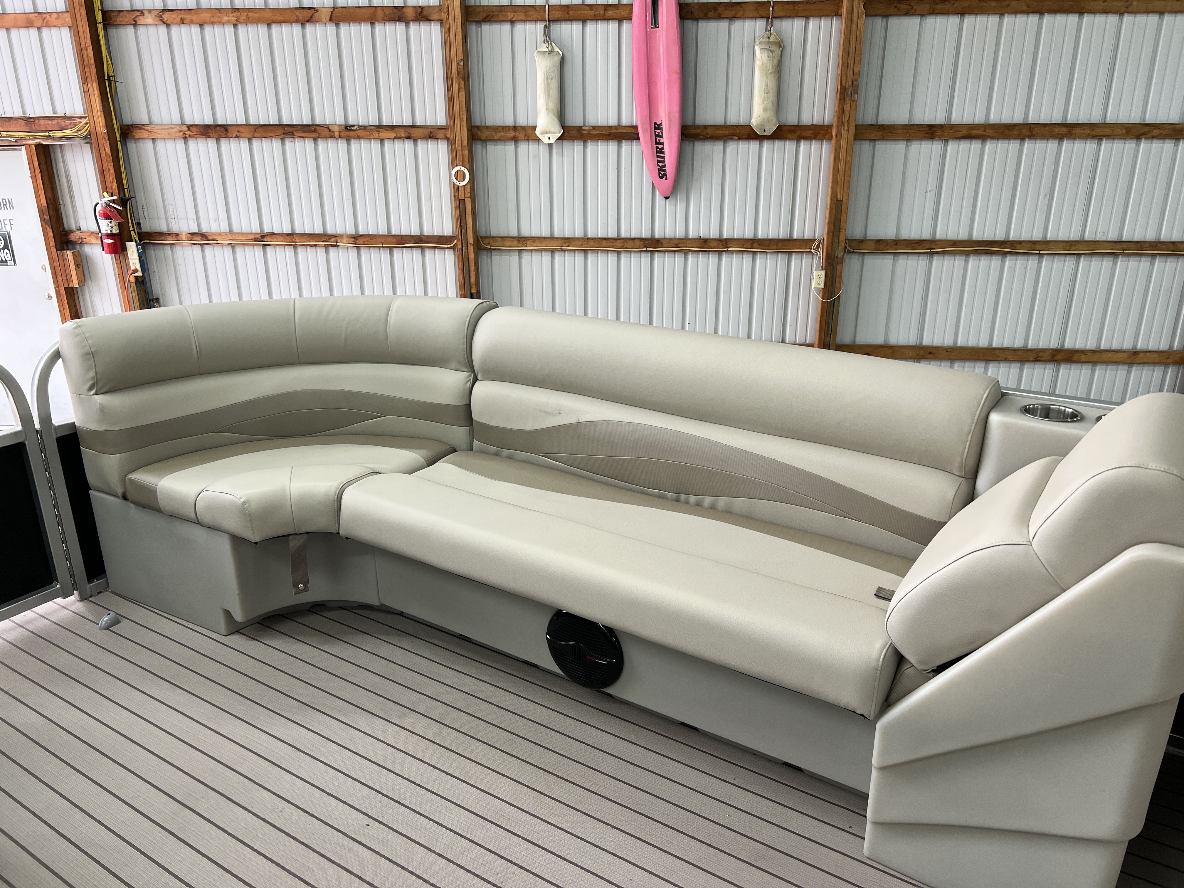 Perfect for fishing, family fun, and relaxation. This is our most popular design, both Fishing and Fun co-exist in this design, and it does a number of things amazingly! Whether you want some rest and relaxation, or exploring with some family tube towing, this pontoon offers lots of lounge space and enough options to keep the comfort factor high.