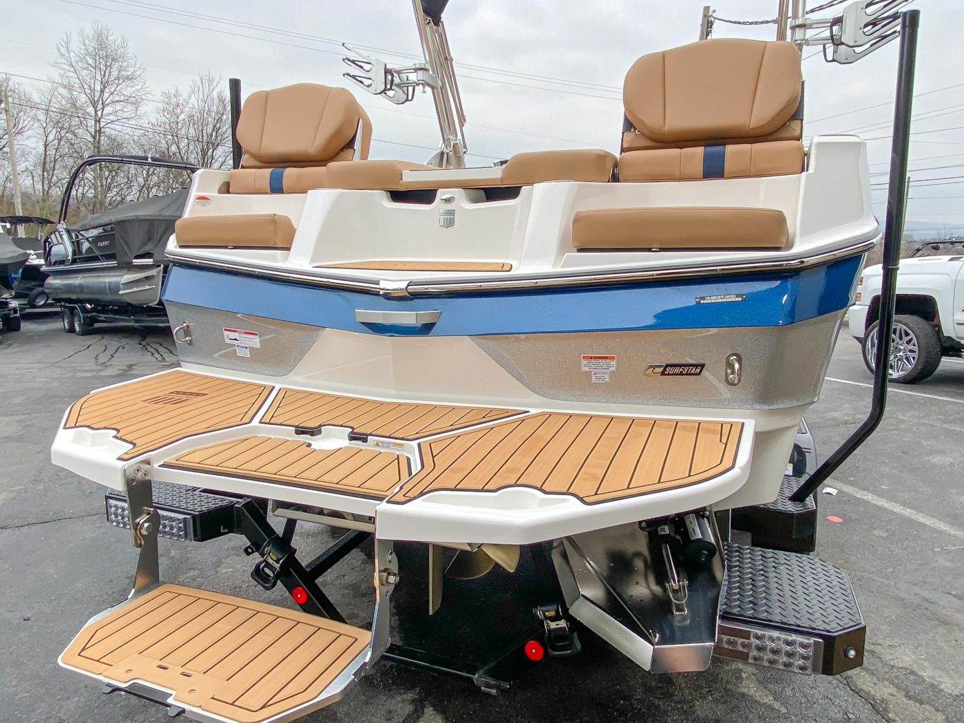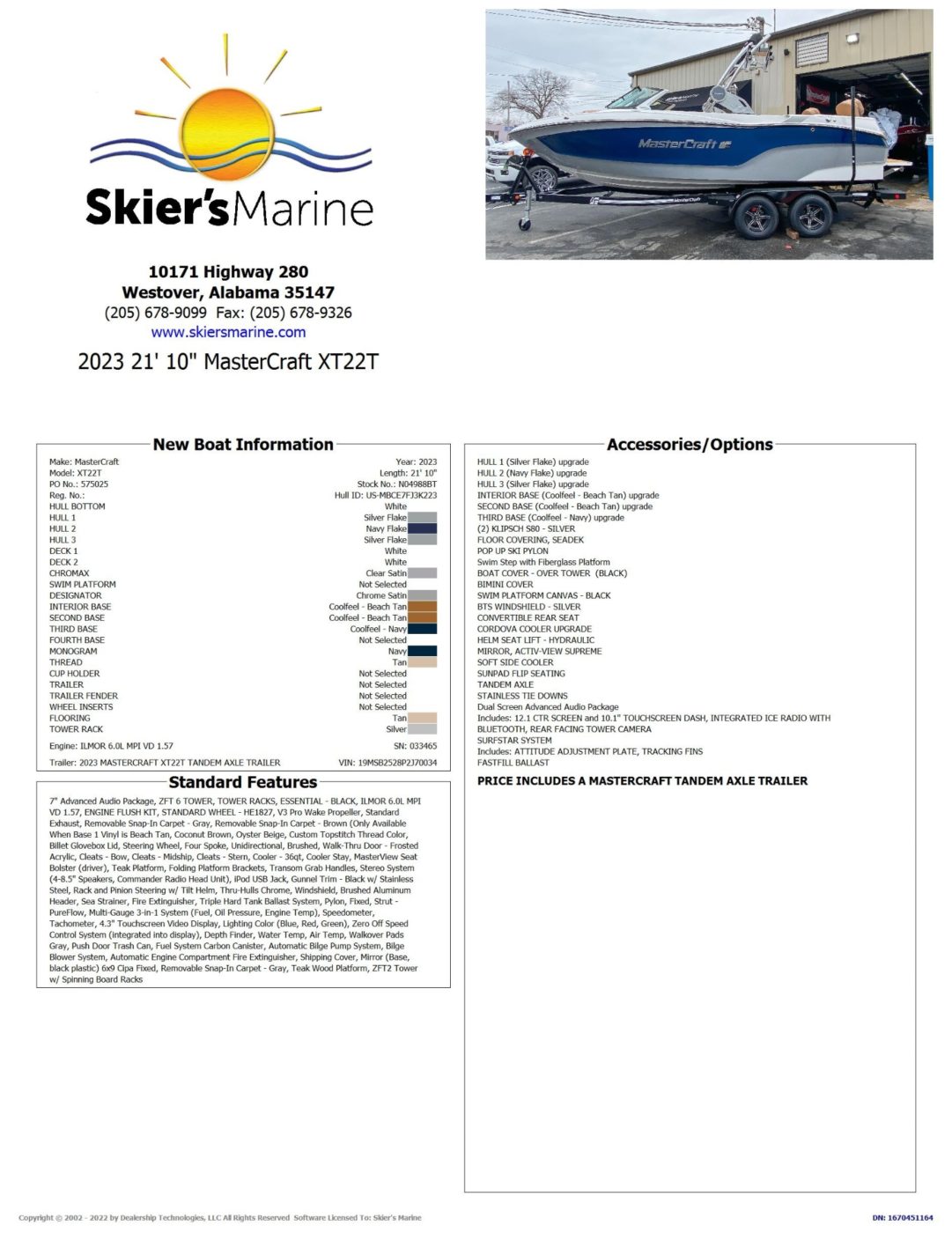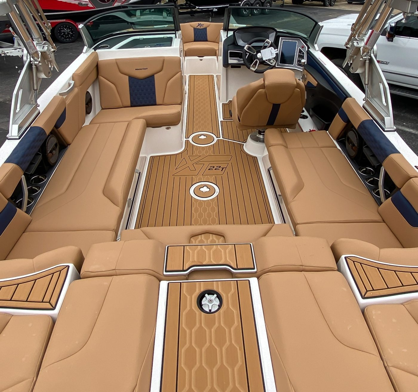 HULL 2 (Navy Flake) upgradeHULL 3 (Silver Flake) upgradeINTERIOR BASE (Coolfeel – Beach Tan) upgradeSECOND BASE (Coolfeel – Beach Tan) upgradeTHIRD BASE (Coolfeel – Navy) upgrade(2) KLIPSCH S80 – SILVERFLOOR COVERING, SEADEKPOP UP SKI PYLONSwim Step with Fiberglass PlatformBIMINI COVERSWIM PLATFORM CANVAS – BLACKBOAT COVER – OVER TOWER (BLACK)CONVERTIBLE REAR SEATCORDOVA COOLER UPGRADEHELM SEAT LIFT – HYDRAULICSOFT SIDE COOLERSUNPAD FLIP SEATINGBTS WINDSHIELD – SILVERMIRROR, ACTIV-VIEW SUPREMETANDEM AXLESTAINLESS TIE DOWNSDual Screen Advanced Audio Package Includes: 12.1 CTR SCREEN and 10.1″ TOUCHSCREEN DASH, INTEGRATED ICE RADIO WITH BLUETOOTH, REAR FACING TOWER CAMERASURFSTAR SYSTEM Includes: ATTITUDE ADJUSTMENT PLATE, TRACKING FINSFASTFILL BALLASTPRICE INCLUDES A MASTERCRAFT TANDEM AXLE TRAILERMASTERCRAFT “SUMMER OF SAVINGS” ZFT 6 TOWERTOWER RACKS, ESSENTIAL – BLACKILMOR 6.0L MPI VD 1.57ENGINE FLUSH KITSTANDARD WHEEL – HE1827V3 Pro Wake PropellerStandard ExhaustRemovable Snap-In Carpet – GrayRemovable Snap-In Carpet – Brown (Only Available When Base 1 Vinyl is Beach Tan, Coconut Brown, Oyster BeigeCustom Topstitch Thread ColorBillet Glovebox LidSteering Wheel, Four Spoke, Unidirectional, BrushedWalk-Thru Door – Frosted AcrylicCleats – BowCleats – MidshipCleats – SternCooler – 36qtCooler StayMasterView Seat Bolster (driver)Teak PlatformFolding Platform BracketsTransom Grab HandlesStereo System (4-8.5″ Speakers, Commander Radio Head Unit)iPod USB JackGunnel Trim – Black w/ Stainless SteelRack and Pinion Steering w/ Tilt HelmThru-Hulls ChromeWindshield, Brushed Aluminum HeaderSea StrainerFire ExtinguisherTriple Hard Tank Ballast SystemPylon, FixedStrut – PureFlowMulti-Gauge 3-in-1 System (Fuel, Oil Pressure, Engine Temp)SpeedometerTachometer4.3″ Touchscreen Video DisplayLighting Color (Blue, Red, Green)Zero Off Speed Control System (integrated into display)Depth FinderWater TempAir TempWalkover Pads GrayPush Door Trash CanFuel System Carbon CanisterAutomatic Bilge Pump SystemBilge Blower SystemAutomatic Engine Compartment Fire ExtinguisherShipping CoverMirror (Base, black plastic) 6×9 Cipa FixedRemovable Snap-In Carpet – GrayTeak Wood PlatformZFT2 Tower w/ Spinning Board Racks