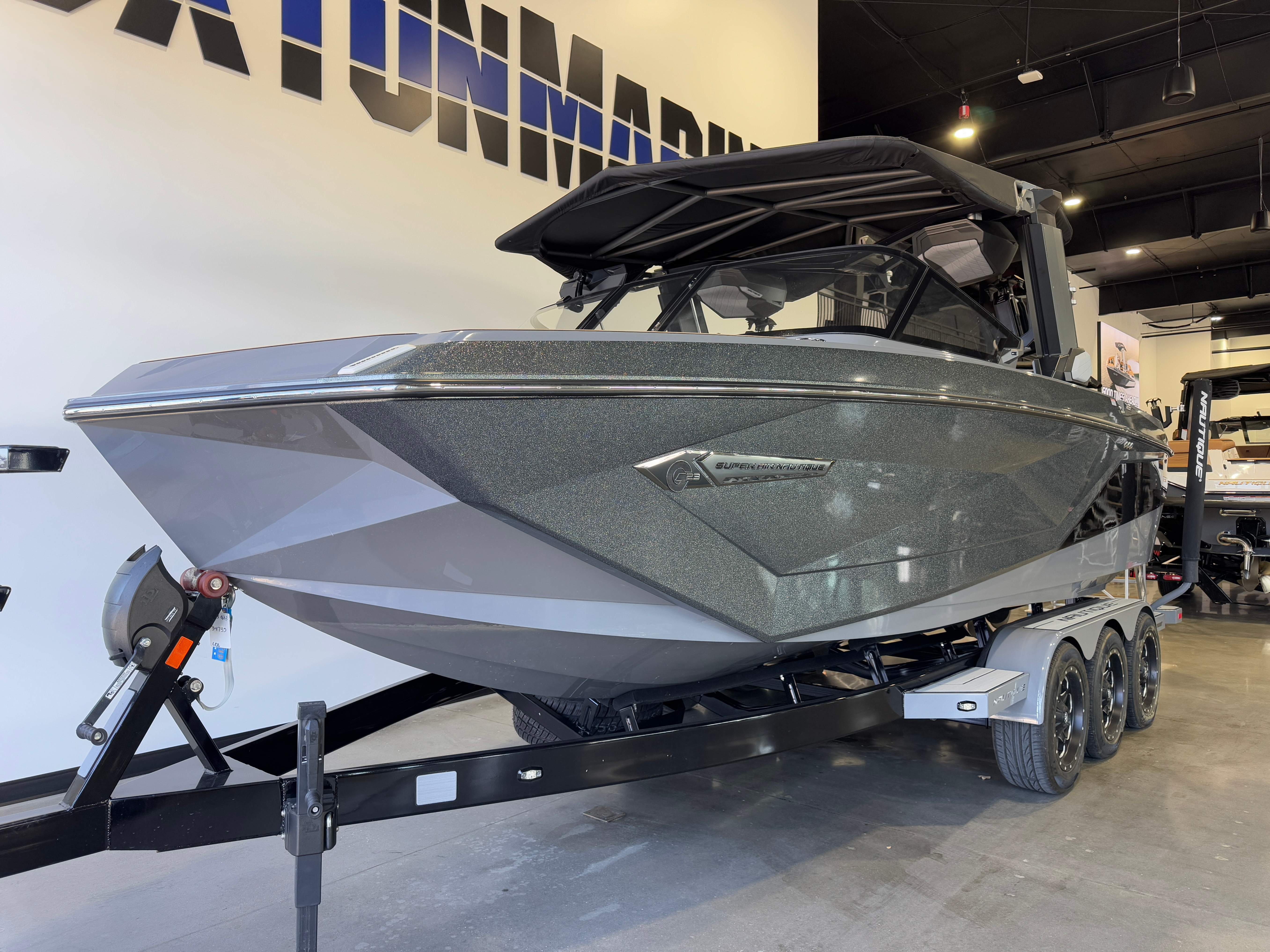 2023 Super Air Nautique G23 ZZ6 450HP - 6.2L Direct Injection Telescoping Flight Control Tower System Tower Prep Kit JL Audio M Series Studio(Pre-Wired 8 Channel Amp) Maps US-Canada Battery Maintenance System 110 (Integrated Charger-Dual Battery) Cover - Platform Cover-Telescoping Tower Towable/Mooring w/Anti-Pooling(TowerDown) Ballast - Supplemental 1,450 LBS Ladder - Platform Access Lights - Enhanced Courtesy Lighting Package Lights - Underwater LINC Panoray - Navionics Maps Nautique Integrated Steering Assist Seating - Bow Filler Cushion Stereo - JL Audio M6 Series Studio Elite (Wavefront) Stereo - Transom Mounted Remote Control Air-Dam Walk-Thru Air-Dam (Slide In) 2023 Super Air Nautique G23 Standard Items listed below Nautique Configurable Running Surface with Hydro-Plate Nautique LINC PANORAY with Helm Control, Zero Off GPS Speed Control Nautique Surf System™ with WAVEPLATE & Surf Pipe Exhaust Freshwater Engine Flush System Wake Package(Integrated 2850 lbs Ballast System) Power Management Access with Dual AGM Batteries Lighting-Navigation and Docking Light Array, LED Courtesy Lights Cleats (4), Coolers 2 (Removable), Waste Receptacle Sliding Reversible Stern Seat and Flip-Up Lounge Seat (Port) Rear Facing Transom Seating GoPro™ Ready Rotating Tow Point MyNautique™ Connectivity Platform Premium Mirror, Wireless Charging
