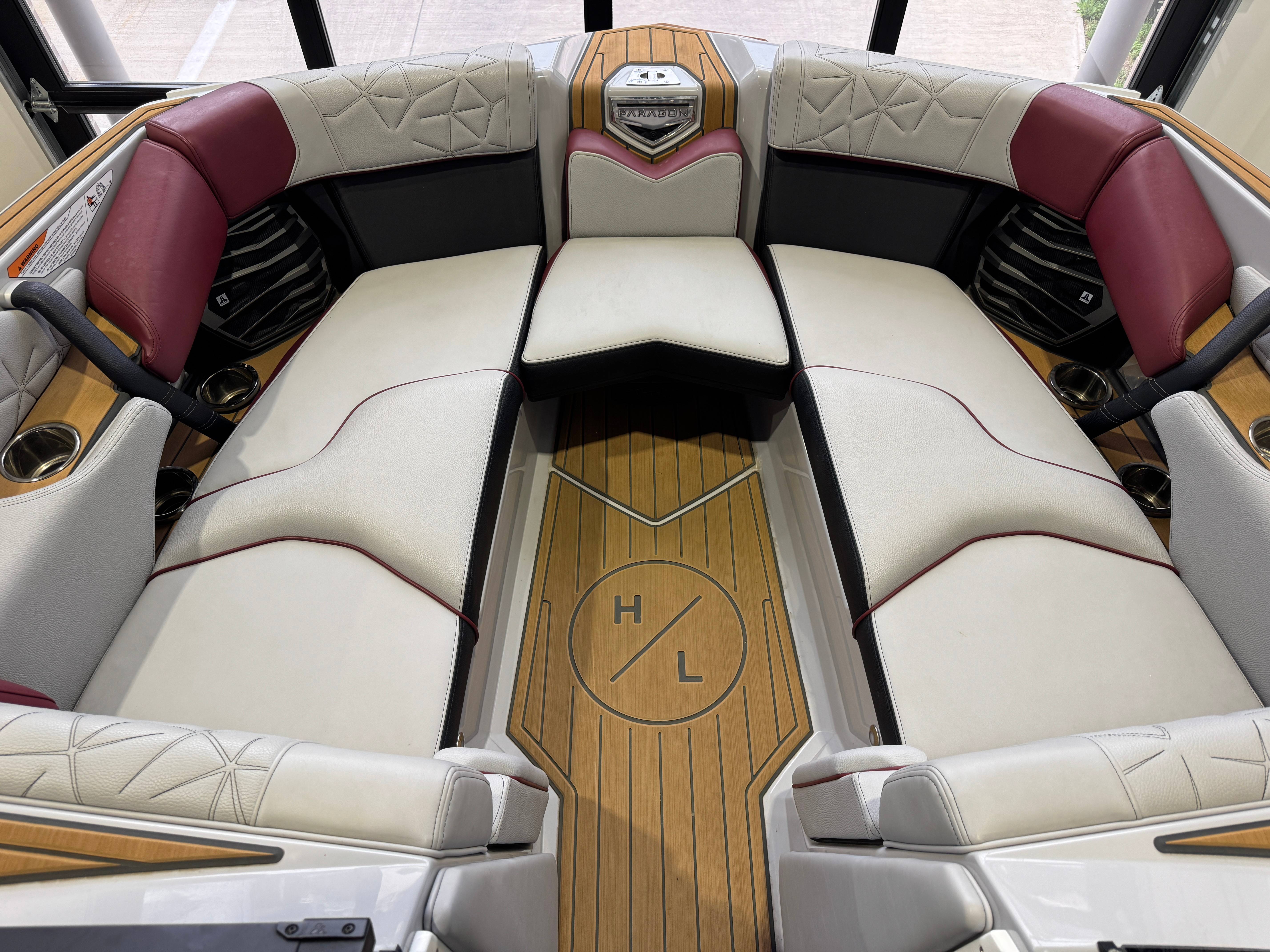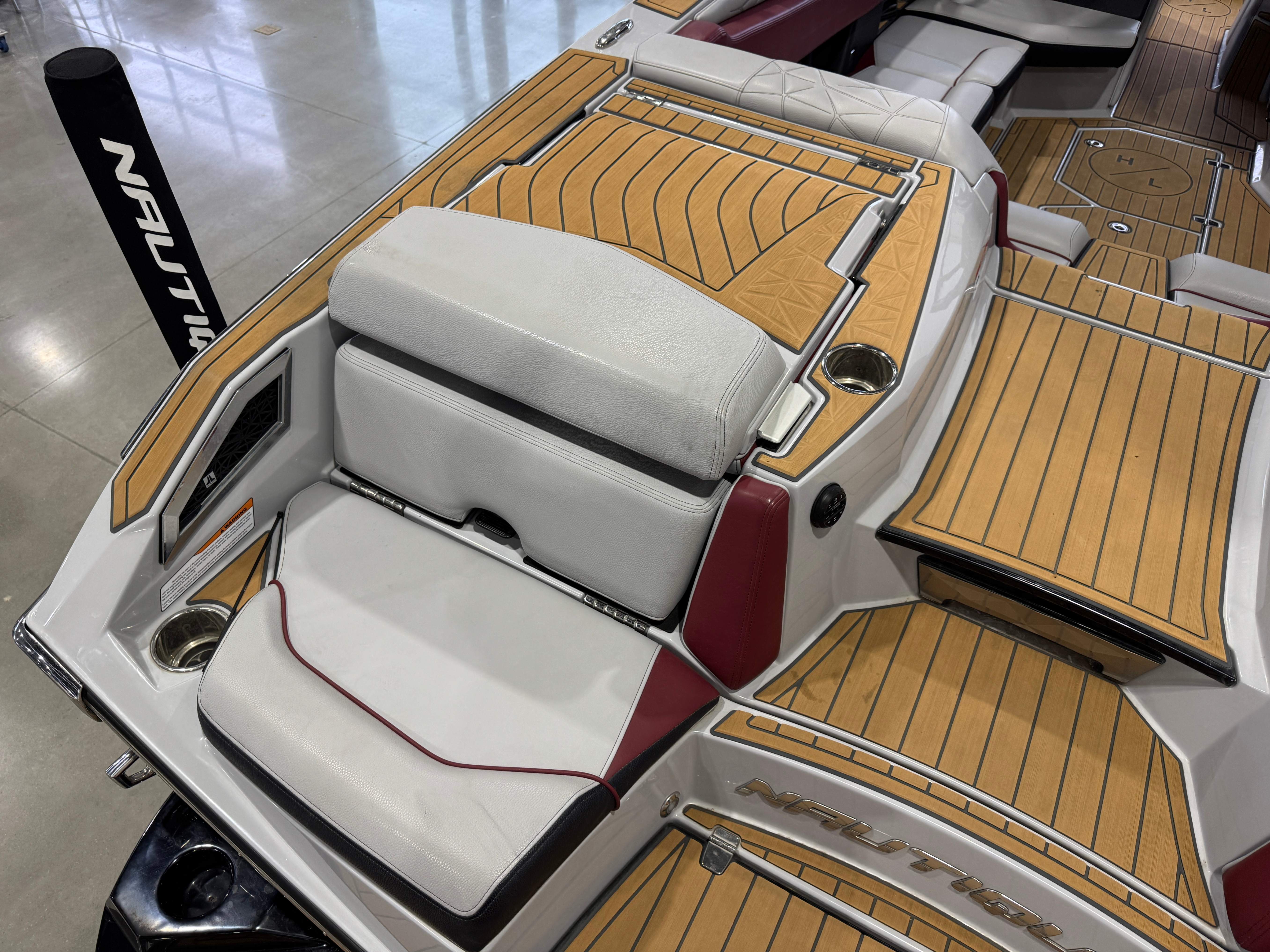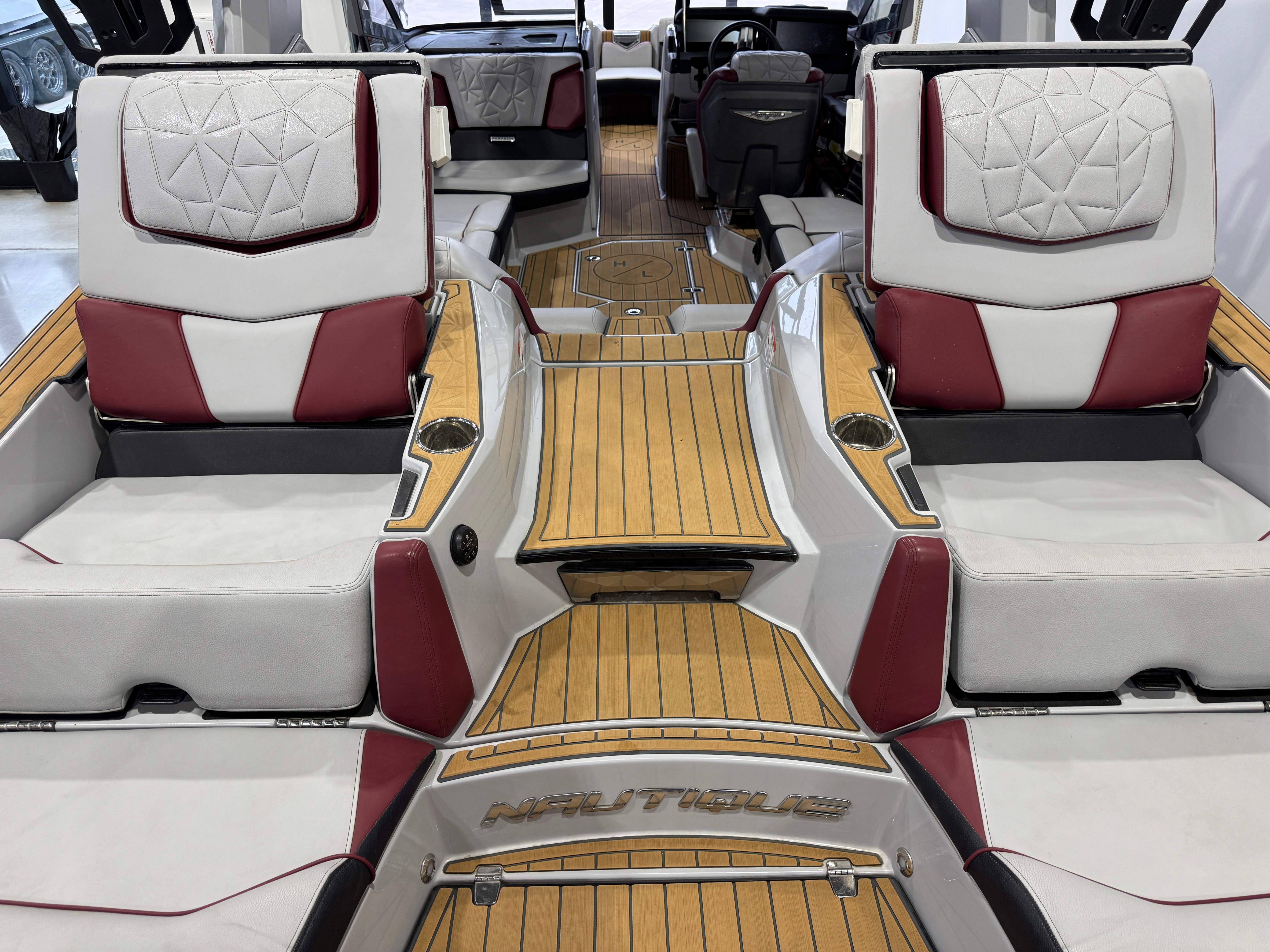 2023 Super Air Nautique Paragon 23 ZZ8 600HP - 6.2L Supercharged/Direct Injection Paragon Cover-Towable/Mooring(Tower Down) w/Platform Cover Maps US-Canada System Battery Maintenance System 110 (3 AGM Batteries) Ballast - Supplemental Fire Extinguisher - Automatic Heater with Defroster LINC Panoray - Navionics Maps Nautique Integrated Steering Assist Surf Select with Surf Switch Seating - Heated Driver's and Loveseat Stereo - JL Audio Wake Sub 2023 Super Air Nautique Paragon 23 Standard Items Listed Below Nautique Configurable Running Surface with Hydro-Plate Nautique Dual LINC PANORAY with Helm Control, Zero Off, MyNautique™ Connectivity Platform Wireless Charging Nautique Surf System™ with WAVEPLATE & Surf Pipe Exhaust & Integrated Ballast (2,200 lbs) Paragon Telescoping Flight Control Tower System including: Nautique Awareness Camera, Strapless Board Racks, Bimini Top with Surf Pockets Stereo - JL Audio® M6 Series Studio Elite with WavefrontTM (Includes: Wavefront™, Dual Subwoofers (12"), Monoblock Subwoofer Amplifier) Tower Speakers - Dual Speaker Housing, JL Audio® M6 Series 880x Speakers (4) Stereo - Transom Mounted Remote Control Enhanced Courtesy Lighting Package (Customized Colors on Illuminated Cupholders, Courtesy Lights and Interior Chromax Badging) LED Lighting - Navigation and Docking Light Array; Courtesy Lights; Underwater Lights Power Management Including 3 AGM Batteries, with Battery Charger Coolers (Removable In-Floor and Transom),Waste Receptacle Freshwater Engine Flush System Tandem Spoke Leather Steering Wheel Sliding Reversible Stern Seat, Flip-Up Lounge Seat (Port) and Convertible Transom Seating Seating - Bow Armrests (Retractable) GoPro™ Ready Rotating Tow Point Walk-Thru Air-Dam (Pocket Door) Ladder - Platform Access Cleats (4) Premium Mirror