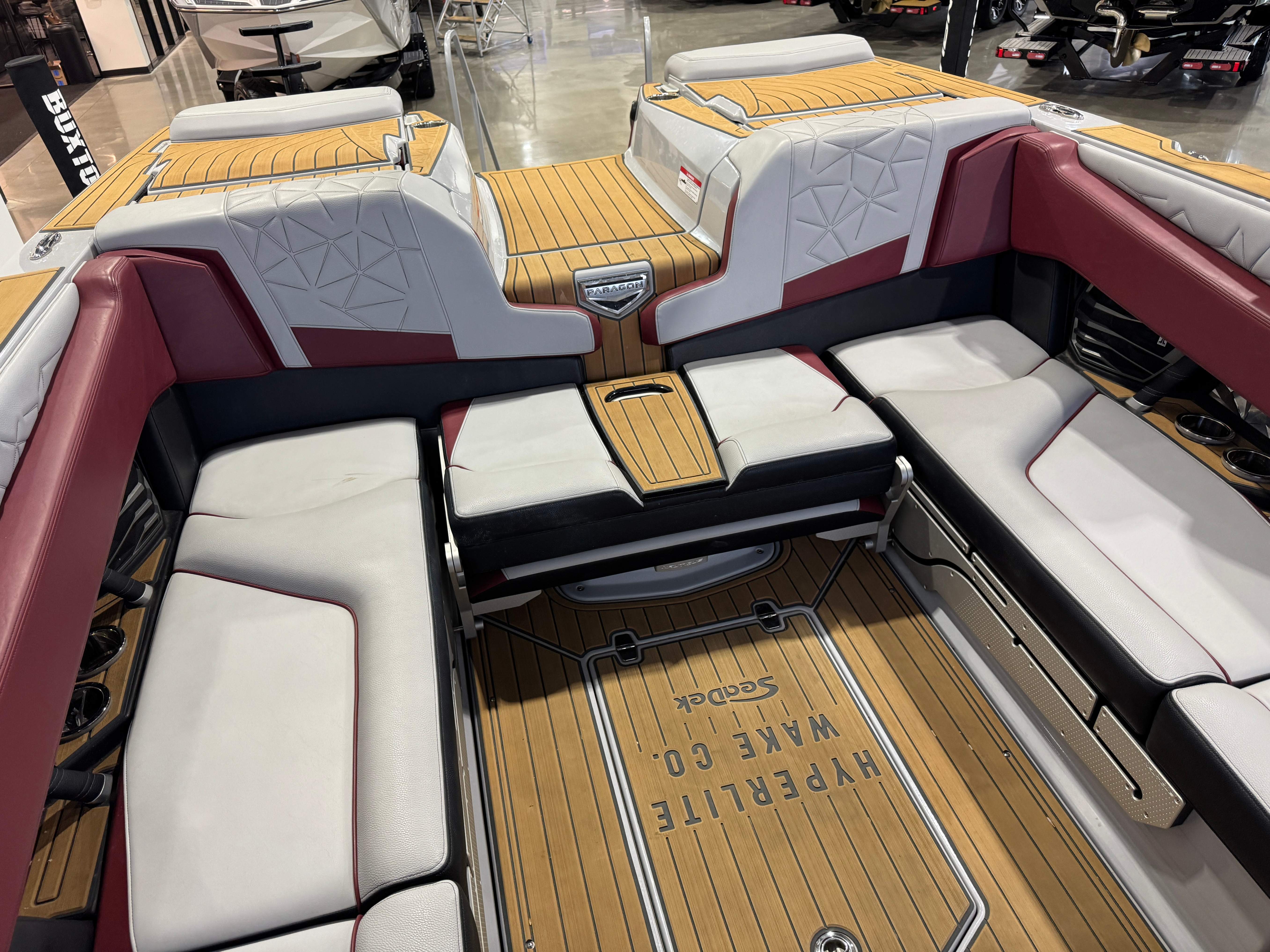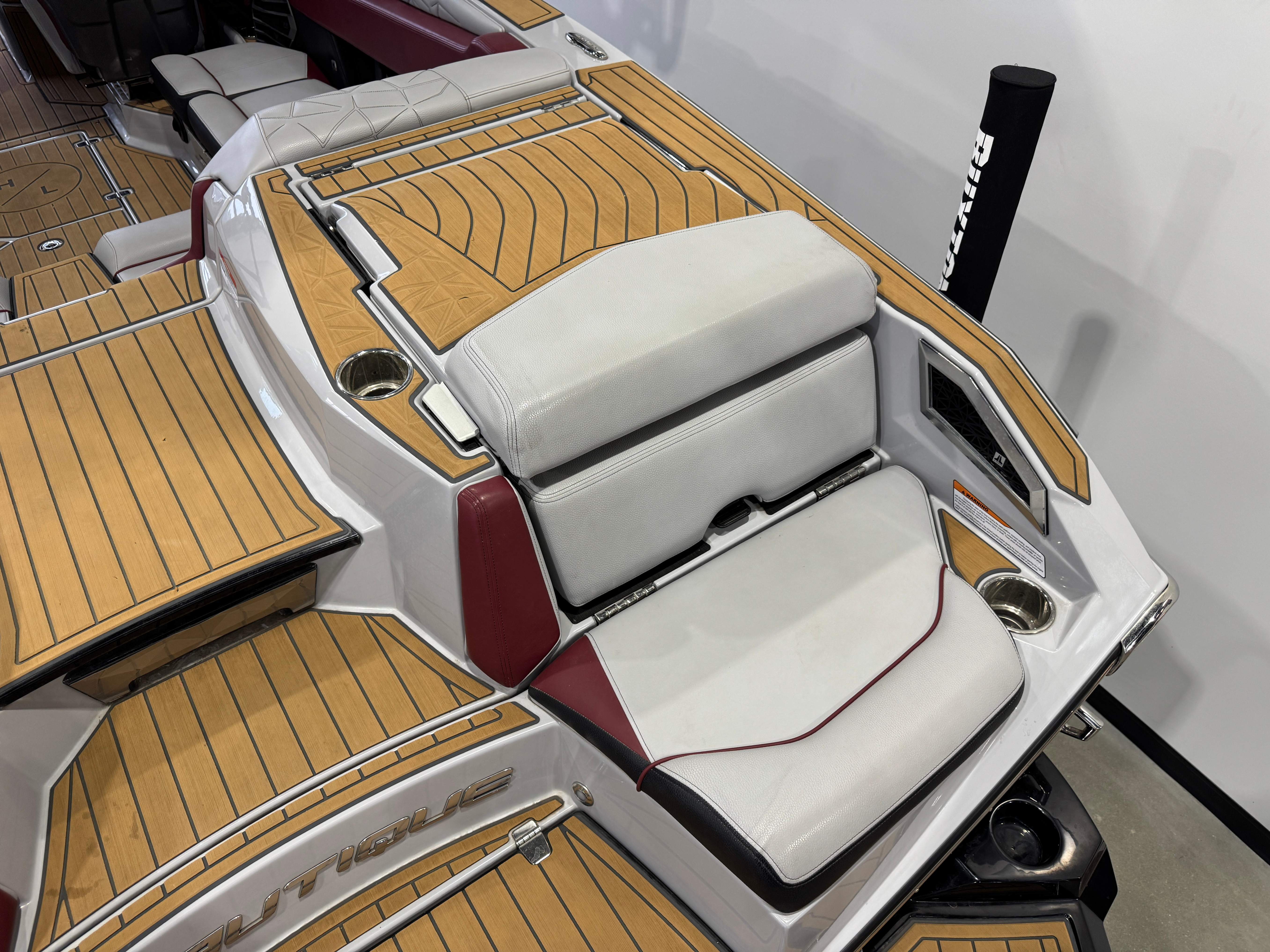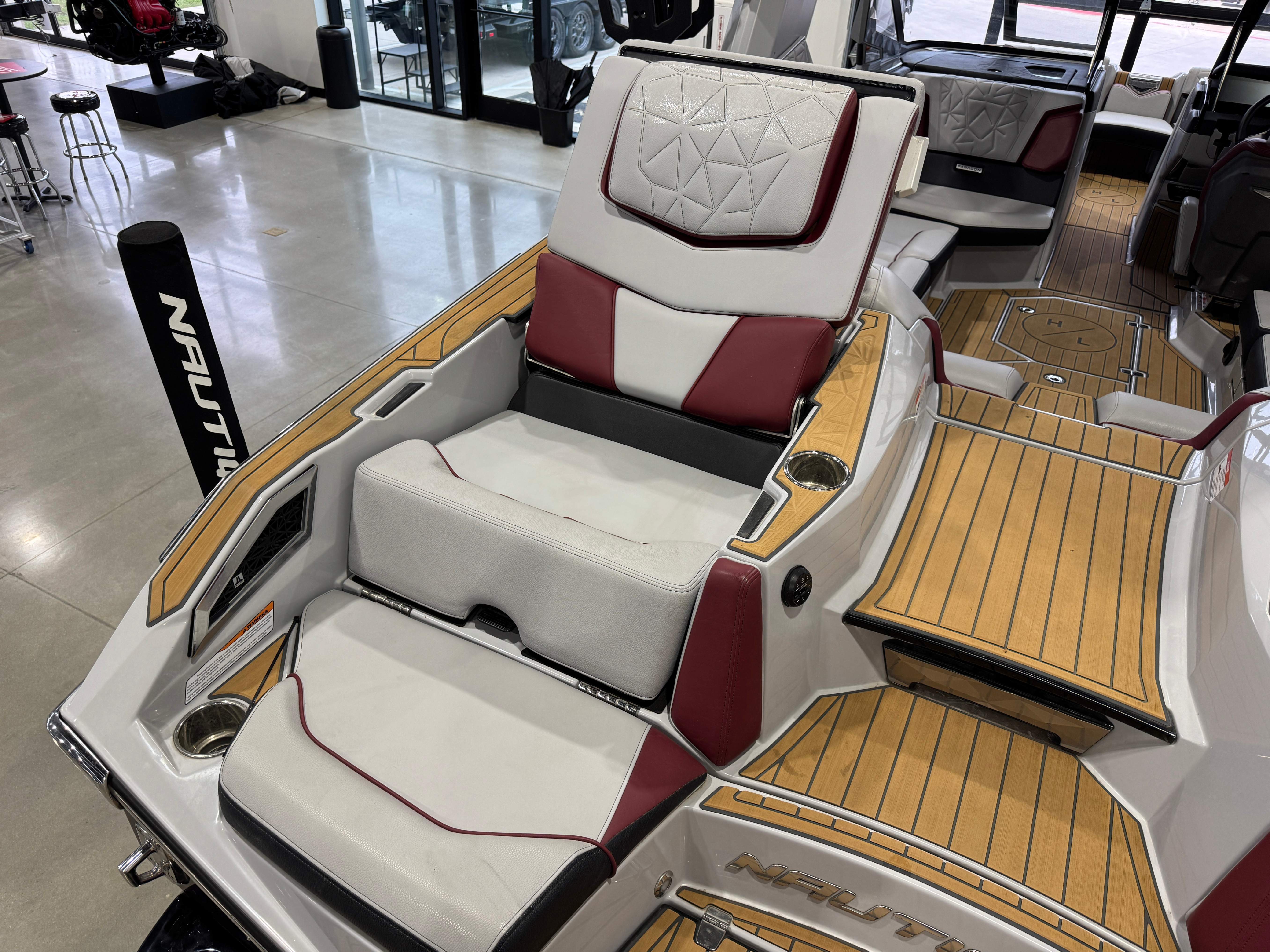 2023 Super Air Nautique Paragon 23 ZZ8 600HP - 6.2L Supercharged/Direct Injection Paragon Cover-Towable/Mooring(Tower Down) w/Platform Cover Maps US-Canada System Battery Maintenance System 110 (3 AGM Batteries) Ballast - Supplemental Fire Extinguisher - Automatic Heater with Defroster LINC Panoray - Navionics Maps Nautique Integrated Steering Assist Surf Select with Surf Switch Seating - Heated Driver's and Loveseat Stereo - JL Audio Wake Sub 2023 Super Air Nautique Paragon 23 Standard Items Listed Below Nautique Configurable Running Surface with Hydro-Plate Nautique Dual LINC PANORAY with Helm Control, Zero Off, MyNautique™ Connectivity Platform Wireless Charging Nautique Surf System™ with WAVEPLATE & Surf Pipe Exhaust & Integrated Ballast (2,200 lbs) Paragon Telescoping Flight Control Tower System including: Nautique Awareness Camera, Strapless Board Racks, Bimini Top with Surf Pockets Stereo - JL Audio® M6 Series Studio Elite with WavefrontTM (Includes: Wavefront™, Dual Subwoofers (12"), Monoblock Subwoofer Amplifier) Tower Speakers - Dual Speaker Housing, JL Audio® M6 Series 880x Speakers (4) Stereo - Transom Mounted Remote Control Enhanced Courtesy Lighting Package (Customized Colors on Illuminated Cupholders, Courtesy Lights and Interior Chromax Badging) LED Lighting - Navigation and Docking Light Array; Courtesy Lights; Underwater Lights Power Management Including 3 AGM Batteries, with Battery Charger Coolers (Removable In-Floor and Transom),Waste Receptacle Freshwater Engine Flush System Tandem Spoke Leather Steering Wheel Sliding Reversible Stern Seat, Flip-Up Lounge Seat (Port) and Convertible Transom Seating Seating - Bow Armrests (Retractable) GoPro™ Ready Rotating Tow Point Walk-Thru Air-Dam (Pocket Door) Ladder - Platform Access Cleats (4) Premium Mirror