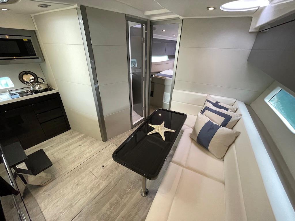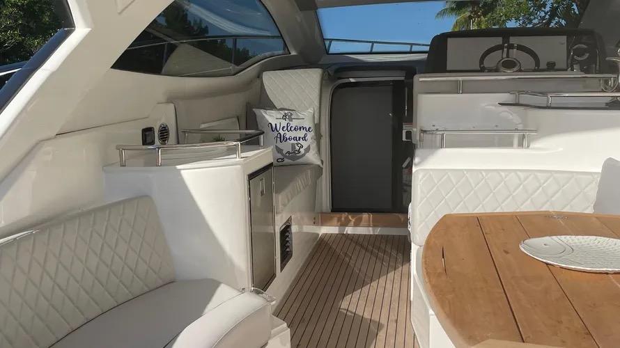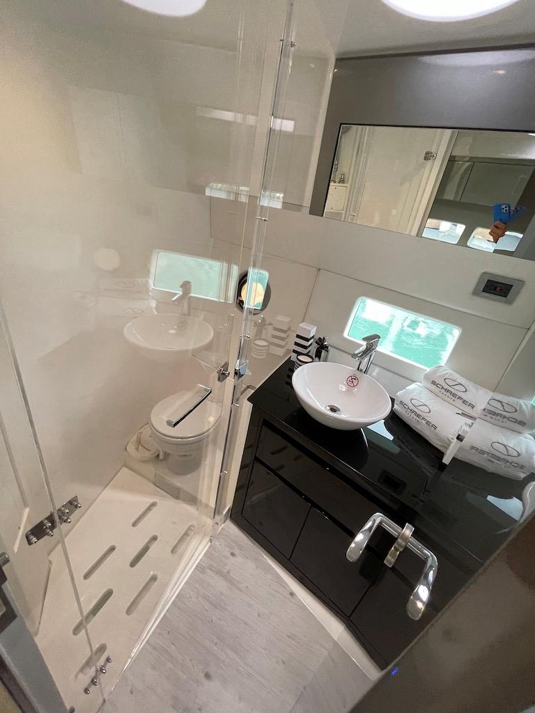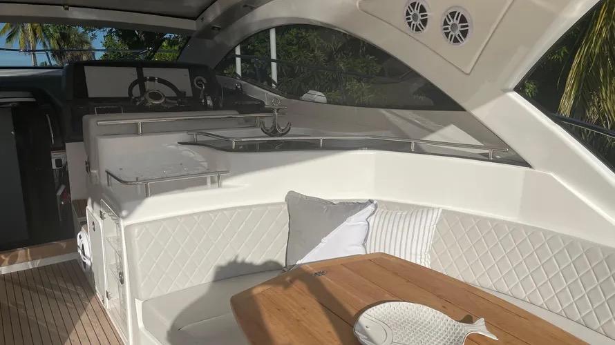 The Schaefer 400 Sport features a distinctive design that commands attention, highlighted by its unique hardtop. The spacious deck is designed for maximum outdoor enjoyment, complete with a gourmet area ideal for entertaining. Inside, the yacht offers high ceilings and the exclusive luxury of two suites, ensuring unmatched comfort and elegance.