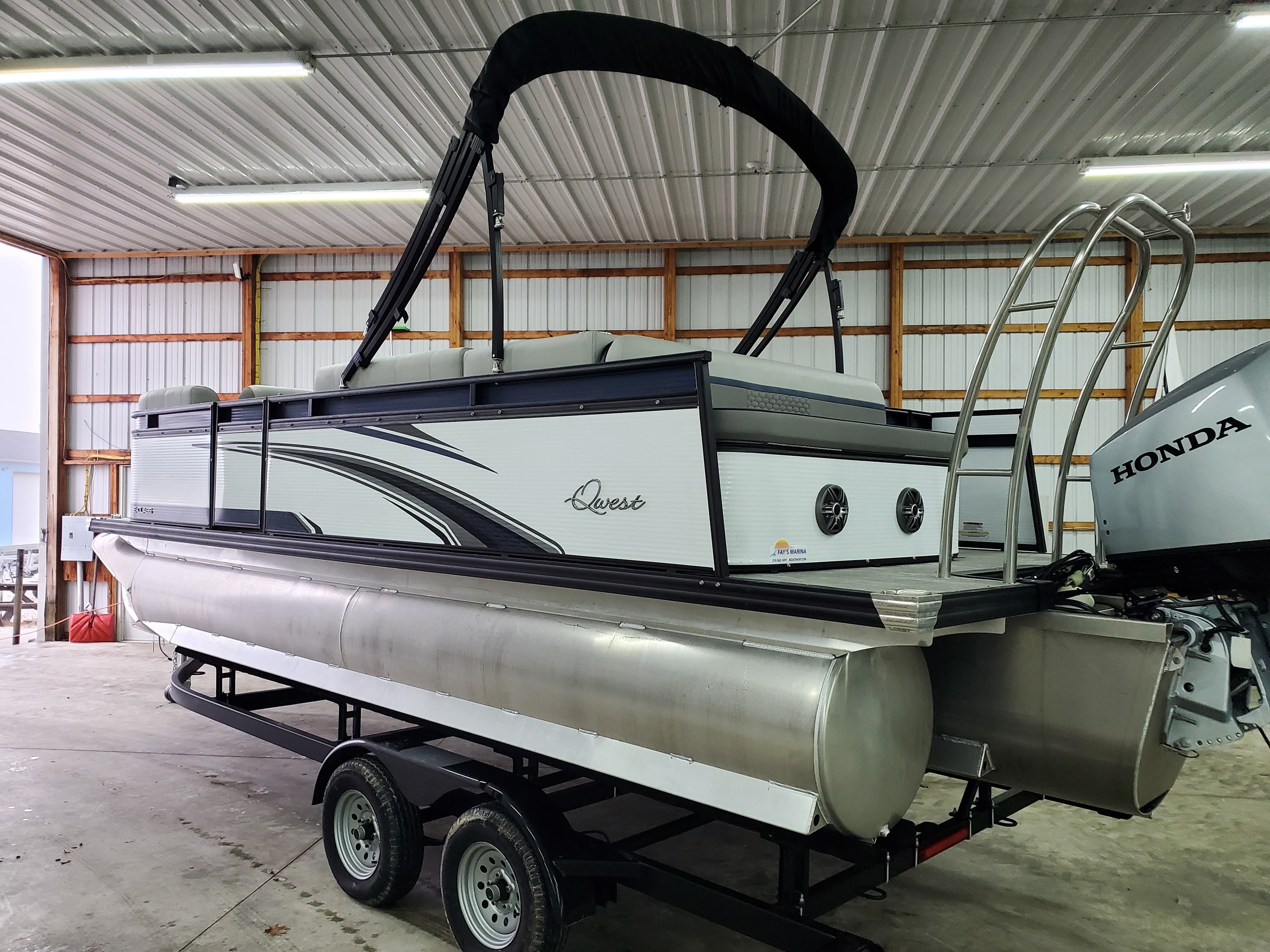 Immerse yourself in the experience of the new 2023 Qwest Pontoon 820 E-Series Lanai LTZ TT2 Tritoon with 150 Hp Honda Motor at Fay’s Marina in La Porte, Indiana.