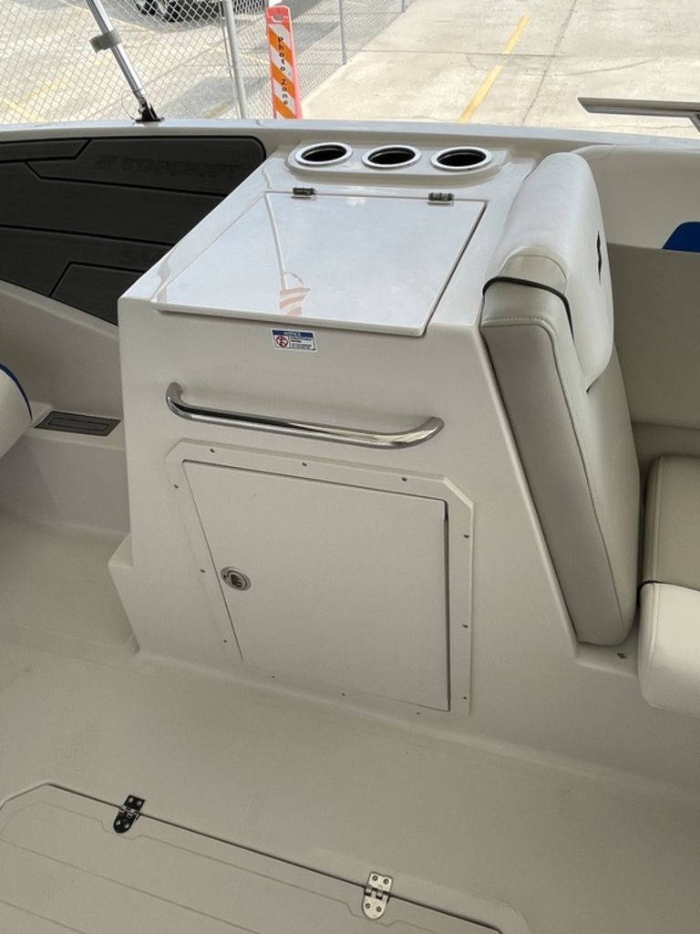 In the SVX 231 OB DH deck boat by Starcraft, there is something for everyone — whether you love cruising, fishing, watersports with the ski pylon or simply hanging out at the sand bar. When ready to cast your rods out for the daily catch, simply attach the 2 buckets seats at the bow or stern and turn your deck boat into a fishing vessel. This is a great deck boat with all of its amenities and at a great value.