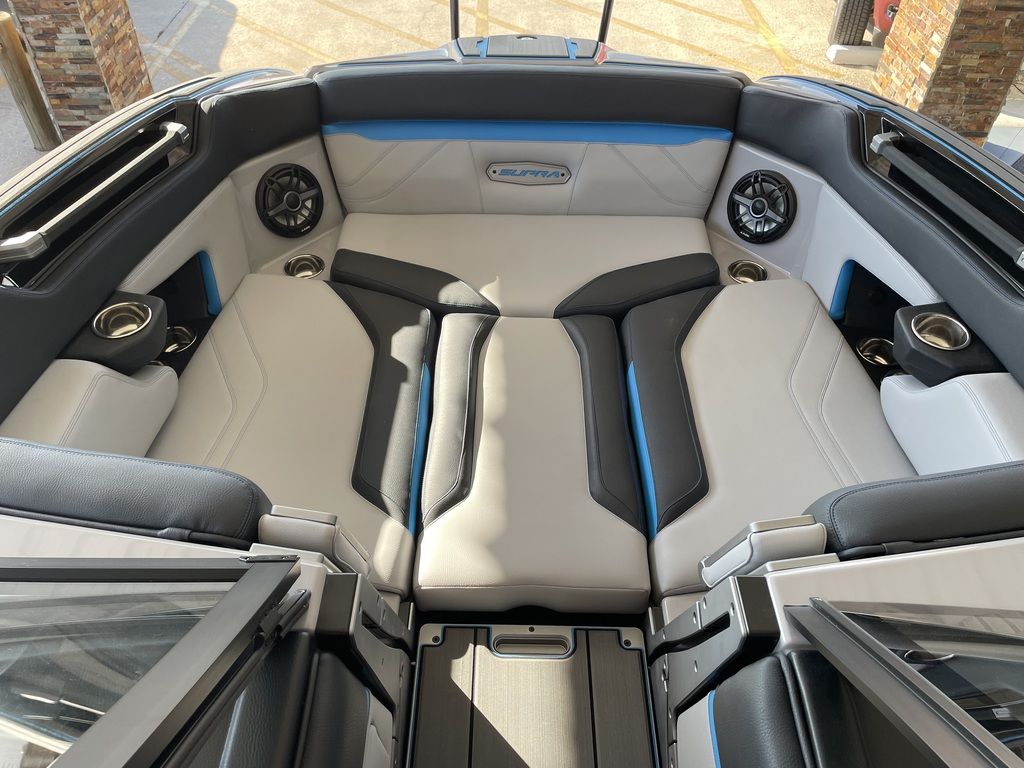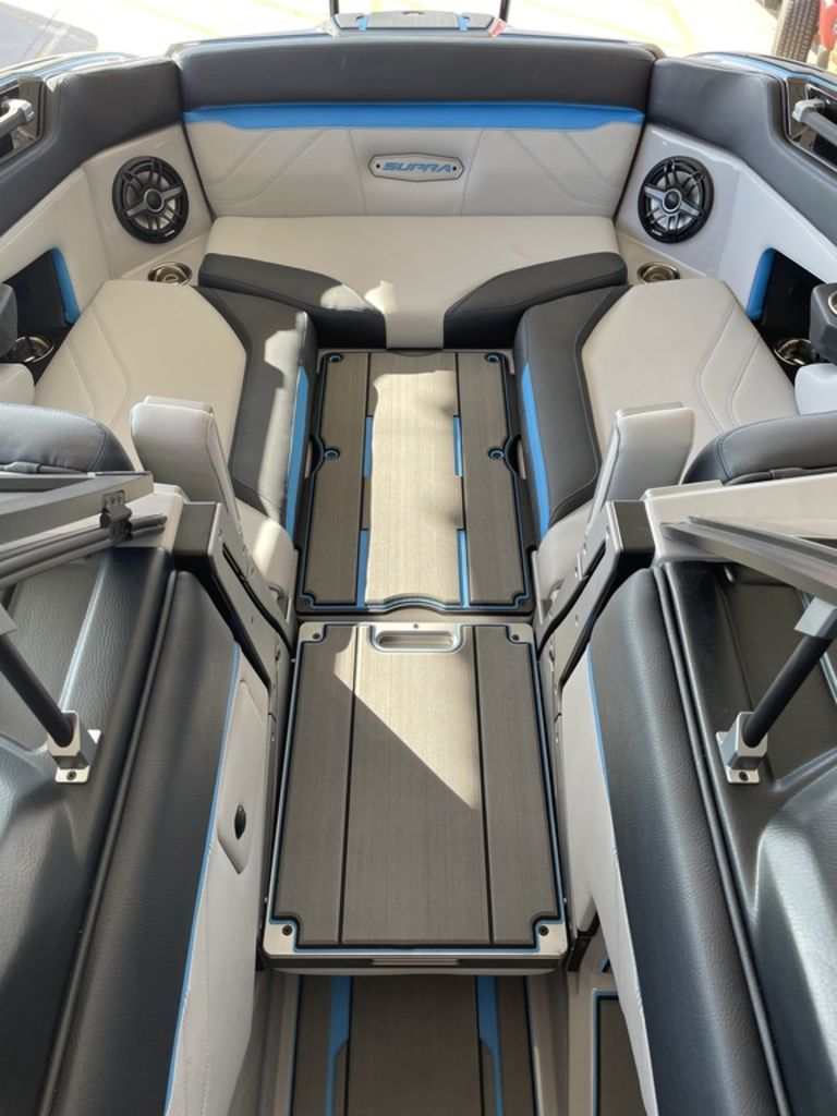 ENHANCED TECHNOLOGYPower up and stay charged with Supra’s attention to detail. From wireless phone charging, bluetooth audio controls at the swim deck and passenger seat, RGB lighting, heated and powered seats to our FxONE Power Folding Tower that comes standard, your SE will keep every function of you boat at your fingertips. Simplistic design centered around high end technology will elevate your boating experience beyond your expectations.