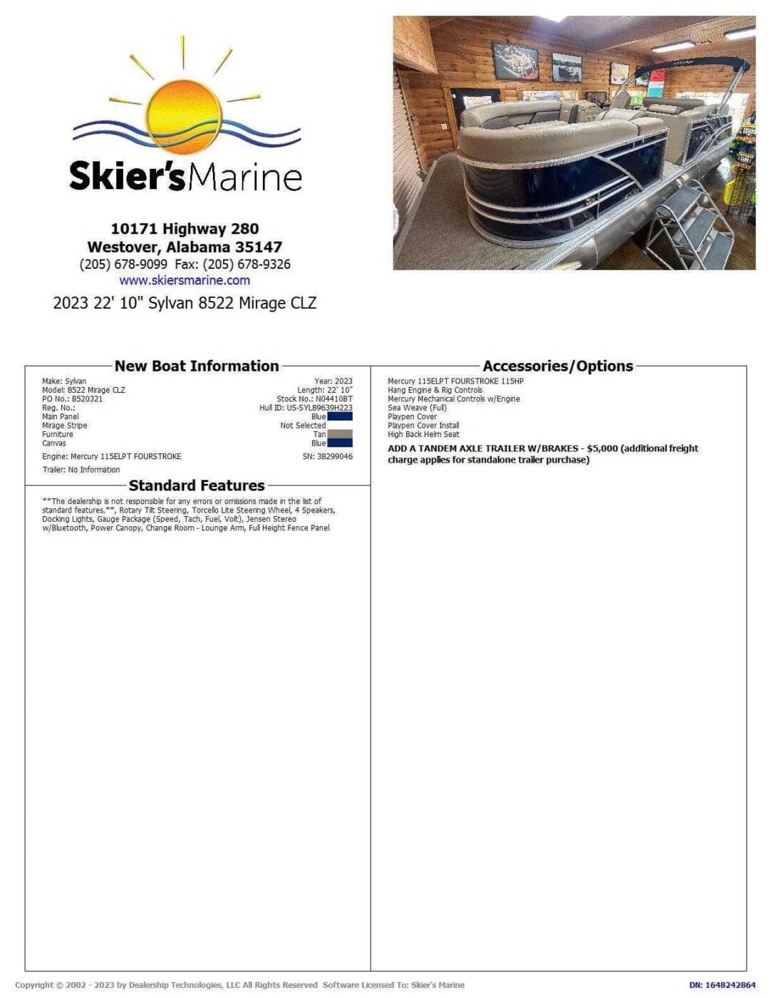 2023 Sylvan 8522 Mirage CLZ (New) #N04410BT