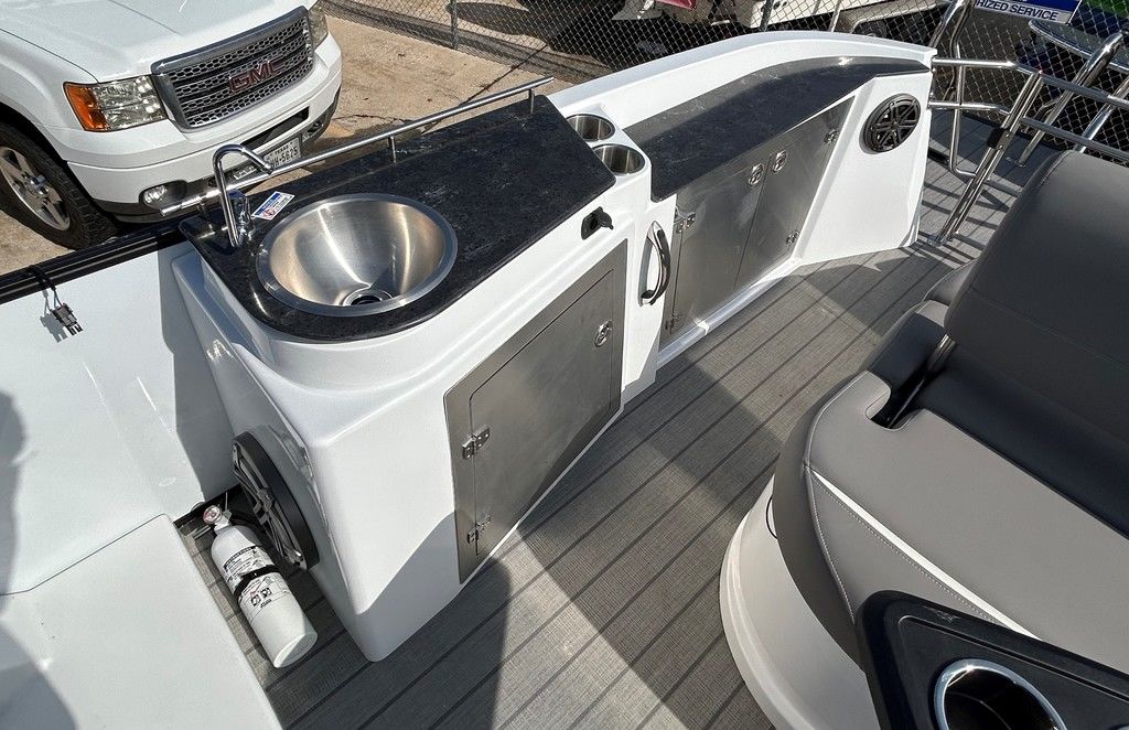 The S5 CLZ DC has a full load of premium amenities like concealed mood lighting, a Kicker KMC10 stereo with Bluetooth streaming, a full 10' bimini top and an extended rear swim platform. What seperates this model from the rest is the flip back seating which makes it easy to customize your layout. Increase your pontoon performance with the SPX performance package that offers a third tube with lifting strakes or Sylvan's patented RPT Performance package, the fastest two tube design in the industry.