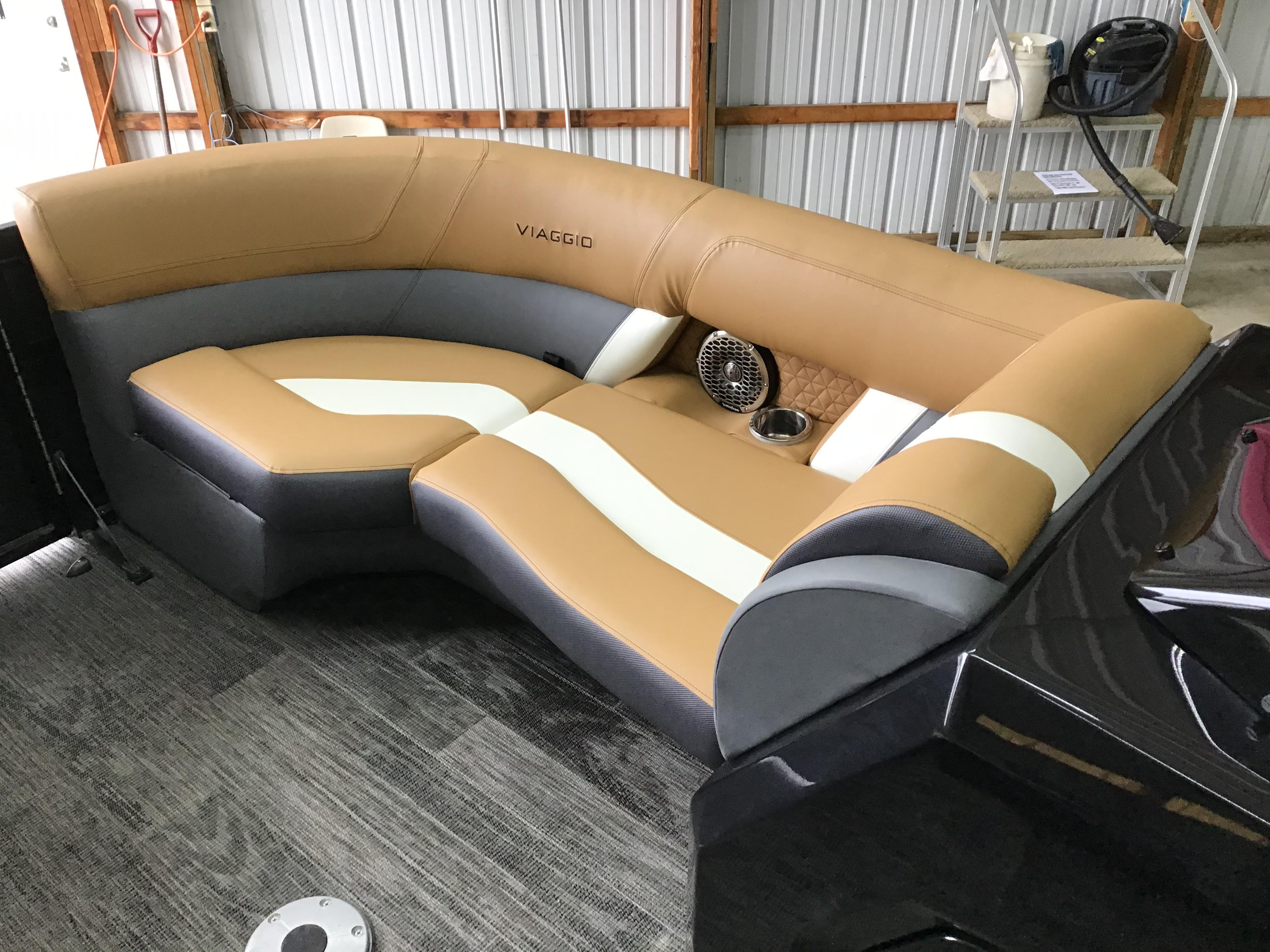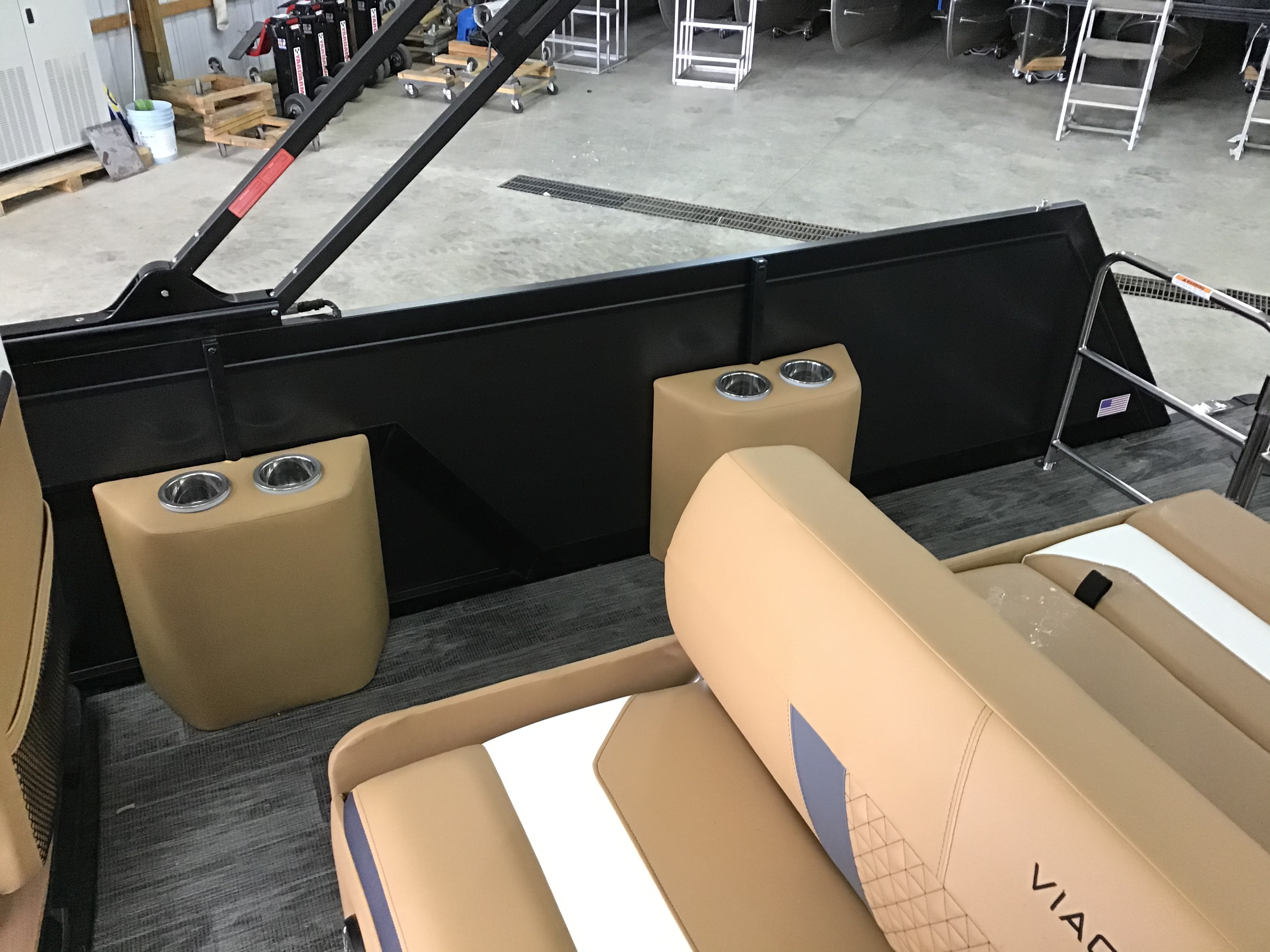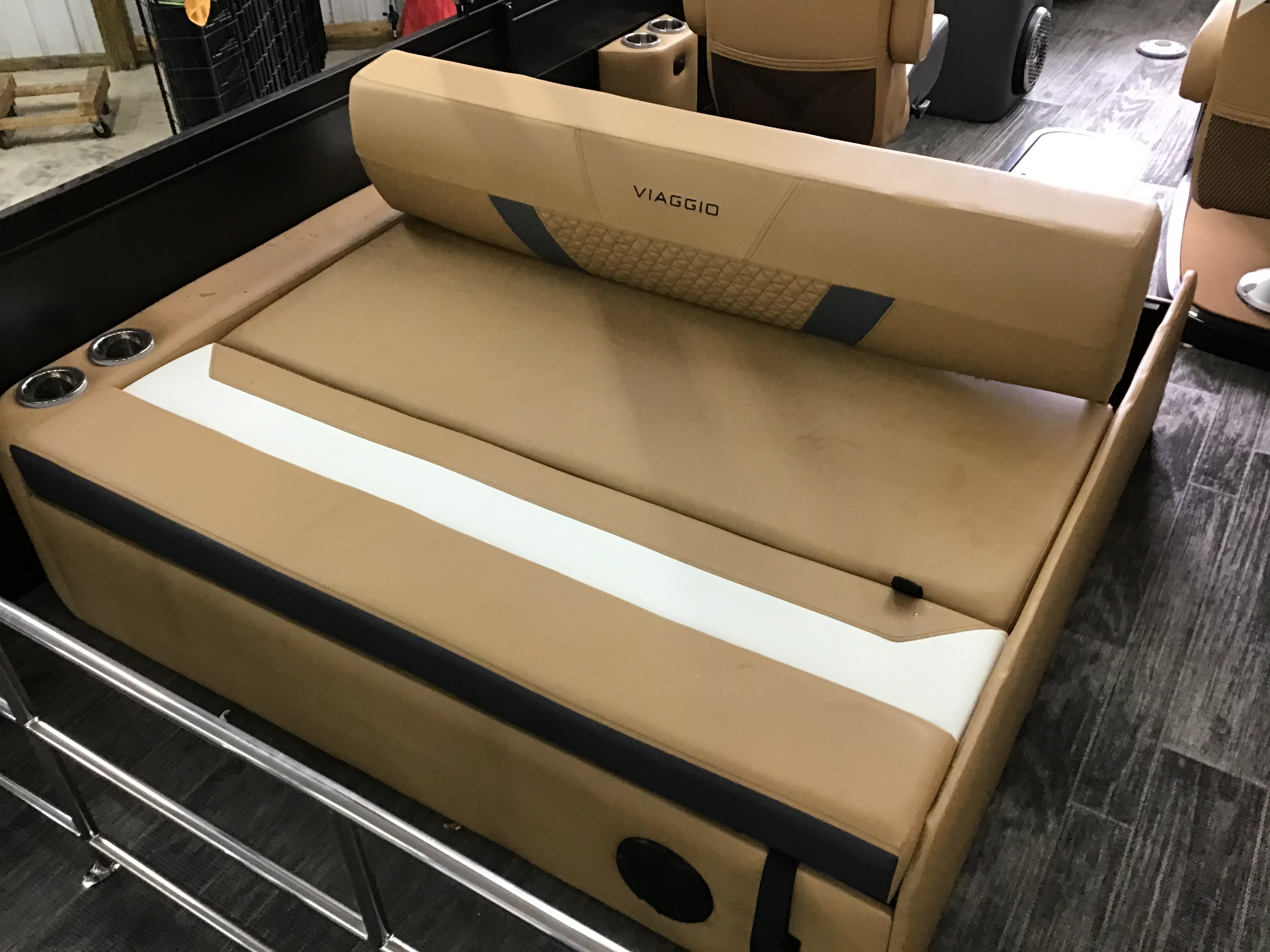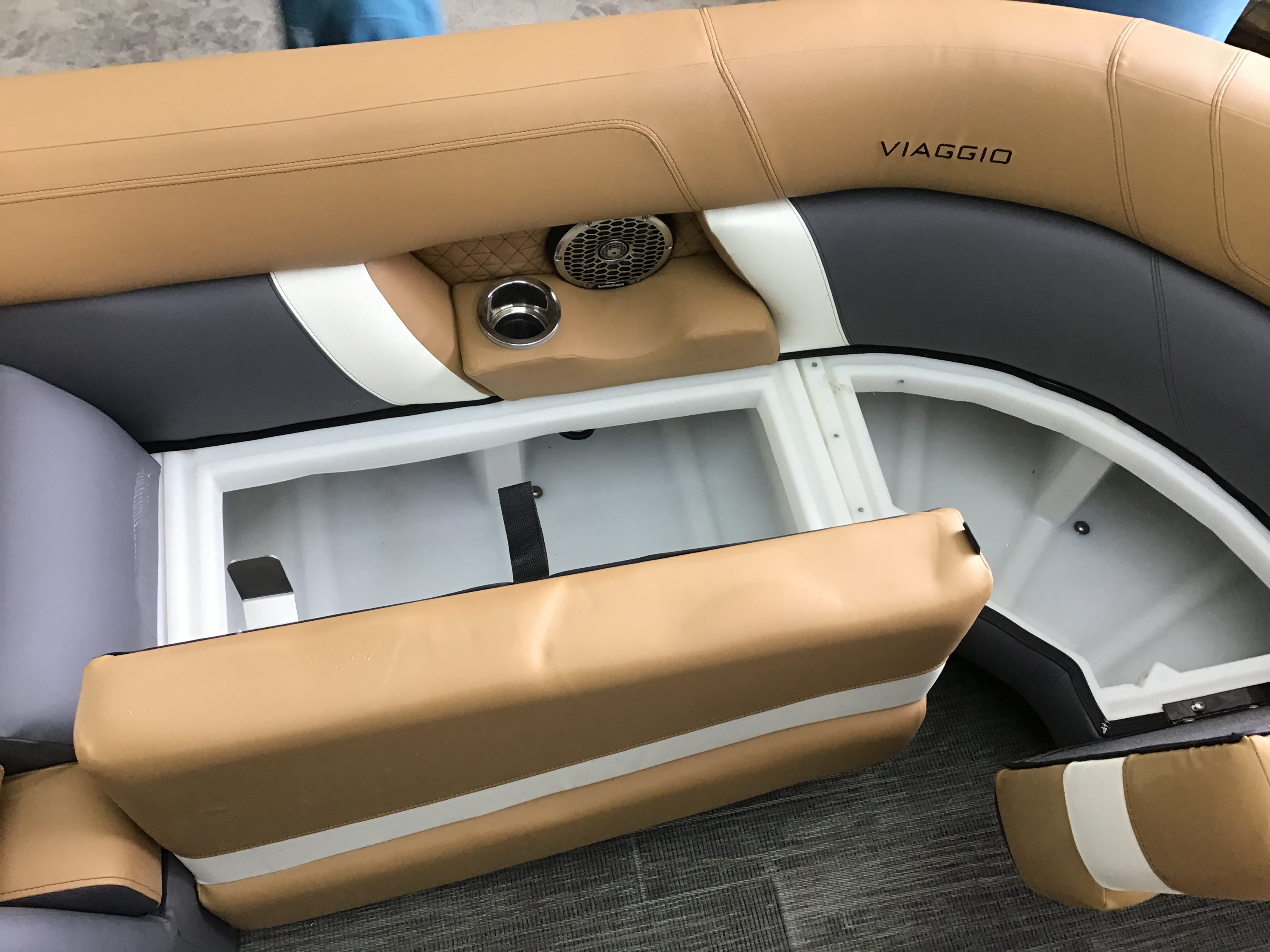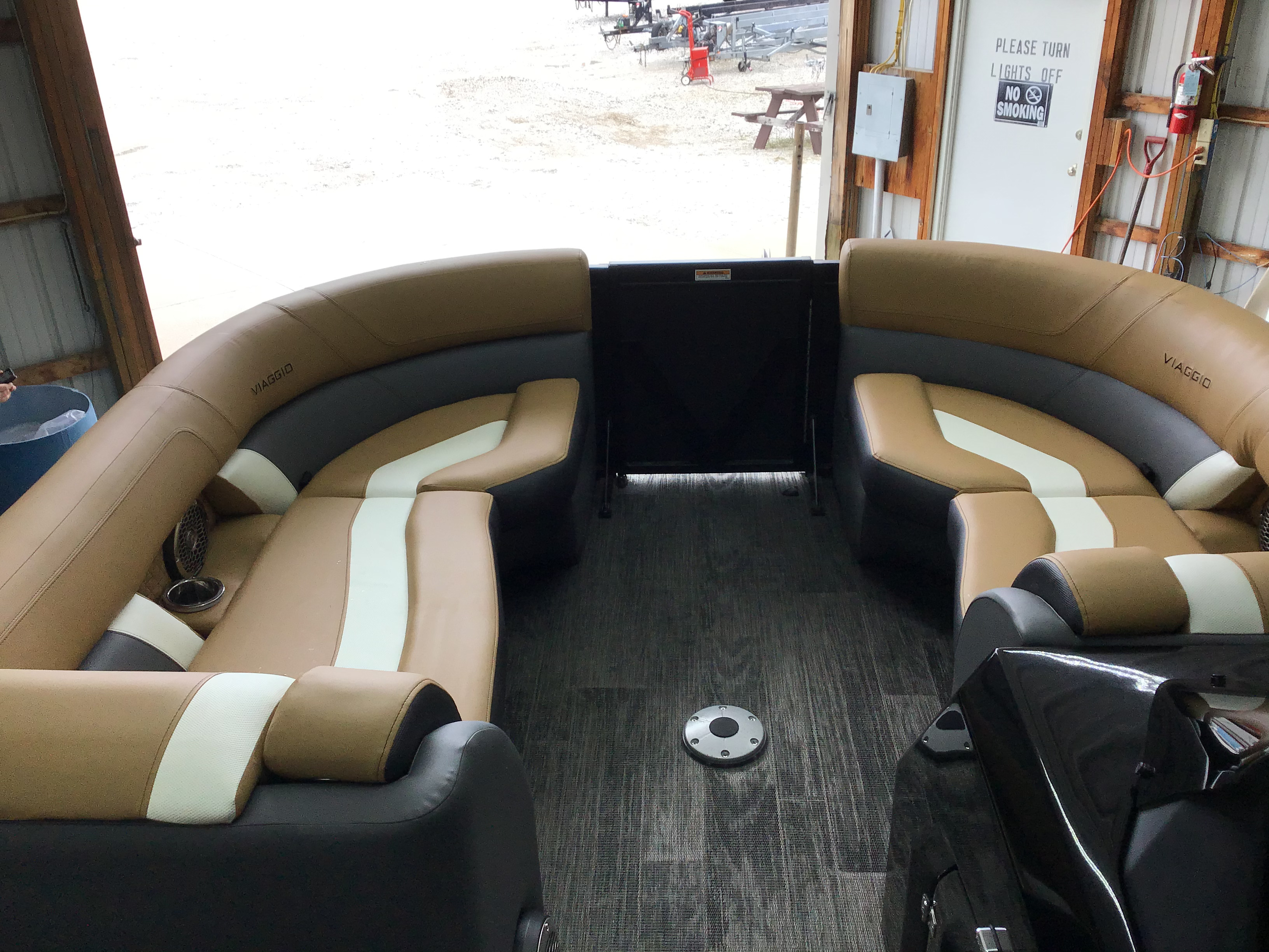 New 2023 Viaggio Diamante S 23 Tritoon with Full Platinum Package, Power Bimini and BF250 hp Honda, available now at Fay’s Marina in La Porte, Indiana