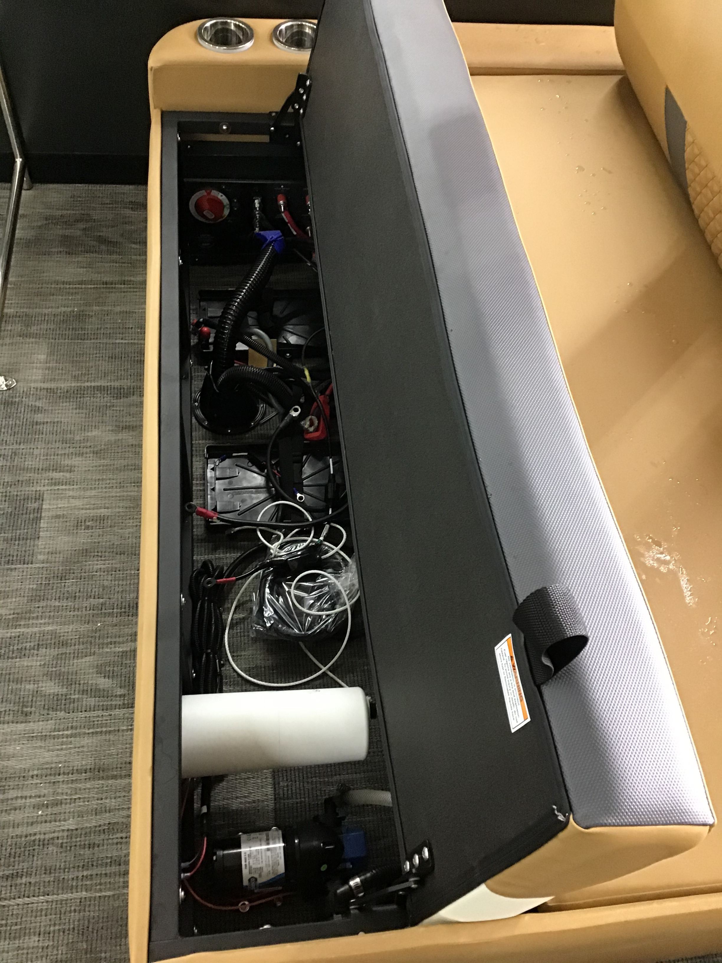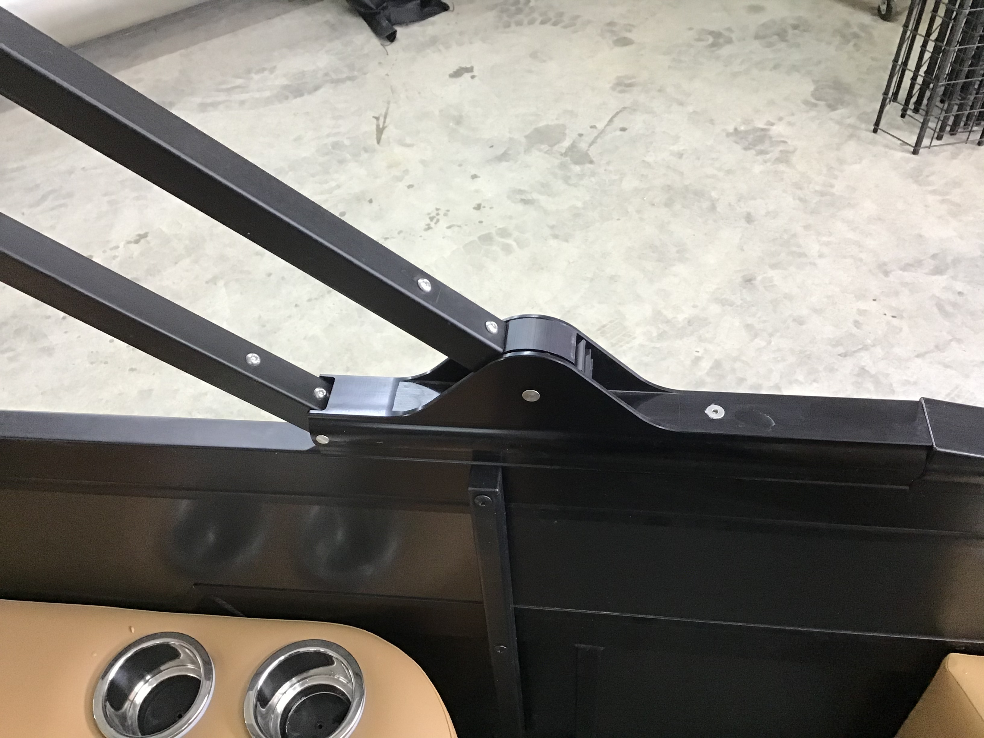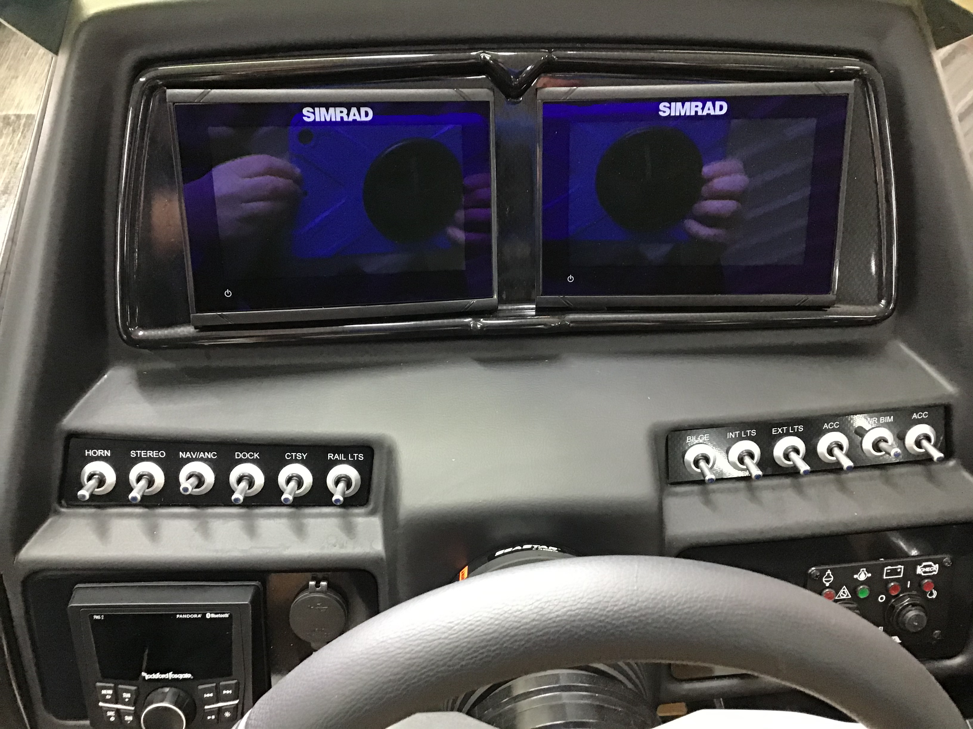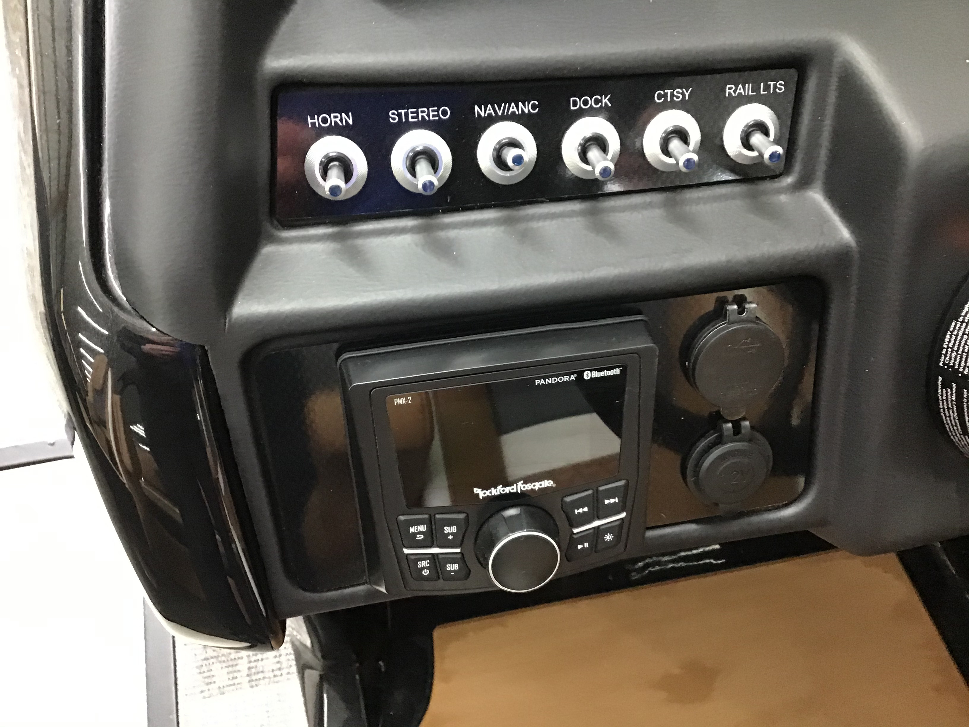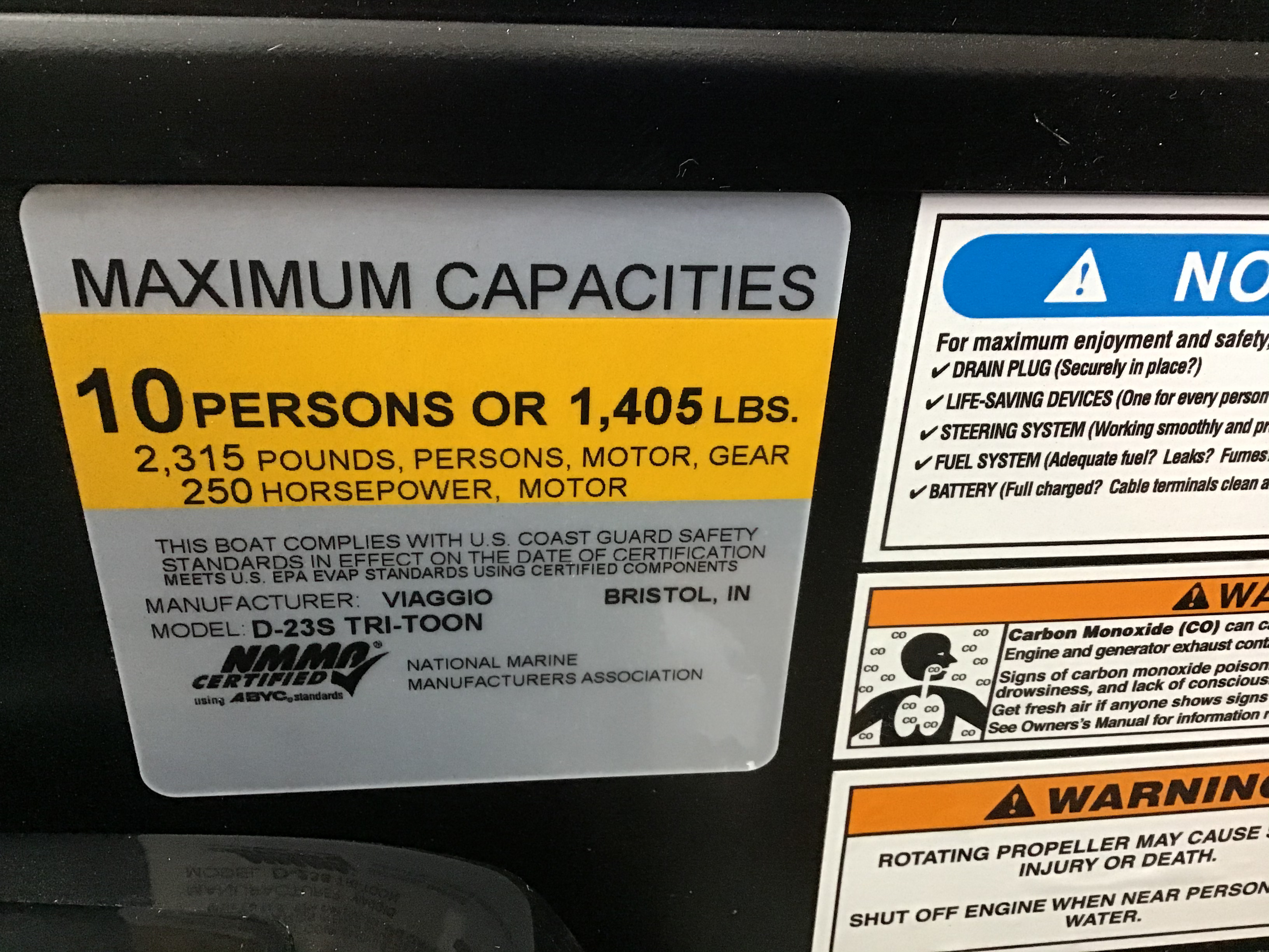 New 2023 Viaggio Diamante S 23 Tritoon with Full Platinum Package, Power Bimini and BF250 hp Honda, available now at Fay’s Marina in La Porte, Indiana