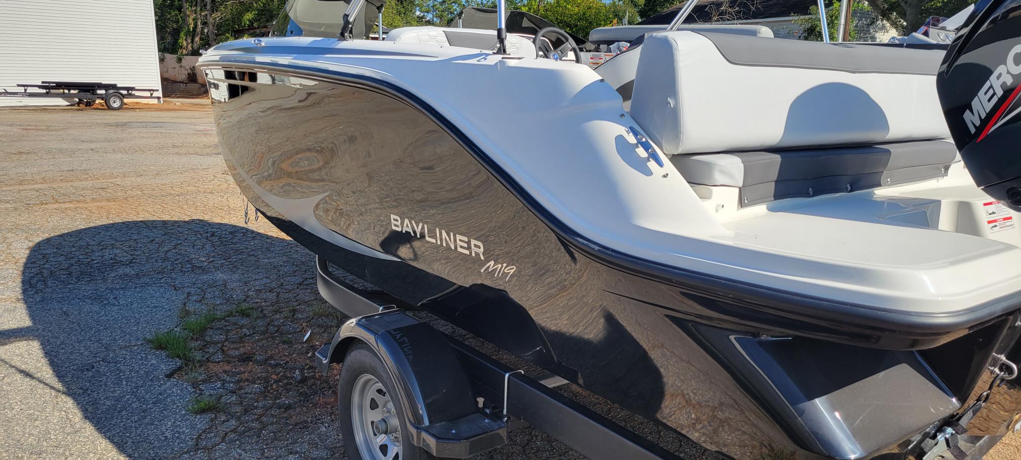 This New 2024 Bayliner Element M19 powered by Mercury 115HP motor. This boat has all the standard features of the Element series for 2024 along with added options of the MX Package ( Bimini with Boot, Auto Bilge Pump, Waterproof AM/FM Stereo, Snap On Bow Well and Cockpit Cover, Ski Tow Pylon) and dual windscreen, all sitting on a matching bunk trailer. This Bayliner M19 is a great option for the first time boat buyer looking for the best value and the peace of mind a new boat with a warranty provides. This boat has been steeply discounted! Stop in and see it before it is gone! For the latest in pricing and incentives, give us a call at Eclipse Marine Seneca (864) 670-2250 or stop in and see us at 305 US Hwy 123 Seneca, SC. Max HP: 115 HP