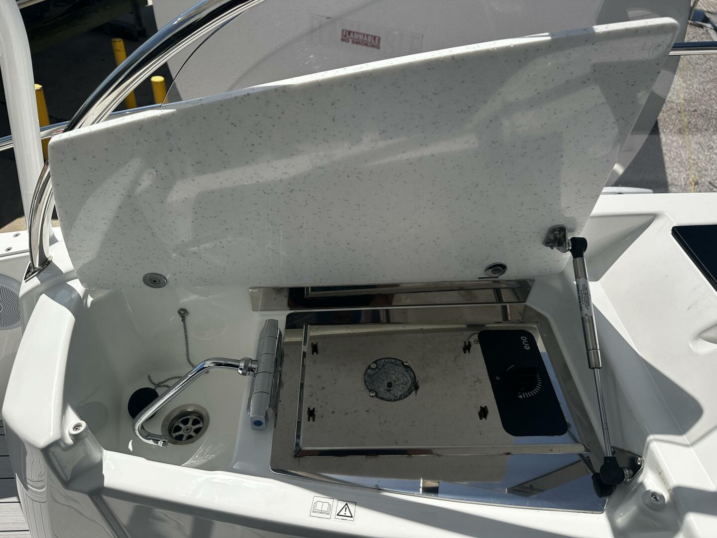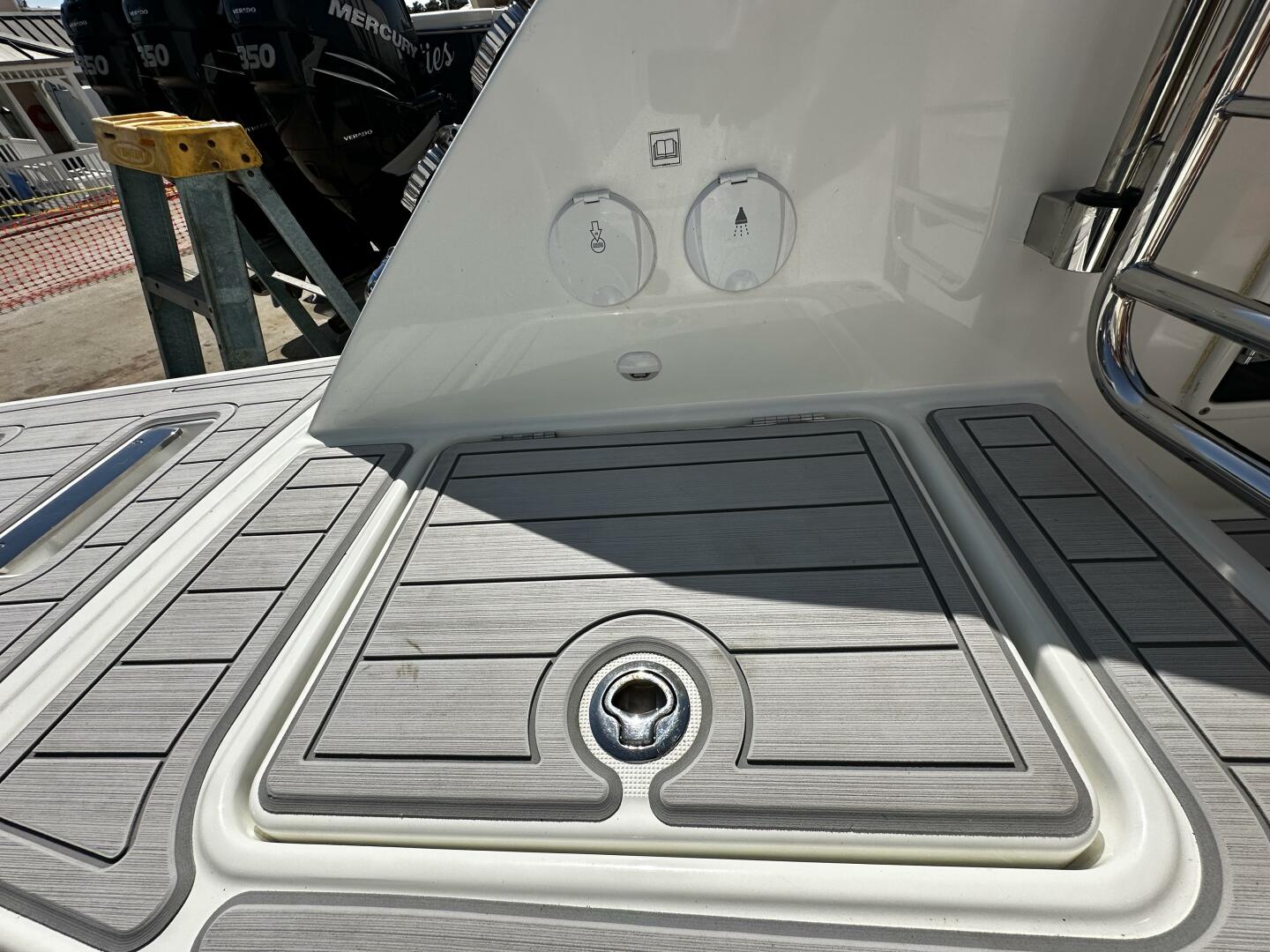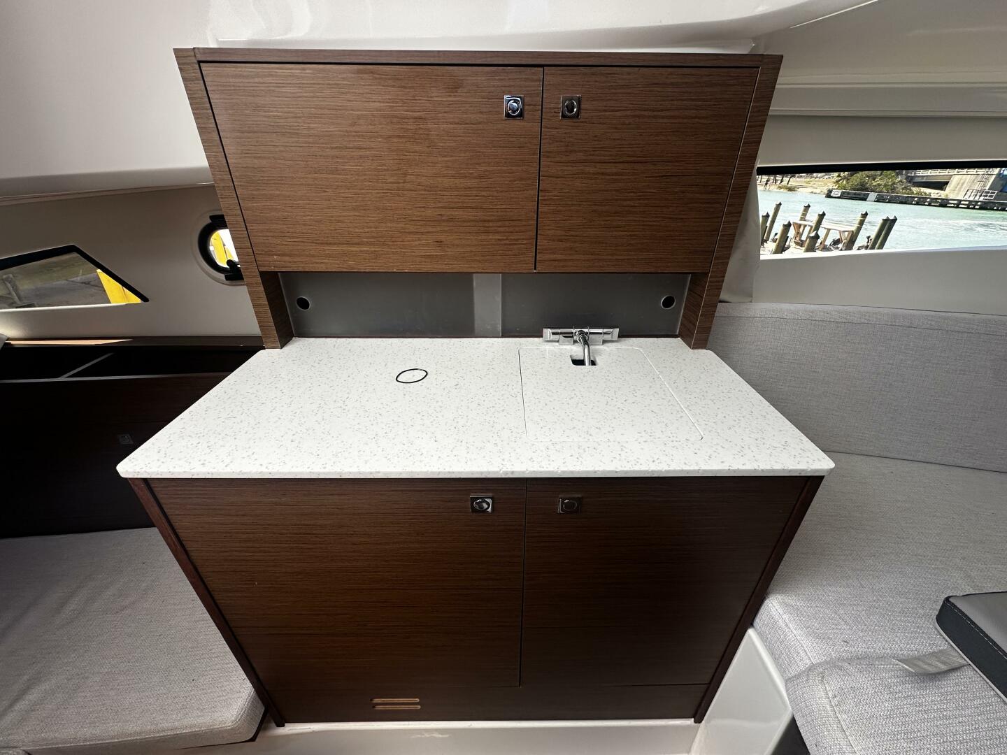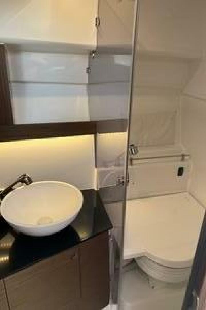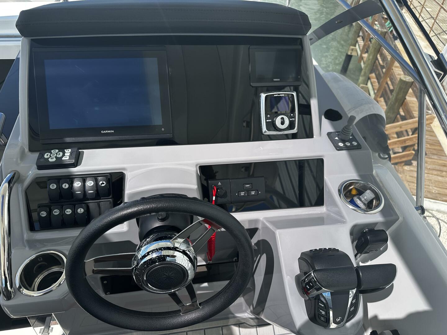This vessel is like new!The Leader 9.0 revisits the concept of the 8.5, a sporty boat with a family-friendly spirit, which has been a great success. With her pure, streamlined design inspired by the Leader 10.5, her look is decidedly on-trend.Her traditional V-shaped hull was designed by Michaël Peters. Stable and powerful, her hull ensures excellent seakeeping and very secure handling at sea for family cruising or sporty outings. The layout and organization of the Leader 9.0 make her the ideal boat for day trips or weekend cruises. On the exterior, the vast cockpit benefits from a helm station with seating for two, a portside galley, and numerous storage options. On the interior, the Leader 9.0 will delight all those who appreciate full comfort: she features a very large double berth, a salon that also converts into a double berth, a head compartment with separate shower, a breakfast nook and copious storage. Perfect for family cruising, this model also features long windows in the hull for an extremely bright interior. Loaded with alot of options, Digital Controls. Zip Wake Electric Trim Tabs. Bow Thruster. Electric Windlass w/ Mooring & Anchoring Kit. Deck Searchlight. Underwater Lighting. Teak Swim Platforms. Teak Flooring. Removable Carpet Set. Black T-Top w/ GRP Roof, Sliding Sunshade, Sunroof & LED Lighting. Ambiance Pkg. Premier Level Trim Pkg. TV Antenna. Comfort Pkg. 115V-60HZ. 110V A/C. Garmin Electronics Upgrade Pkg. Yamaha Digital Engine Monitoring Display. Premium Audio Pkg. Portside Folding Bench. Cockpit Fridge & Microwave. Portside Cockpit Galley w/ Fresh Water Sink & Gas Burner. Horn. Tilt Steering. Enclosed Head & Shower. Cockpit Shower. Deck Wash w/ Electric Pump. Direct Water Connect. Battery Charging System. XXL Front Sun pad w/ Lift Backrests. Aft Sundeck & Wood Table. Ski Mast. Interior Curtains.Current high and dry rack can be available at additional costs.