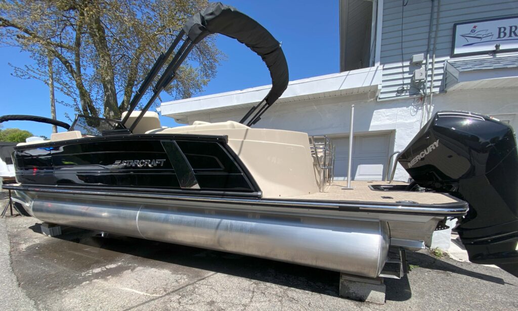 Luxury lives here. Starcraft Marine’s new flagship pontoon boat series, this RX 23 Q DC, is all about pampering you and your family with its plush tan furniture and 250 HP performance.