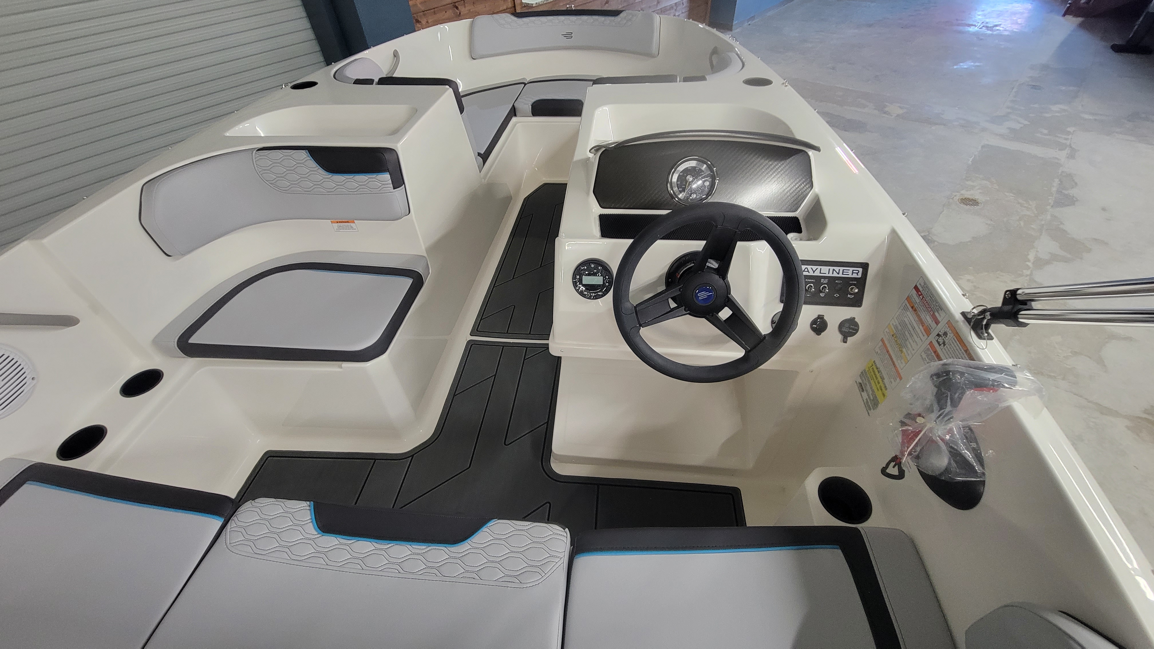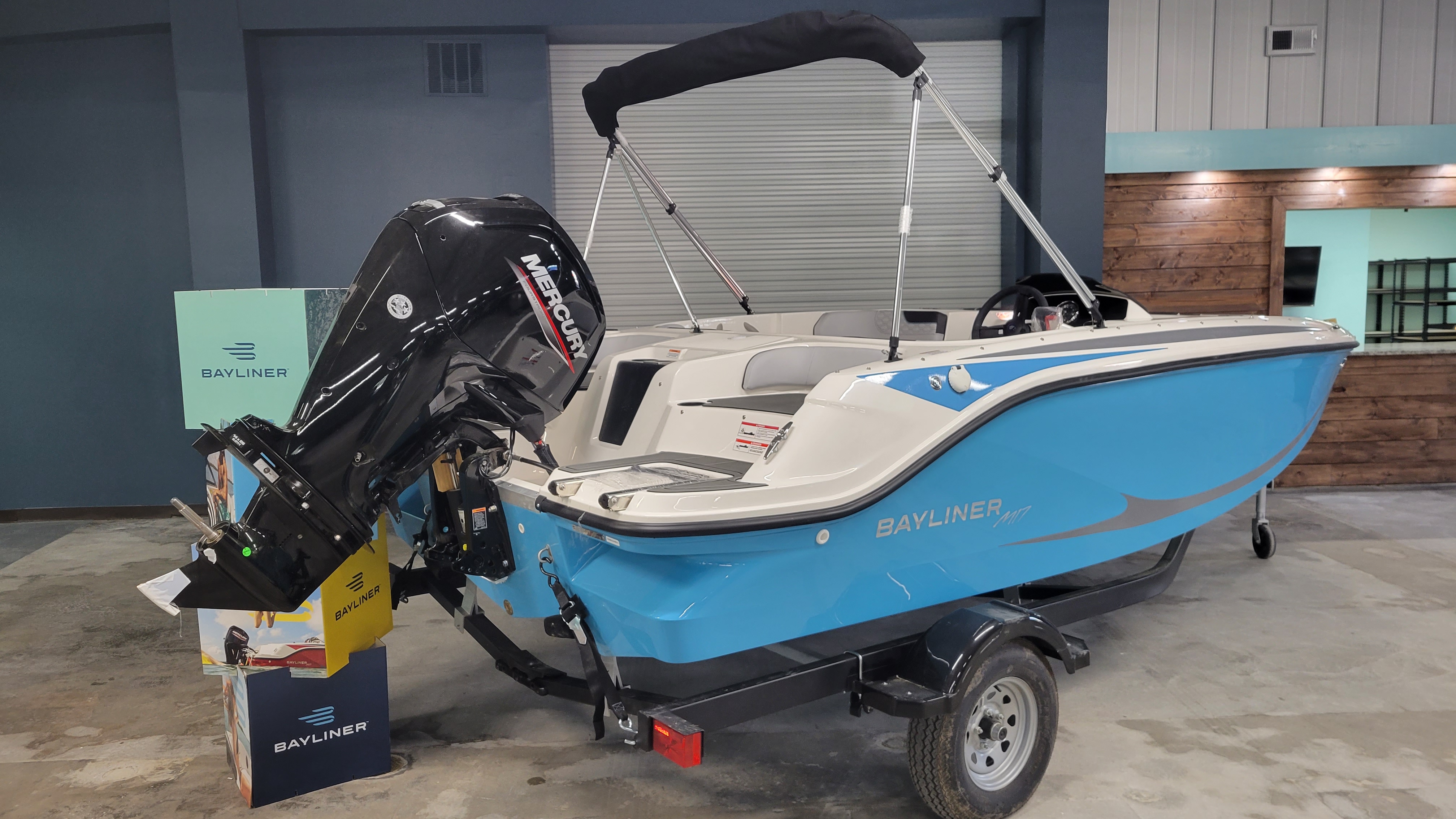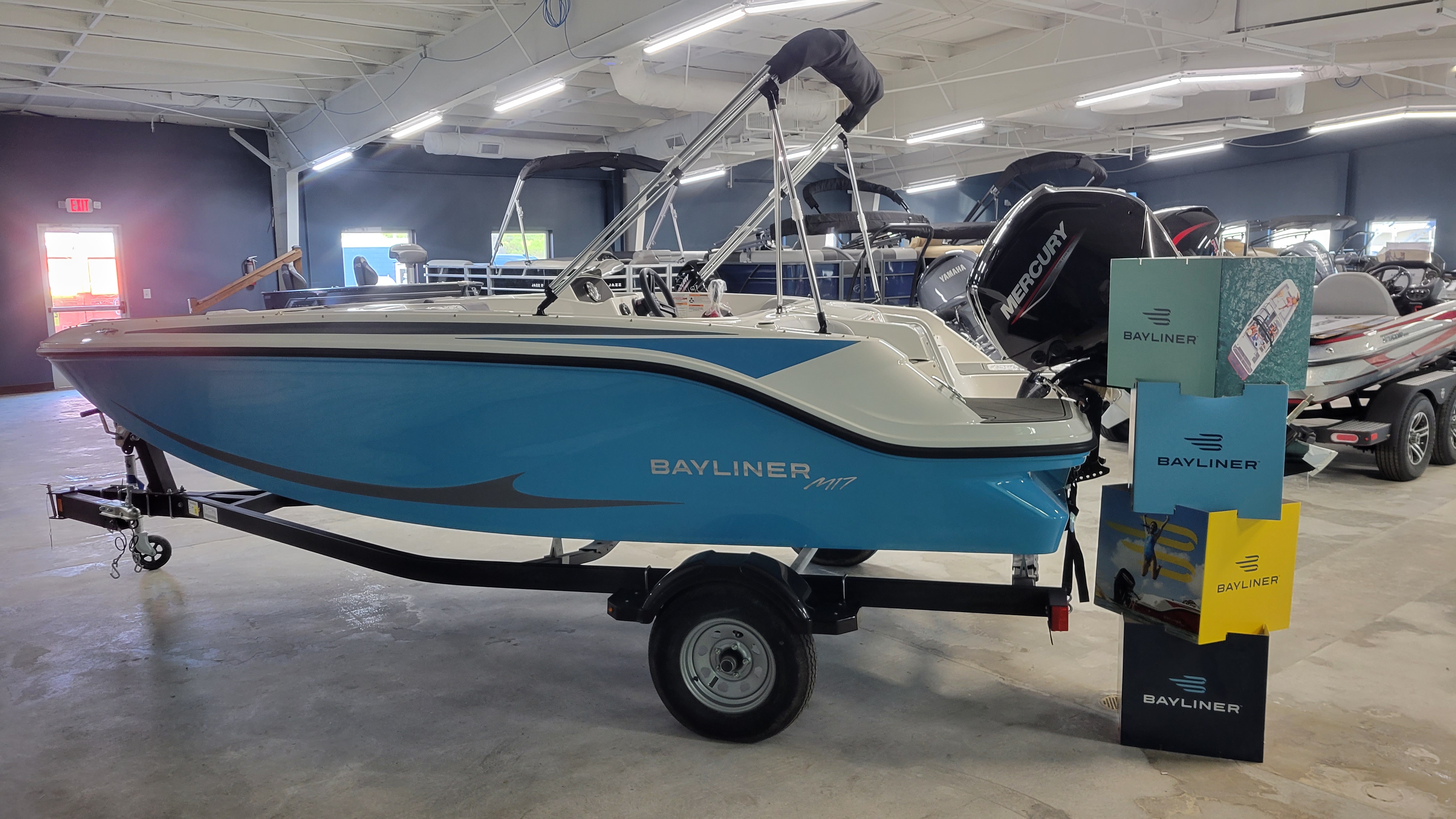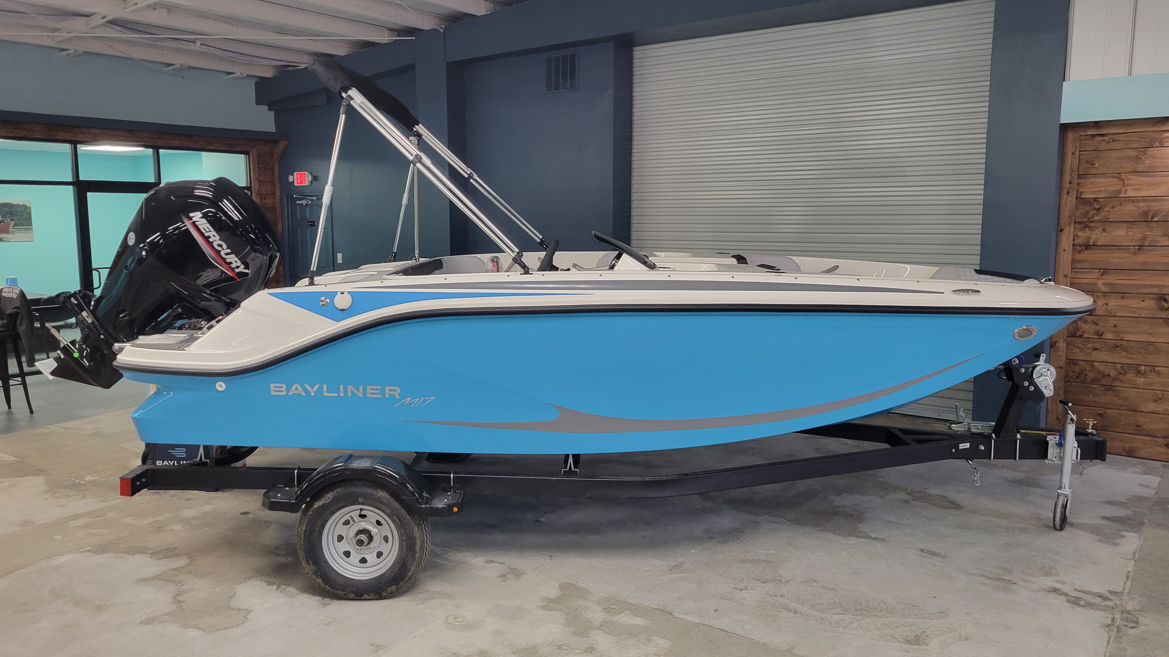 This new 2025 Bayliner M17 in stunning Impulse Blue is a nicely equipped and value priced package from Bayliner. Max power comes from a 90 HP Mercury Four Stroke outboard for reliable performance. This boat has all the standard features of the M series plus these added options: MX package, Ski Tow pylon & Cockpit flooring all sitting on a single axle bunk trailer with swing tongue. For additional questions, the latest in pricing and incentives give us a call at Eclipse Marine Seneca (864) 670-2250 or stop in and see us at 305 US Hwy 123 Seneca, SC. Engine Type: In-Line