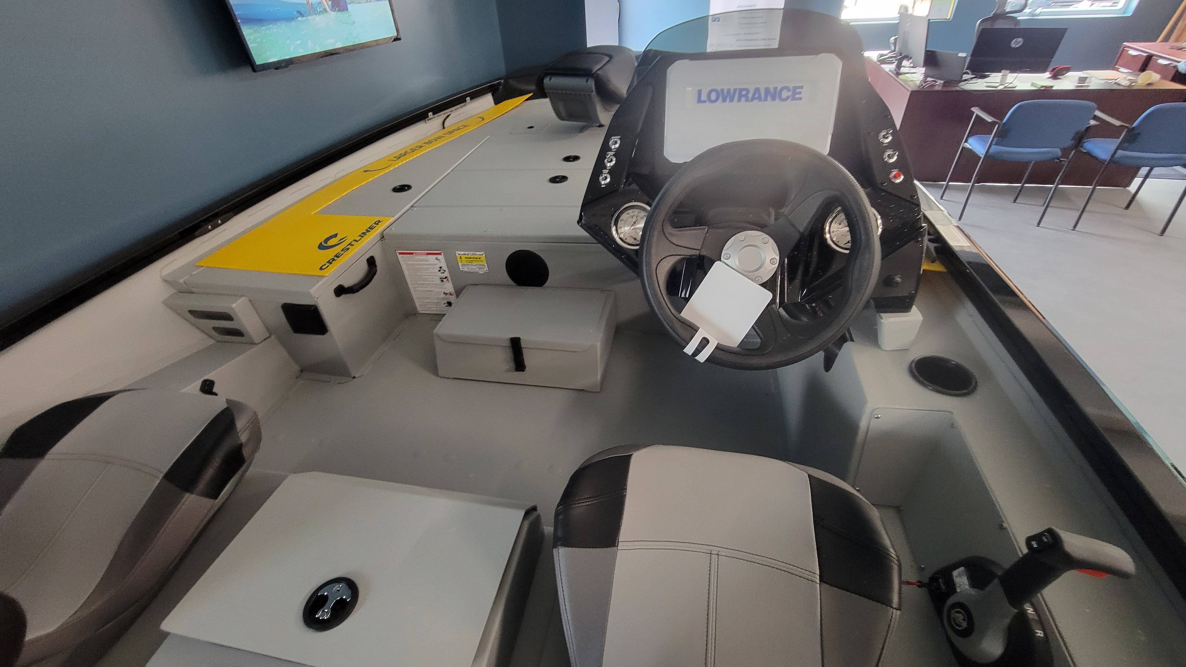 This new 2025 Crestliner XFC 179 packs a lot of features in a just under 18 foot package. Max power comes by way of a 90 HP Mercury Four Stroke outboard. This Crappie focused Crestliner fishing boat comes with all the standard features of the XFC series, plus these added options: Pro Package, Tilt steering, a Lowrance Elite FS 9" graph at the helm, 24V 6 gauge wiring prep for trolling motor & Ratcheting Custom cover all sitting on a matching single axle trailer w/ aluminum wheels, swing tongue & matching spare tire. For the latest in pricing and incentives give us a call at Eclipse Marine Seneca (864) 670-2250 or stop in and see us at 305 US Hwy 123 Seneca, SC. Engine Type: In-Line