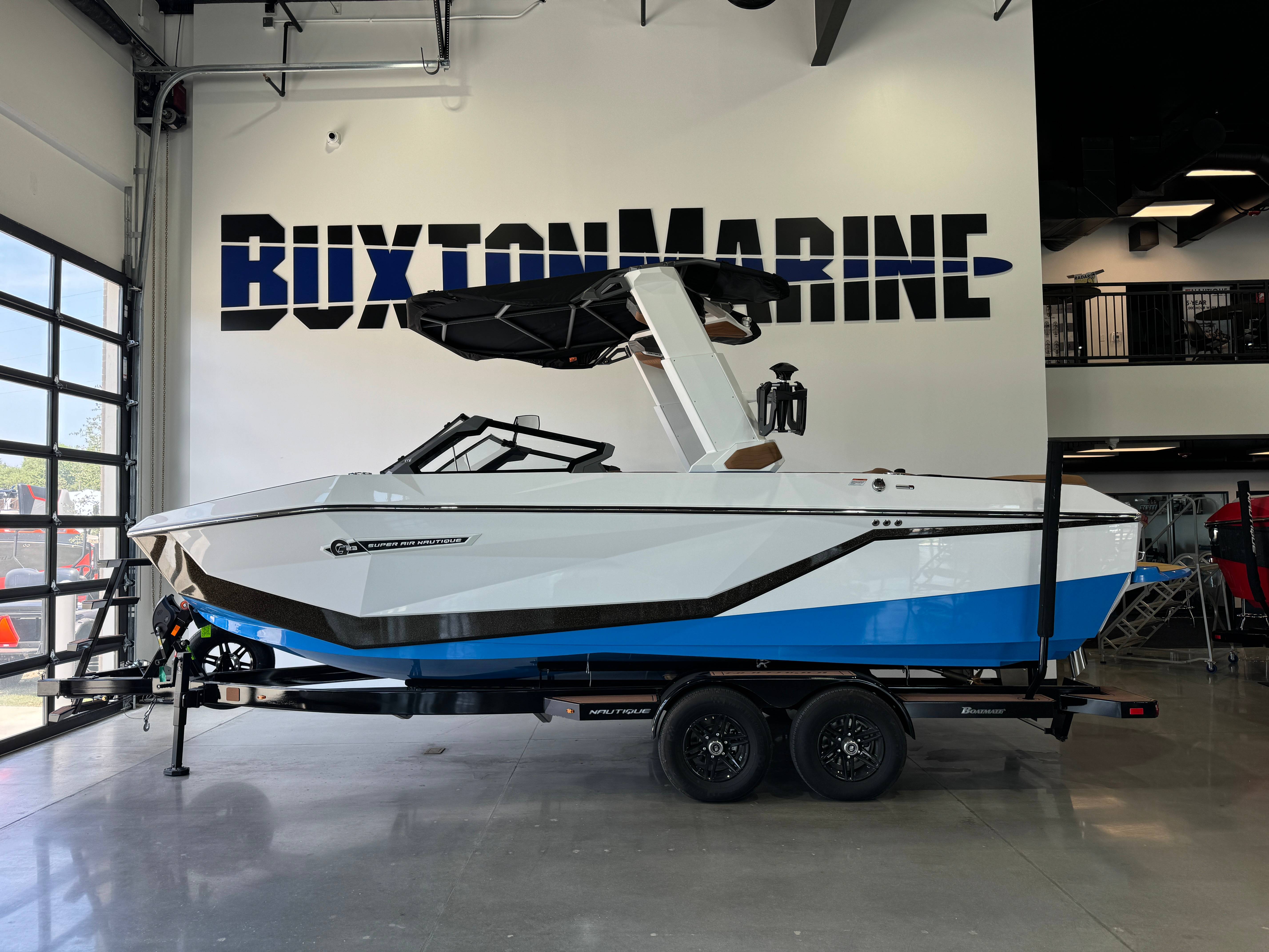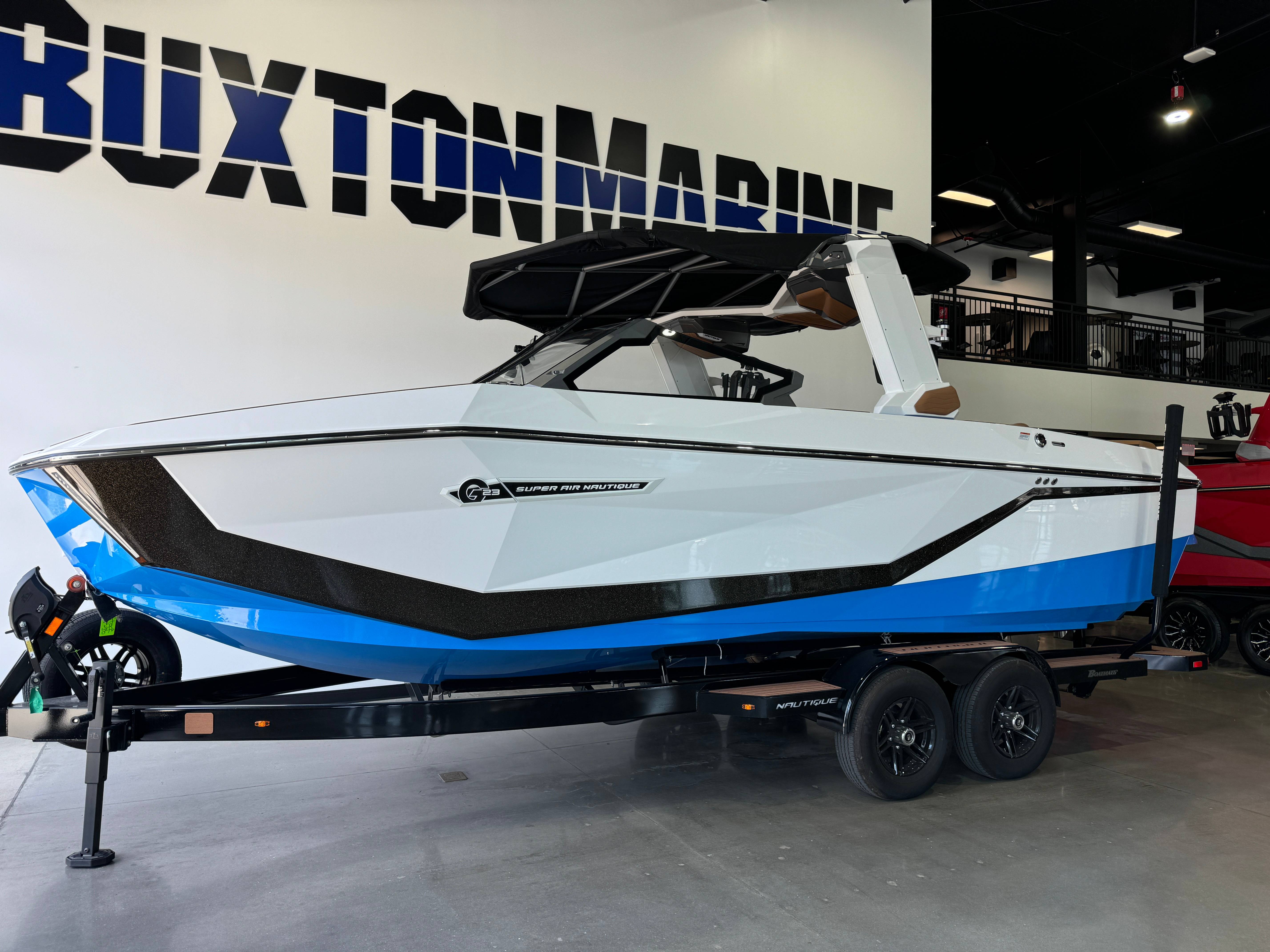 2025 Super Air Nautique G23 ZZ6 450HP - 6.2L Direct Injection Telescoping Flight Control Tower System Tower Prep Kit JL Audio M Series Studio(Pre-Wired 8 Channel Amp) Maps US-Canada Battery Maintenance System 110 (Integrated Charger-Dual Battery) Cover - Platform Cover-Telescoping Tower Towable/Mooring w/Anti-Pooling(TowerDown) Ballast - Supplemental (Additional 1,200 lbs) Ladder - Platform Access Lights - Enhanced Courtesy Lighting Package Lights - Underwater LINC Panoray - Navionics Maps Wireless Chargers - Magnetic, Pockets and Glovebox Seating - Bow Filler Cushion Stereo - JL Audio M6 Series Studio Elite (Wavefront) Stereo - Transom Mounted Remote Control 2025 Super Air Nautique G23 Standard Items listed below Nautique Configurable Running Surface with Hydro-Plate Nautique LINC PANORAY with Helm Control, Zero Off GPS Speed Control Nautique Surf System™ with WAVEPLATE & Surf Pipe Exhaust Freshwater Engine Flush System Wake Package(Integrated 2400 lbs Ballast System) Power Management Access with Dual AGM Batteries Lighting-Navigation and Docking Light Array, LED Courtesy Lights Cleats (4), Coolers 2 (Removable), Waste Receptacle Sliding Reversible Stern Seat and Flip-Up Lounge Seat (Port) Transom Seating, Premium Mirror GoPro™ Ready Rotating Tow Point MyNautique™ Connectivity Platform Centennial Package (Chromax, Steering Wheel, Glovebox, Non-Skid) Helm Command Center with Wireless Charger Stereo - JL Audio® M6 Series Elite with DSP (Stereo, 6 Speakers, 10in Subwoofer and 8 Channel Amp) if Stereo JL Audio® M6 Series Studio Elite (Wavefront) not selected Flight Control Tower (Textured Finish) with Nautique Awareness Camera if Flight Control Tower Actuated or Telescoping Tower is not selected Rotating Wakeboard/Wakesurf Racks if Nautique Strapless Board Racks is not selected